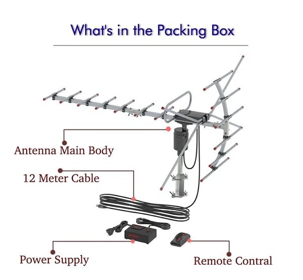 Introductions: Are you intending to find a high quality open antenna? You are in the right place. This Leadzm TA-001 360°Rotation UV 45-230MHz/470-860MHz 15-22dB Outdoorn Antenna is made of high quality plastic & aluminum material, durable and practical in daily use. With the light weight and compact design, it is easy for you to operate. And it supports 360°rotation which will provide a good signal. With low power consumption and environment friendly design, it is worth to buy it! So come and order it now! Features: 1. Made of high quality plastic & aluminum material, durable and practical in daily use 2. With the light weight and compact design, it is easy for you to operate 3. It supports 360°rotation which will provide a good signal 4. With low power consumption and environment friendly design, it is worth to buy it 5. Reception range is 110 miles Specifications: 1.Wire Length: 12m 2. Frequency: VHF:45-230MHz / UHF:470-860MHz 3. Gain: 15dBi/22dBi 4. Impedance: 75 Ω 5. Standing Wave Radio: <2.5 6. Channel: UHF21-69 for Digital Signals 7. Reception Range: 110 Miles 8. Color: Black 9. Dimensions: (28.66 x 27.75 x 18.79)" 10. Material: Plastic & Aluminum Package Includes: 1 x Antenna 1 x Wire 12m 1 x Remote Control Set 1 x Manual