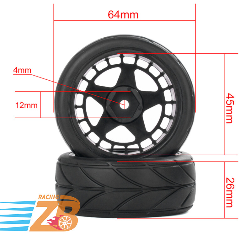 1 Set of wheels and rubber tires (4 pieces). Tyres are made of rubber, and wheel rims are made of plastic, perfect replacement for your kit Will fit on most 1:10 scale on road touring cars. High quality soft rubber tires. Wheels and tires are not glued together. Specs: Wheel Hub: Electroplated Tyre: Rubber Insertion: Foam Diameter: 64mm Width: 26mm Mount: 12mm Hex Condition: New NOTICE: The wheels and tires are not stuck together, and must be glued before use. Please check the tire size carefully before purchase, and make sure that it is shared with your model car before payment, so as not to load your model car and return it, thank you, I wish you a happy shopping!