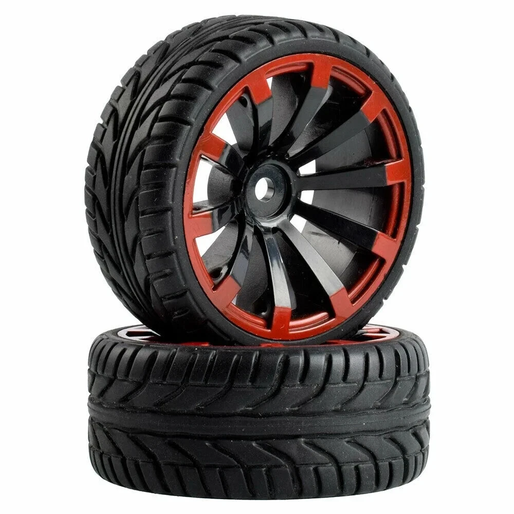 1/10 Onroad Rc Car Wheels Tires for Tamiya TT01 TT01e TT02 Kyosho Traxxas 4tec MST 100% Brand New Plastic Wheel / Rubber Tires Rubber Tires Diameter: 64mm / Width: 27mm Wheel Diameter: 52mm / Width: 26mm Wheel Hex Drive: 12mm Offset 6mm Weight: 120g/sets 4xWheel and 4xTires Complete, Insert Sponge. Note: Wheels and tires no glue and can be split This color photographs and pratical items May have little color difference! The wheels and tires are not stuck together, and must be glued before use. Please check the tire size carefully before purchase, and make sure that it is shared with your model car before payment, so as not to load your model car and return it, thank you, I wish you a happy shopping!