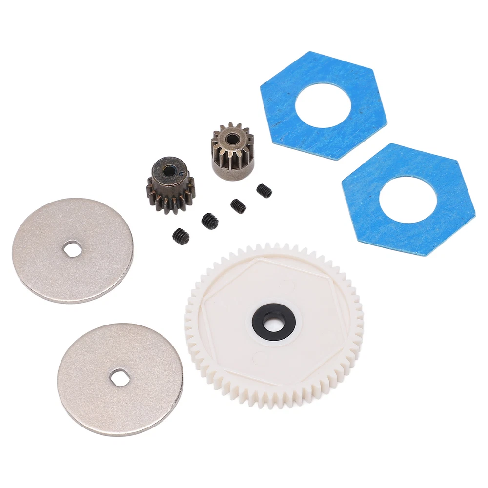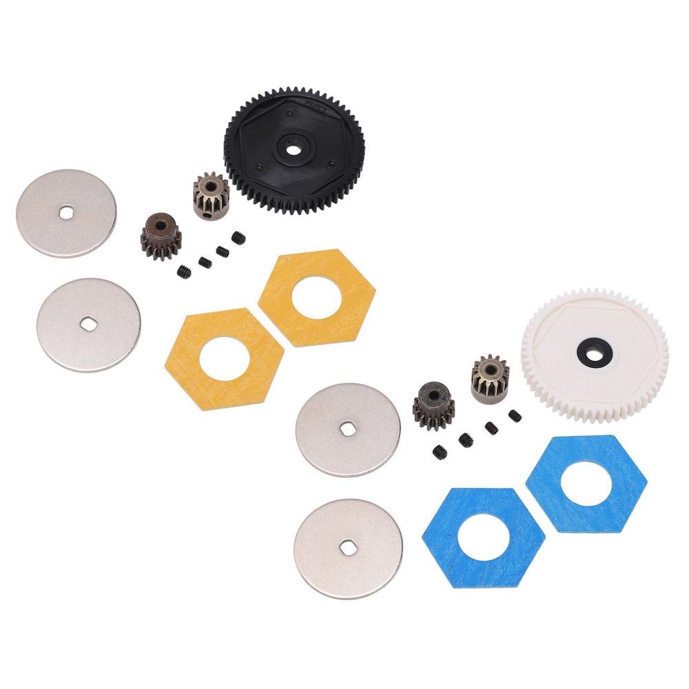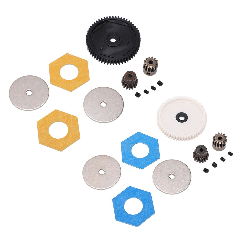 Feature: 1. Durable Material: Made of premium plastic and steel materials, it has strong wear resistance, corrosion resistance, good performance and long service life. 2. With Machine Screws: Good processing makes the gear roll smoothly, with its own fixing screw holes, easy installation, simple operation, and machine screws are provided in the package. 3. Improve Performance: Small in size and light in weight, it can give full play to the best performance, improve the power and overall performance of the remote control car, and work closely together. 4. Applicable Models: The gears set has the ability to withstand high forces, giving your RC car a good drive performance. Fit for Axial SCX10 SCX10 II 90046 1/10 retrofit. 5. 2 Pinion Gears: Provides two pinion gears with different numbers of teeth, allowing you to have more choices in the gear box ratio and making your RC car perform better. Specification: Item Type: RC Accessories Material: Plastic, steel Gross Weight: 46g / 1.6oz Gear T Number: 56T, 15T, 13T Large Gear Diameter: 47mm / 1.85in Large Gear Aperture: 5mm / 0.20in 13T Size: 12x12mm / 0.47x0.47in 15T Size: 13x12mm / 0.51x0.47in Motor Gear Aperture: 3.175mm / 0.1in Applications: For Axial SCX10 SCX10 II 90046 1/10 Retrofit Package List: 1 x Gear Box 56T Large Gear 1 x 13T Motor Gear 1 x 15T Motor Gear 2 x Spacers 2 x Accessories 4 x Machine Screw Note: 1. Due to manual measurement, 1‑3mm error is allowed, thank you! 2. Due to differences between different monitors, the picture may not reflect the actual color of the project.