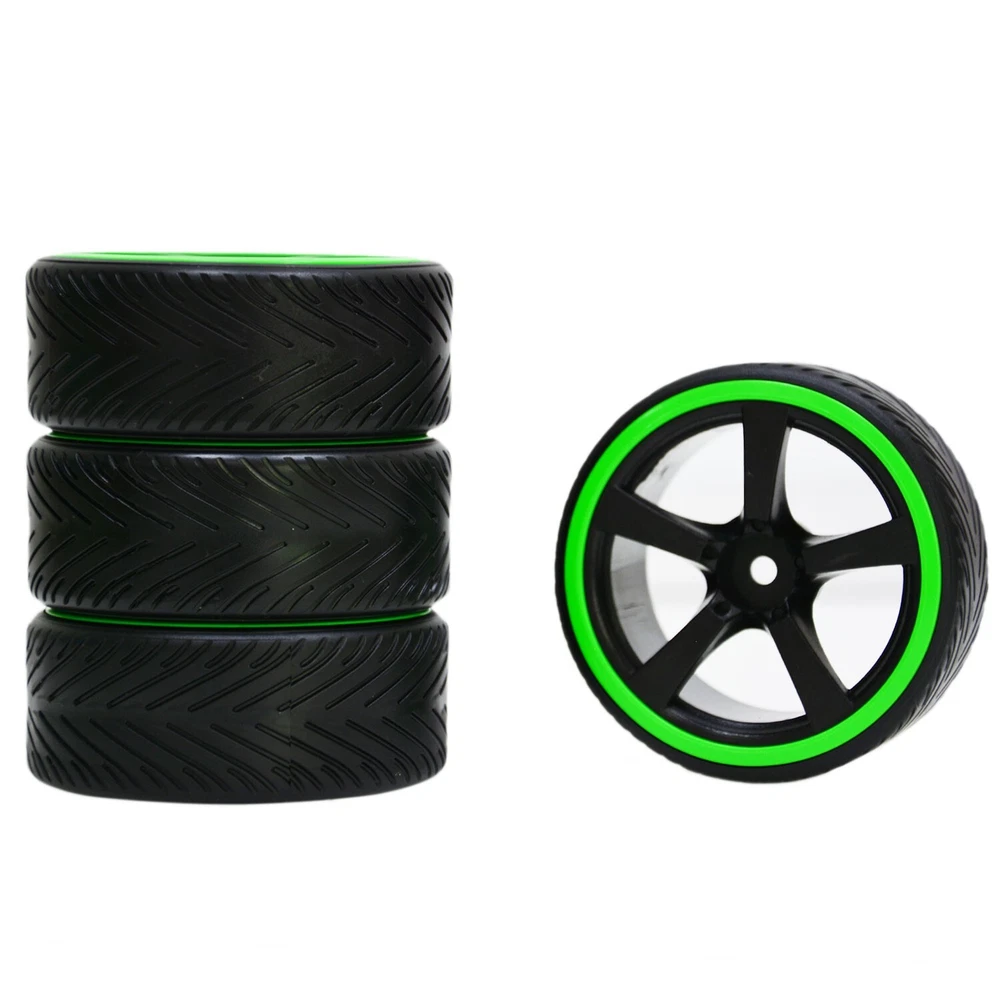 1/10 Rc Drift Car Wheels & Tires Set (4pieces) Will Fit 1/10 Drift Cars With 10 Rc Drift Car Wheels Rims Tires Kit ForTamiya On Road Racing Car Material: Plastic Tire OD: approx. 63mm Hexagon coupling: 12mm Tires wide: approx. 27mm Package included: 4 x Wheel Rims and Tires