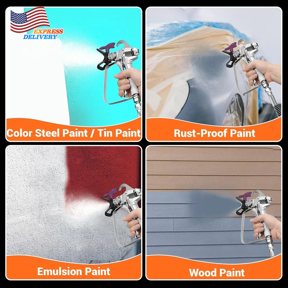 Store New Arrivals Add to Favorite View Feedback Contact 1100W Airless Paint Sprayer for House Paint 3300 Psi Low Overspray DIY Handyman Description Item model number AUS0012 Style airless paint sprayer Power Source ac Maximum Pressure 3300 Pound per Square Inch Color Airless Paint Sprayer Product Dimensions 15.35 x 15.35 x 15.35 inches Material Stainless Steel Country of Origin China Hose Length 25 Feet Tank Volume 5 Gallons Item Weight 20.8 pounds Recommended Uses For Product Painting Included Components Nozzle Adaptor, Instruction Guide, Nozzle, Strainer Paint Like a Pro - Ditch the rollers. Our 1200W airless paint sprayer delivers 5X faster coverage with ultra-fine, even coats—no bubbles, no wasted paint. With 3300 PSI power, it delivers smooth, professional finishes on walls, fences, furniture, and more. Perfect for walls, fences, or furniture, it handles oil & water-based paints straight from the can. Just point, spray, and transform any space in minutes! Power Through Any Project – Big or Small.From interior walls to outdoor decks, this 1100W beast handles it all. Tackle 10-gallon jobs effortlessly with 3300 PSI power and a 25FT hose—no ladder needed thanks to the 20"extension rod. The reversible nozzle cuts overspray by 55%. Ideal for DIYers & pros painting houses, decks, or furniture —spray up to 300 gallons/year with ease! Spray Smarter – The DIY Game-Changer.Why waste time rolling when you can spray 5X faster?? This airless Sprayer saves hours of work, and leaves a smooth, pro finish.The high-polymer seals & anti-clog nozzle ensure even, bubble-free coats every time. Plus, the included goggles & wrenches keep you safe and leak-free. Ideal for oil, latex, and stains—transform any surface in minutes! Everything You Need in One Box – Start Painting Today.Get professional-grade tools ! The kit includes a spray , extension rod, wrenches, tip cleaners, filters, safety goggles, and a manual—everything for smooth, efficient painting. Perfect for homeowners, woodworkers, and DIY enthusiasts craving studio-quality finishes. Clean Up in a Flash – No More Clogged Nozzles.Hate post-painting cleanup? Our detachable design & included cleaners make maintenance quick & hassle-free. Just rinse, wipe, and store—no stuck paint or downtime. The 7.5m high-pressure hose & spare filters mean you’re always ready for the next project! Perfect Gift for Handy Dads & DIY- Surprise him with the ultimate Father’s Day upgrade! Whether he’s refreshing the garage, deck, or furniture, this lightweight, powerful sprayer makes painting effortless and fun. Includes safety goggles, wrenches & cleaners—everything to paint safely and leak-free! 📣NOTE: PLEASE CORRECT ALL THE PISTON AND TUBE AND INSERT IT INTO THE CORRESPONDING POSITION IN DEPTH TO ENSURE THE LOCK, SO AS TO AVOID THE INFLUENCE OF THE SEAL AND THE LEAK.Please be sure to read the instruction manual carefully before using.If any issues arise, don't hesitate to reach out. We're committed to finding solutions quickly, saving you from the stress of returns or exchanges. Product Description Airless paint sprayer has a 1100W motor that delivers a flow rate of 1.2L/min.It makes painting so much faster and easier on the body compared to brushes and rollers. The Airless Paint Sprayer operates at a high pressure of 3300PSI for rapid coverage of large areas.It has a maximum flow rate of 0.24 GPM and includes a standard 515/517 nozzle. [SPRAY HOSE] 25 Foot long for easy reach across painting projects Non-kink hose Cold does not harden [TWO USE METHODS] Just press the switch, it has a direct nozzle and a 20-inch extension rod, which is convenient for you to spray at close and long distances. 1 Start Spraying 2 How to USE 3 How to PRIME 4 How to CLEAN 5 KNOW YOUR CONTROLS User-friendly Design & WIDE APPLICATION TERIOR HOUSE Professional remodeling,recommend this machine to anyone that is serious about their project but don't want to over spend on equipment that they might not use everyday Entire House This sprayer enough for DIYers looking to take their painting skills to the next level. Garage You'll be able to complete more painting projects around your home with this great paint sprayer! Cedar Fence There is little need for any touch-ups with a brush after the main spraying is complete. Deck Refinish old furniture. Wall spraying Even though you not a professional painter, you also able to achieve a smooth, consistent finish on the walls. It caters to home renovators, woodworking enthusiasts, construction contractors, and DIY enthusiasts. What necessary steps should I do before using it? 1.Wear the protective equipment, 2.Read the instructions carefully, and install the machine correctly. 3.Be sure to do purging and priming the Sprayer before use, and perform air and lubricating oil. How to ensure uniform spraying? Keep the spray perpendicular to the surface and about 10 to 12 inches away. Otherwise one end of the pattern will be thicker than the other. How often should I clean my airless sprayer? We suggest that you better clean the machine after every use, including the filters, housing, and tip. What should I do if there is no paint suction happening when the machine is running? During initial use, the inlet steel ball may get stuck. Please according to the instructions to push the inlet steel ball. Secondly, if the clamp of the suction hose is loose, please tighten it and ensure that all connections are properly tightened. ABOUT US We offer the best prices around on high quality products. Our E-store includes media such as books, movies, music and games while offering electronics, toys, sporting apparel, clothing, tools, general home, garden items and more. SHIPPING We are always working hard to ensure your package arrives as soon as possible. Please understand that some factors like weather, high postal traffic, and the performance of shipping companies are outside of our control. We offer free shipping to the lower 48 states and 