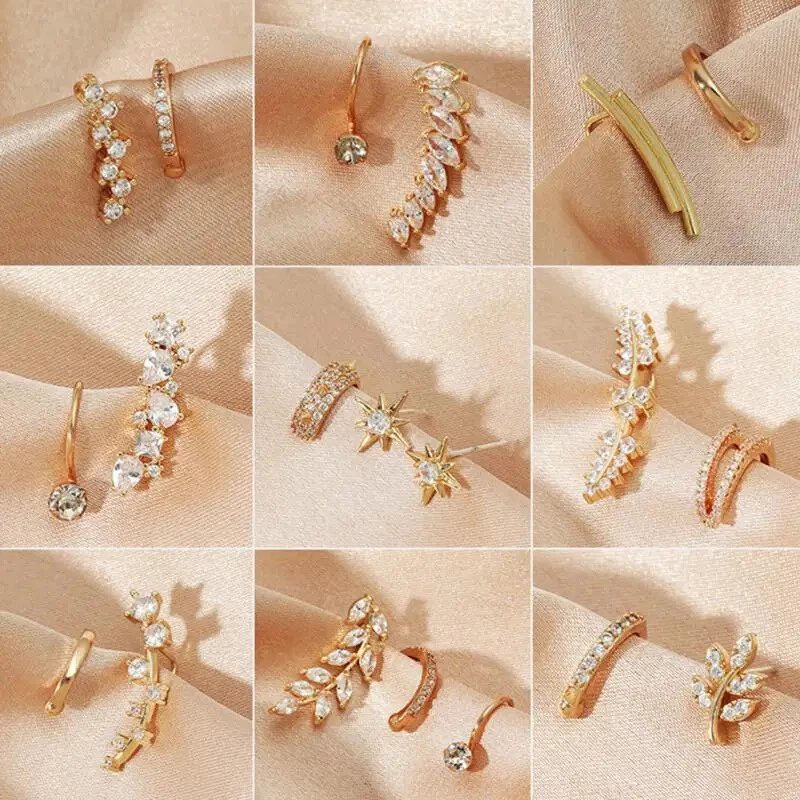 1~10PCS Bohemian NO Piercing Crystal Rhinestone Ear Cuff Wrap Stud Clip Earrings For Women Girl Trendy Earrings Jewelry Bijoux Description: Product: earring set Material: alloy, rhinestone, imitation pearl Treatment process: electroplating Color: Gold Size/Weight: As shown Style: temperament, simplicity, fashion Specifications: 1. Using high-quality metal material, fine electroplating process, smooth feel, bright luster, durable and not easy to fade; 2. Simple and fashionable appearance design, trendy Japanese and Korean style, easy to create a unique temperament, pearl, -encrusted design, high-quality texture, meticulous workmanship, and more fashionable when worn; 3. Various styles, the perfect combination of ear studs and ear clips, to meet the needs of different people, simple and advanced styles, can be matched with different advanced temperament at will. Package Included: earring set*1 Notes: Tips: 1. As different computers display different colors, the actual color may be slightly different from the picture. Thank you for your understanding. 2. The above dimensions are manually measured. There will be an error of 0-1 cm due to different measurement methods. The relevant data is for reference only, and the actual product shall prevail. If you have any questions, please feel free to contact us, we will try our best to solve your problem as soon as possible.