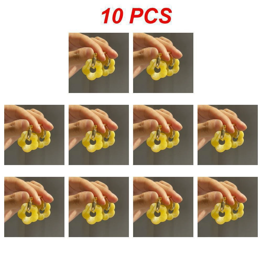 1~10PCS Multicolor Transparent Acrylic Resin Marbling Flower Drop Earrings for Women Gold Color Metal Round Hoop Earings Fashion Description: Product Name: Cute Flower Earrings Material: Copper Color: Various Colors Shape: Floral Specifications: 1. High-quality Material: Selected High-quality Copper Material, Comfortable To Hold, Light And Burden-free To Wear 2. Quality Details: Using Fine Production Technology, Color Is Bright And Durable. 3. Stylish Appearance: Simple And Fashionable Appearance Design, Unique And Beautiful 4. Options: Rich Styles And Colors, A Variety Of Popular Styles Can Be Chosen At Will 5. Versatile Accessories: It Can Be Worn Daily Or Paired With Dresses, Suits, Skirts, Etc. It Is Fashionable And Trendy. Package Included: 1 Pair* Earrings