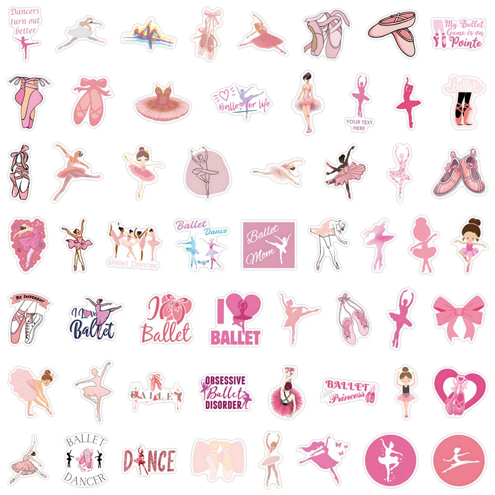 110Pcs Pink Ballet Stickers for Phone Case water bottles laptop Waterproof