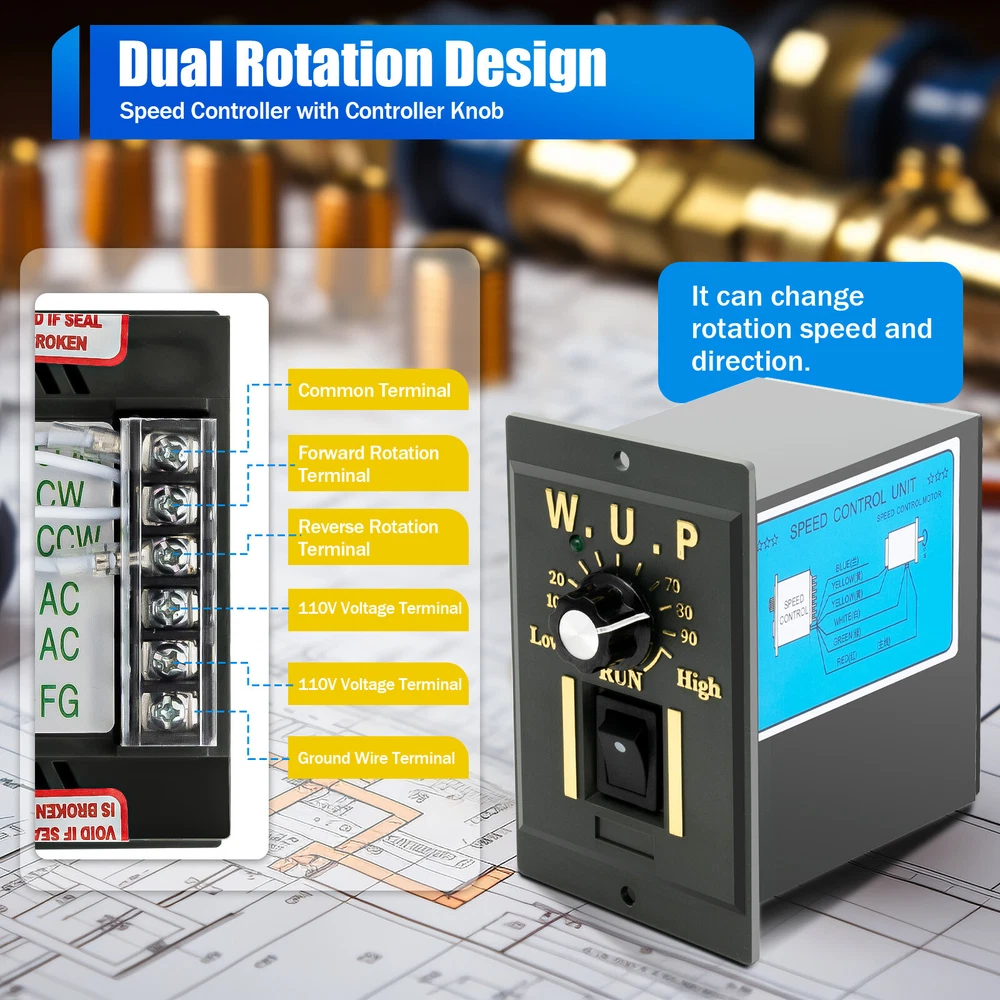 110V 250W AC Gear Reduction Motor Electric + Variable Speed Control Reversible Description Our variable-speed gear motor adopts a single-phase motor. It has a built-in precision gear and pure copper coil, which make it more stable and reliable. Meanwhile, the power of 250W and the speed of 135RPM can provide strong power to save a lot of energy when using it. It is suitable for conveyor belt, mixer, rotary table, and other equipment. Key Features High Efficiency: The variable-speed gear motor boasts a robust power of 250W, a reduction ratio of 10K, and a rotating speed of 135RPM, which provide you with strong power and meet your different requirements. Durable and Sturdy: It adopts pure copper coils and an alloy shell, with excellent heat resistance and heat dissipation, allowing you to use it for a long time. The die-casting process and the heat treatment process can ensure quality and provide a longer service life. Efficient Cooling System: The cooling holes on the bottom of the motor and the ventilated fan heat sink are designed to keep it cool and provide high reliability and durability. Dual Rotation Design: It supports forward and reverse rotation that can be achieved by changing the position of the speed controller wiring, so you can adjust the rotational direction according to the specific situation to meet your various needs. Stable Operation: All alloy gears with hob-shaving process, ball bearings, and pure copper coils can reduce friction and temperature during use, ensuring stable operation, increasing speed, and reducing overheating and load resistance . Closed Design: The closed design effectively prevents dust, water, oil, etc. from entering the machine, while minimizing the need for daily maintenance as much as possible. Low Noise: The noise emitted by the pure copper motor during operation is only about 50 decibels, which does not easy to affect you or others. Protective Packaging: This product comes in a custom sponge that resists common compression and falls to prevent product damage in transit. Details Clear Wires: For different wires, they have different colors, thus easily distinguishing and connecting them without confusion. Speed Controller: By rotating the controller knob you can change the motor rotation speed to suit different usage scenarios. Screw Holes: The gearbox is provided with screw holes for fixing it to the motor for stable operation . Application This product is widely utilized in various industries such as packaging, printing, textile, dyeing, chemical, food, medical, pharmaceutical, and construction machinery. It is also suitable for instrumentation, transmission, automatic warehouse, parking access control systems, and other equipment. Specifications Color: Grey Material: Copper, Alloy Surface Treatment: Die-casting Process, Heat Treatment Process, Hob-shaving Process, Spray Paint Voltage: 110V, 60Hz Horsepower: 250W Type of Motor: Single-phase Special Features: Forward and Reverse Rotation Reduction Ratio: 10K Rotational Speed: 135RPM Rated Torque: 16N-m Operating Noise: About 50dB Screws Hole Distance: 9cm/3.54inch Screw Hole Diameter: 9mm/0.35inch Crankshaft Diameter: 1.5cm/0.59inch Crankshaft Length: 3.5cm/1.37inch Gross Weight: 8.15kg/17.96lbs Net Weight: 7.05kg/15.54lbs Gear Motor Size: 10*10*29cm/3.9*3.9*11.4inch Speed Controller Size: 6*10*10cm/2.3*3.9*3.9inch Package Size: 32.5*29*20cm/12.7*11.4*7.8inch Package Included 1* Gear Motor 1*Speed Controller 1*English Manual Notes Please check motor size, and specs before purchasing. Please note it is normal for the electric machine to heat up slightly during operation. Please connect each wire correctly to ensure that the machine can operate normally. Please allow the slight color difference caused by the shooting light and 1-3cm error due to manual measurement, and make sure you do not mind before you order. Payment Delivery details Terms of sales About us Contact us Payment We accept ebay payment 。 Fees such as import duties, taxes are not included in the item price or shipping costs. These charges are the buyer's responsibility. Delivery details Shipping: 2-9 working days to: USA Terms of sales We maintain high standards of excellence and strive for hundred percent customer satisfaction. Feedback is very important to us. We hope that you contact us immediately before you give neutral or negative feedback, so that we can address your concerns. It is impossible to address issues if we do not know about them! About us Your satis faction is our ultimate goal. We work hard to earn your trust and future business. Our certified technicians have tested each item before shipping. The unit comes with 1 year limited warranty on all manufacturing defects. a) If you receive a defective item, you may return it or ask for a discount. Please contact us within 14 days after you receive the package. b) What you returned must be intact and in its original packaging as re? u. Customer is responsible for shipping costs of the returned item. c) We will cover the cost of shipping back t with the shipping rate indicated in the registration page. We will send you a new unit or refund the full payment you paid. Thank you. Contact us Business Hour Business Hour: Monday To Friday: 8:30 AM to 5:00 PM (Beijing China time) Due to time zones, our reply to your questions may not be immediately. But within above working time, we will reply your email within 24 hours. If it's non-workdays, please kindly be patient and wait till Monday. Please contact us with ebay message. Please feel free to contact us if you have any questions. Monday To Friday: 8:30 AM to 5:00 PM (Beijing China time) Due to time zones, our reply to your questions may not be immediately. But within above working time, we will reply your email within 24 hours. If it's non-workdays, please kindly be patient and wait till Monday. Please contact us with ebay message. Please feel free to contact us if you have any questions.