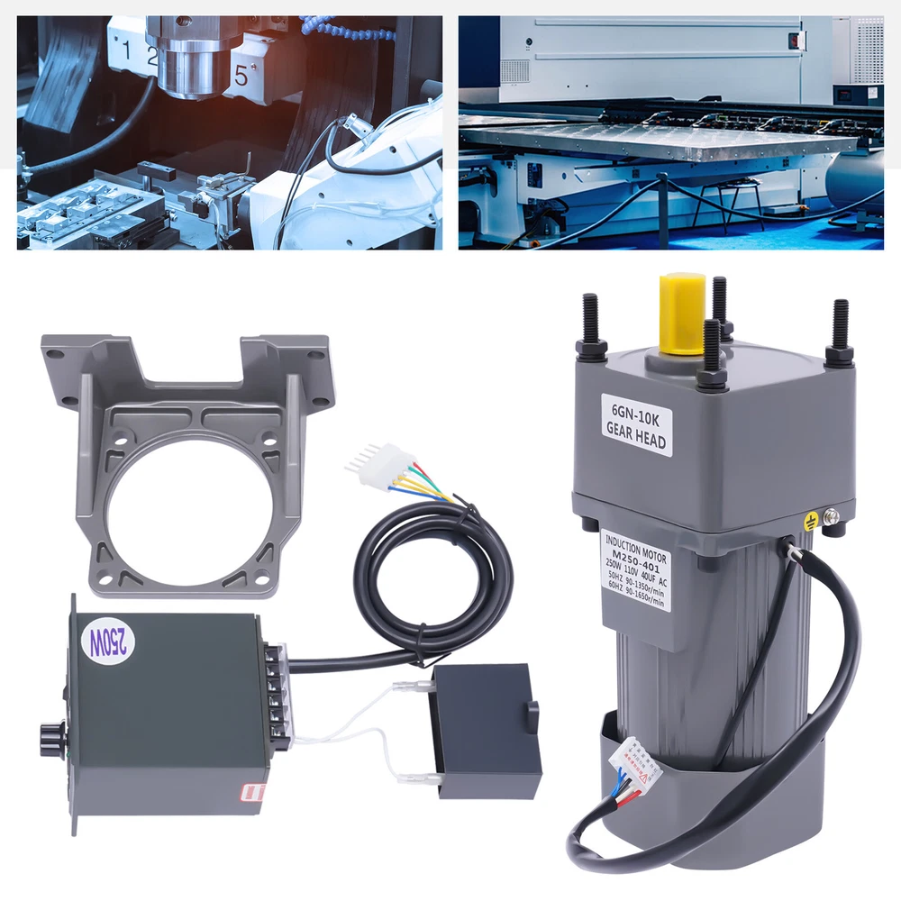 Specifications Material: Aluminum Alloy Gear Material: Steel Type: Single-Phase Coil Material: Copper Color: Grey Power: 250W Voltage: 110V 60Hz Engine Speed Ratio: 10K Torque: 8 N.m Output Speed Range: 0-135rpm (Infinitely Adjustable Speed 0%-100%) Upper Side Length of Bracket: 10.4cm/4.1inch Lower Side Length of Bracket: 16cm/6.3inch Bracket Width: 7.5cm/3inch Bracket Height: 12.5cm/4.9inch Governor Size: 9 * 6 * 10cm/3.5 * 2.4 * 3.9inch Motor Size: 19 * 10.4 * 8.4cm/7.5 * 4.1 * 3.3inch Dimension of Reduction Gearbox: 6.6 * 10.4 * 8.4cm/2.6 * 4.1 * 3.3inch Packing Size: 33*26*13cm/12.99*10.23*5.11in Gross Weight: 7.9kg/17.41lbs Net Weight: 7.3kg/16.09lbs Package Included 1 x Motor 1 x Reduction Gearbox 1 x Governor 1 x Bracket 110V 250W AC Gear Reduction Motor Electric+Variable Speed Control Reversible New Specifications Material: Aluminum Alloy Gear Material: Steel Type: Single-Phase Coil Material: Copper Color: Grey Power: 250W Voltage: 110V 60Hz Engine Speed Ratio: 10K Torque: 8 N.m Output Speed Range: 0-135rpm (Infinitely Adjustable Speed 0%-100%) Upper Side Length of Bracket: 10.4cm/4.1inch Lower Side Length of Bracket: 16cm/6.3inch Bracket Width: 7.5cm/3inch Bracket Height: 12.5cm/4.9inch Governor Size: 9 * 6 * 10cm/3.5 * 2.4 * 3.9inch Motor Size: 19 * 10.4 * 8.4cm/7.5 * 4.1 * 3.3inch Dimension of Reduction Gearbox: 6.6 * 10.4 * 8.4cm/2.6 * 4.1 * 3.3inch Packing Size: 33*26*13cm/12.99*10.23*5.11in Gross Weight: 7.9kg/17.41lbs Net Weight: 7.3kg/16.09lbs Description The product includes a complete set of accessories. In addition to the motor, it is also equipped with a bracket, a reducer, and a speed regulator for your convenience. This gear adjustable motor is primarily used to reduce the speed of a series of gears, thereby producing more power torque to improve working efficiency. This high-quality motor with excellent performance is suitable for various industries. Key Features Strong and Durable : The housing of this product is made of high-quality aluminum alloy, which is strong, durable, wear-resistant, anti-shock , high-temperature resistant, and can protect the internal parts well. Stable Operation : Both ends of the speed control motor rotor are fitted with ball bearings, which allow it to operate with low friction, reduce energy consumption and generate lower temperatures to ensure stable operation. High Efficiency : The stator and rotor are made of pure copper coils with good electrical conductivity, allowing for a constant high and stable power output. Adopting high-precision steel gears effectively increases the torque of the motor, which greatly enhances its working efficiency. Adjustable Speed: You can adjust the speed from 0% to 100% (0-135rpm)through the stepless speed knob on the governor according to the different situations to achieve the desired effect. Easy to Install: Since the motor and gearbox are already installed, you only need to plug the governor cable into the jack of the motor cable to quickly connect the motor and governor, which saves both time and labor. Forward and Reverse Rotatable: The governor is initially specified for forward rotation, but you can connect the wires on the CCW to the CW and then it can be converted to reverse rotation to suit your different needs. Good Heat Dissipation Performance: The motor has a built-in fan heatsink and cooling holes at the rear of the motor, providing good ventilation and heat dissipation to ensure stable performance and long service life. Low Noise: The speed control motor adopts high precision and high-speed bearings inside to bring you lower noise and create a quieter environment for you. Customer Service: We aim to provide quality products and services. If you have any problems, please feel free to contact us. We will reply and solve the problem for you as soon as possible. Details Indicator Light: The indicator light on the governor will be on when the power is on so that you can better understand the use status of the product. Motor Bracket: The bracket comes with triangular reinforced side plates for a stable structure, making the motor more firmly fixed without tilting or collapsing. Practical Governor: The governor is equipped with a threaded speed regulating knob, a speed scale panel, and a connector wiring description on the side, which is simple and easy to operate. It is also equipped with a one-button power switch, making it safer to use. Application This product is widely used in industrial assembly lines, intelligent equipment, animal husbandry machinery, printing machinery, textile machinery, instrumentation, food machinery, power transmission and transformation equipment, road gate machines, medical equipment, logistics equipment, security check facilities, financial equipment, new energy, industrial robots, and other industries. Package Included 1 x Motor 1 x Reduction Gearbox 1 x Governor 1 x Bracket Notes When the motor is working, it is normal for the temperature to rise to about 65℃/149℉. Please rest assured that it will not affect your use. Please do not knock the motor and the body of the governor. Please disconnect the power supply before changing the wire. Please allow the slight color difference caused by the shooting light and 1-3cm error due to manual measurement, and make sure you do not mind before you order. Payment Delivery details Terms of sales About us Contact us Payment We accept ebay payment 。 Fees such as import duties, taxes are not included in the item price or shipping costs. These charges are the buyer's responsibility. Delivery details Shipping: 2-9 working days to: USA Terms of sales We maintain high standards of excellence and strive for hundred percent customer satisfaction. Feedback is very important to us. We hope that you contact us immediately before you give neutral or negative feedback, so that we can address your concerns. It is impossible to address issues if we do not know about them! About us Your satis faction is our ultimate goal. We work ha