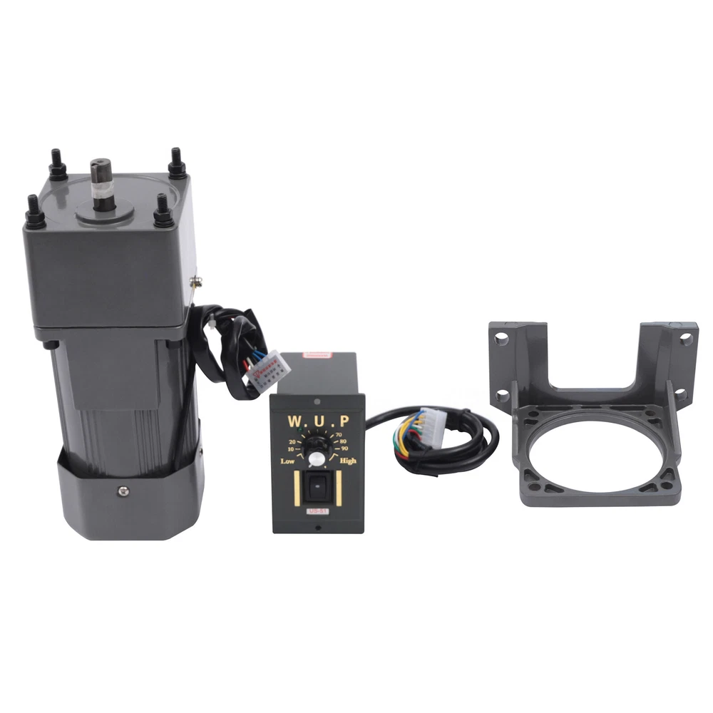 90W Motor Adjustable Speed Frequency Inverter Motor with Gear Controller and Bracket (20 K) Description This gear adjustable motor is primarily used to reduce the speed of a series of gears, thereby producing more power torque. This motor has high power, and high torque, and can also be switched for speed regulation. This high-quality motor with excellent performance is suitable for various industries. Details Copper Coil: The copper coil has better heat dissipation, good conductivity, and longer service life. Thickened Metal Gear: The gear mechanism is precise, the thickness is thicker, the wear resistance is good, the service life is prolonged, and the motor torque is increased. Application It is widely used in food packaging, food mixing, office equipment, medical equipment. 110V 90W Adjustable Speed Rectangular Small Gear Motor +Gear Controller&Bracket 90W Motor Adjustable Speed Frequency Inverter Motor with Gear Controller and Bracket (20 K) Description This gear adjustable motor is primarily used to reduce the speed of a series of gears, thereby producing more power torque. This motor has high power, and high torque, and can also be switched for speed regulation. This high-quality motor with excellent performance is suitable for various industries. Key Features Increasing Power : This motor achieves the purpose of reducing speed through the arrangement of gears, thereby generating more power and making your machine run faster. Stable Performance: The motor adopts copper coils with better heat dissipation, and the torque is large, which can keep the overall performance of the motor stable. Low Noise: This motor adopts an aluminum alloy casing, which has low vibration and low noise during operation. Small Size: This motor is compact in structure and small in size, and will not take up too much space. Adjustable Speed : The motor is equipped with a speed regulator, you can adjust the speed according to your various needs to achieve better power matching and achieve high efficiency of a machine. Complete Accessories: The product includes a complete set of accessories. In addition to the motor, it is also equipped with a bracket, a reducer, and a speed regulator. You do not need to configure other accessories separately, which is very convenient and simple. Long Service Life: The product is made of high-quality and high-strength metal, and the metal surface is painted, so it is anti-rust and anti-corrosion, and durable. High Torque: The motor has large torque, strong speed-up capability, and a stronger overload capacity, and can reach the power required by the machine faster. Trustworthy: The manufacturer has been committed to the production of motors and gear motors for a long time, and the mechanical equipment is excellent. This motor has passed the 3C certification, and its quality and professionalism are quite trustworthy. Easy to Use: The overall motor is complete, and the governor is also equipped with corresponding numbers and presentations. You only need to adjust to the required speed, and the operation is very simple. Details Copper Coil: The copper coil has better heat dissipation, good conductivity, and longer service life. Thickened Metal Gear: The gear mechanism is precise, the thickness is thicker, the wear resistance is good, the service life is prolonged, and the motor torque is increased. Application It is widely used in food packaging, food mixing, office equipment, medical equipment, packaging machinery, printing machinery, leather shoe polishing machinery, metal cutting machine tools, etc. It is suitable for the packaging industry, machinery and machinery industry, transportation equipment, textile machinery, electric welding machine, automobile industry, etc. Specification Material: Iron, Aluminum Alloy, Copper Color: Black Shape: Rectangular Gross Weight: 5.13kg/11.3lbs Product Weight: 4.50kg/9.9lbs Package Size: 28.5*24.1*12.5cm/11.2*9.5*4.9inch Reducer Size: 6.2*9*9cm/2.4*3.5*3.5inch Motor Size: 16.5*9*9cm/6.5*3.5*3.5inch Shaft Size: 1.2*2.8cm/0.5*1.1inch Key Depth: 2.5cm/1.0inch Keyway Size: 0.4cm/0.2inch Distance Between Diagonal Mounting Holes: 10.4cm/4.1inch Distance Between Mounting Holes on the Same Side: 7.35cm/2.9inch Diameter of Disc Stop: 3.4cm/1.3inch Speed Regulator Size: 6*9*10cm/2.4*3.5*3.9inch Voltage: 110V Rated Power: 90W Engine Speed Ratio: 20K Package Included 1 x Motor 1 x Reducer 1 x Speed Regulator 1 x Bracket Notes Do not plug or unplug the lead wire when the power is on. The product does not include a power cord, which needs to be purchased separately. Please allow the slight color difference caused by the shooting light and 1-3 cm error due to manual measurement, and make sure you do not mind before ordering. Payment Delivery details Terms of sales About us Contact us Payment We accept ebay payment 。 Fees such as import duties, taxes are not included in the item price or shipping costs. These charges are the buyer's responsibility. Delivery details Shipping: 2-9 working days to: USA Terms of sales We maintain high standards of excellence and strive for hundred percent customer satisfaction. Feedback is very important to us. We hope that you contact us immediately before you give neutral or negative feedback, so that we can address your concerns. It is impossible to address issues if we do not know about them! About us Your satis faction is our ultimate goal. We work hard to earn your trust and future business. Our certified technicians have tested each item before shipping. The unit comes with 1 year limited warranty on all manufacturing defects. a) If you receive a defective item, you may return it or ask for a discount. Please contact us within 14 days after you receive the package. b) What you returned must be intact and in its original packaging as re? u. Customer is responsible for shipping costs of the returned item. c) We will cover the cost of shipping back t with the shipping rate indicated in the registration page. We will se