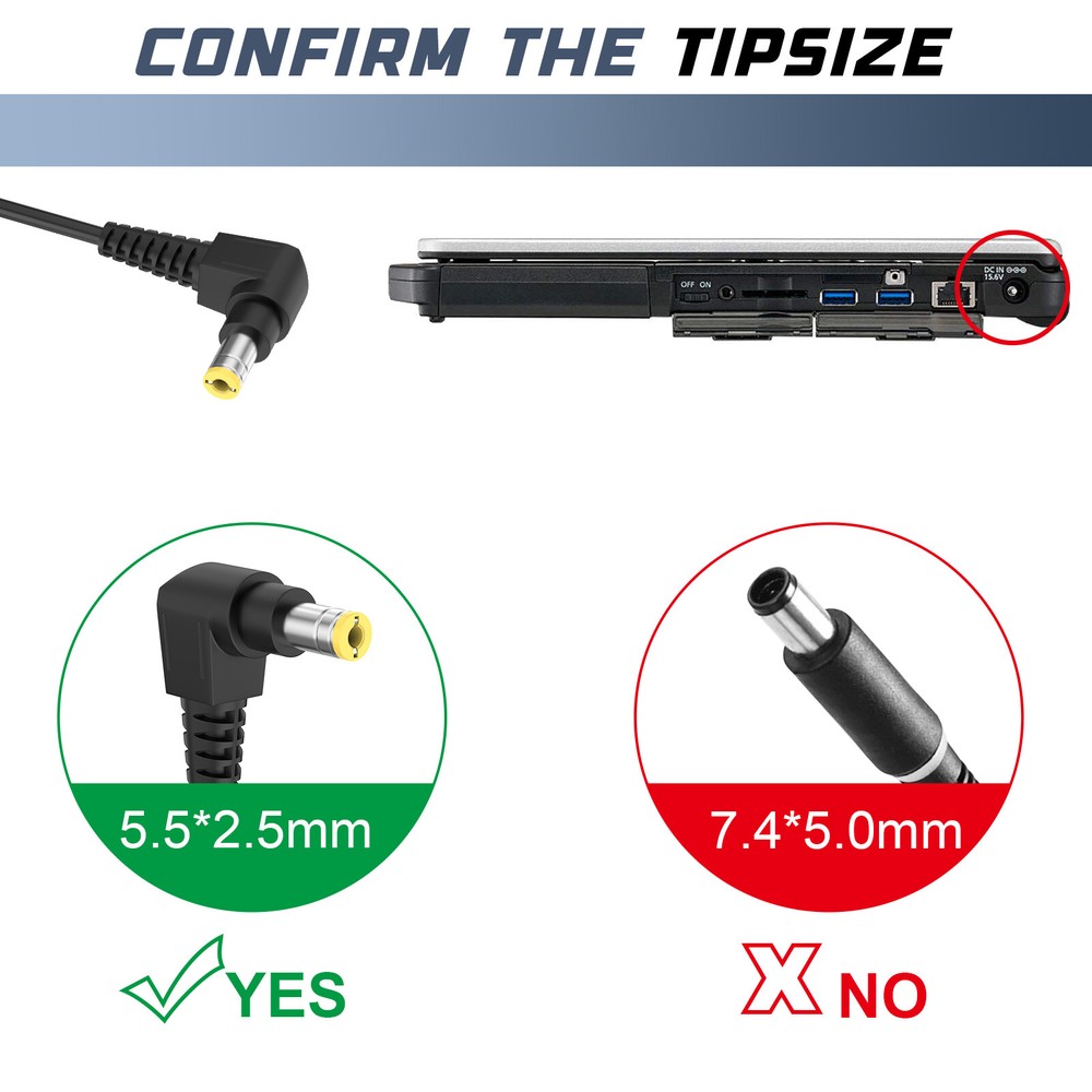 I tem Specification: Input voltage:100-240V,50-60Hz Output voltage: 15.6V / 7.05A 110W Connecter size: 5.5*2.5mm Colour: Black Manufacturer Warranty:1 Year Condition: 100% New Fast ship with a tracking NO from NY US Compatible Part Numbers: CF-AA5713AE CF-53AACZYDE CF-AA5713A CF-AA5713A M1 CF-AA5713A-J1 CF-AA5713A2E CF191HAAXF2 CF19ADNAXDY Compatible Models: Panasonic CF-52MK3 TOUGHBOOK CF-52 TOUGHBOOK CF-52P TOUGHBOOK CF-52T TOUGHBOOK CF-53 TOUGHBOOK CF-53A TOUGHBOOK CF-53E TOUGHBOOK CF52PFNBEPM TOUGHBOOK CF-31WEUAXM4 TOUGHBOOK CF-53 MK2 CF-53JSWCUDA TOUGHBOOK CF-53 MK3 TOUGHBOOK CF-52 MK5 TOUGHBOOK CF-D1 CF-53SAWZYBE CF-LND1224A FZ-Y1 CF-53JJCZY1M CF-31 CF-52 CF-53 CF-31MK1 For Panasonic TOUGHPAD Series Laptop TOUGHPAD FZ-G1 UT-MB5025SBJ UT-MB5.