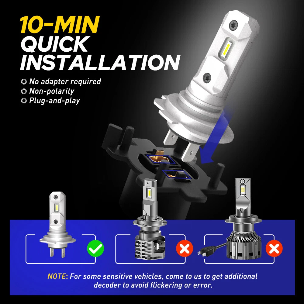this item is pair of 55W extremely bright high power 6500K xenon white H7 LED headlight bulbs, mini design,direclty plug and play for most vehicles, total 11000 lumens for both sides, especially designed for replacing the CAR TRUCKS headlamp, fog lights or DRL (daytime running light). Specification LED H7 Bulbs 11000LM 110W Super Bright 6500K High/Low Beam Headlights Kit GF-PRO this item is pair of 55W extremely bright high power 6500K xenon white H7 LED headlight bulbs, mini design,direclty plug and play for most vehicles, total 11000 lumens for both sides, especially designed for replacing the CAR TRUCKS headlamp, fog lights or DRL (daytime running light). Specification Package : including One set(2pcs) LED headlights. LED Chip: CSP Light Source . Warranty : 5 Year guaranteed for manufacturer quality. Color : 6500K LUMEN : 5500 lumens per bulb, total 11000 lumens for both bulbs. Waterproof: Yes, IP65. CANBUS ERROR FREE: YES For most 95% vehicles, just directly plug and play. Cross Reference Number : H7 Application : replacement for led headlight,fog light,or DRL(daytime running light),etc. Voltage : 12V~24V , built in IC driver,much stable current than normal led bulbs in the marker, longer life span. Perfect replacement for the halogen and incandescent headlamp, Easy installation about taking about 20 minutes according to the installation manual included. Please Note: Please check your car manual or original bulb to confirm the bulb size, length is correct or not before purchasing to save your time. Item Specifics Brand Unbranded Manufacturer Part Number DD-GF-H7-WJ-AUTOONE Interchange Part Number H7 Other Part Number H1 HB3 H13 H11 9007/HB5 9004 Placement on Vehicle Front Rear Left Right Manufacturer Warranty 5 Year Light Color Clear Number of Bulbs 2 Bulb Fitment Code H7 Color Temperature 6500K Wattage 55W/Pair Voltage 12V To Fit Headlight Lumens 11000LM Application Upgrade for Car,Trunk,SUV,RV HID Xenon Headlight Type Light Bulb Bulb Life Hours Up to 30,000 Hours Lighting Technology LED Suitable For Headlight Features CANbus Compatible Payment We only accept PayPal payment, should be received within 3 days from the date of purchase. Please keep the consistency of Paypal address and ebay address. Payment should be made within 4 days once you won a item ,or ebay will launch Unpaid Reminder agaist you and there will be bad record on your ebay account . Buyers are responsible for import duties, custom fees and taxes.Please check with your country's custom office to determine the additional costs before you finally make the purchase Shipping All items will be shipped in 48 hours after receiving your payment . We ship this item to US only via USPS first class mail. It usually takes 3-6 working days to deliver. Returns We offer 30 days return policy. Please contact us within 30 days t from the date you receive your order if you have any issues with the product or want return .Refund will be send after we got your resend package. All returned items should be in the original packaging , return tracking information should be provided .. Buyer is responsible for return shipping cost due to the problem not caused by item quality itself . Contact Us Our office hours are MONDAY - FRIDAY 9:00PM - 6:00PM PST, but we will response you once we get your message .There will be some delay on response if you send message or E-Mail on weekend. FAQ Q1: Will this bulb fit my vehicle? A: We can match almost any vehicle to one of our bulb sizes. eBay only lets us include partial vehicle fitments per listing, but if your vehicle does not show up on the compatibility table at the top of our listings, welcome you to contact us for free consulation before purchasing a product. Q2: My item has not arrived, what's taking so long? A: Sometimes items take longer than expected, especially if it’s going far or to rural area. Check with your post office to see if your item has been held up. Sometimes USPS will not update a tracking number until it has arrived at its destination. If your item still has not arrived after a few days, let us know so we can double check for you and help solve it asap. Q3: Do I need to mention the Year, Make and Model in the notes when place order? A: YES. Please include the Year, Make, and Model in the notes section during checkout to ensure you receive everything needed for your kit! Q4: My bulbs won't fit, help! A: Special bulb holder may be required. See if you can take the holder from the stock bulb. If not, let us know. The bulb size may be wrong, double check the item you received with the item you ordered. Do you have an aftermarket lighting housing? These may not be perfectly fitted for aftermarket bulbs and will require some manual modifications. Q5: Neither side lighting up? Both sides flicker, flash, or work inconsistantly. A:Check the headlight fuses, and then check the ballast plugs to insure correct installation. If this doesn't work, there may be a voltage problem with the vehicle. You probably just need a relay or capacitor. Q6: WARNING ABOUT POLARITY Unlike halogen bulbs, LED are polarity sensitive. BEFORE you start your LED kit installation, verify the polarity on your vehicle by simply plugging the LED bulb into your vehicle socket. - if your light turns on, please proceed to install both bulbs onto your vehicle. - if your light DOES NOT turn on, disconnect the bulb and flip the socket in order to reverse the polarity (this will not damage your vehicle electrical system in any way). Once you made sure the LED bulb turns on, please proceed to install both bulbs onto your vehicle. Note: There is no convention when it comes to polarity. Different car manufactures have different polarity setup, even within the car model the polarity setup on your low beams and high beams might be different. DESCRIPTION PAYMENT SHIPPING RETURN POLICY CONTACT US Shop Category Store Home B3 FANLESS SERIE LED HEADLIGHT Other Y13 CANBUS SERIE LED HEADLIGHT Z1 SERIE CSP LED HEADLIGHT Hot Item AUX