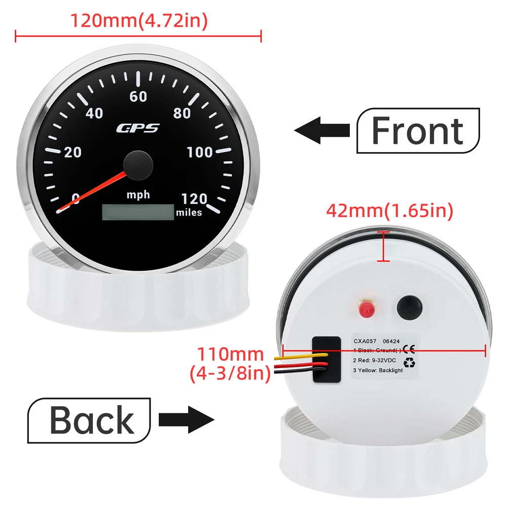 110mm GPS Speedometer 0-120MPH Gauge Waterproof for Motorcycles Boat Car Truck 110mm GPS Speedometer 0-120MPH Gauge Odometer 7 Colors LED Waterproof for Motorcycles Boat Car Truck Descriptions: High-brightness LED backlight. 316 stainless steel for long-term use even in acid-base, humid environment. IP67 waterproof and dust-proof grade. With curved glass( with anti-fog function). Suitable for all kinds of vehicle modification. Using stepper motor drive pointer, accurate display of the engine speed, and with the LCD display clear display mileage. Gauges have many kinds backlight color (red,yellow,orange,green,blue,purple,white),customers can adjust any color that you like Specification: Material: Stainless Steel 316L Bezel + Anti-fog Glass Install Diameter: Φ110mm or 4-3/8inch Signal: GPS Indication Range: 0-120MPH Working Voltage: 9~32V DC Working Current: ≤100mA Operating Temperature: -30℃ ~ 75℃ Storage Temperature: -40℃ ~ 85℃ IP67 waterproof and dustproof grade Connection: Black: Ground(-) Red: 9-32VDC Yellow: Backlight Package Includes: 1 x 110mm GPS Speedometer Gauge 1 x GPS Antenna 1 x Wire Harness 1 x Instruction Payment Delivery details Terms of sales About us Contact us Payment Payoneer is accepted due to payment security and customer convenience concern. To accelerate the shipping process, please clear your payment ASAP after auction closure or placing the order. Delivery details 1. Orders will be processed and dispatched within the handling time after payment is clear, normally it will be handled within 1-2 days. 2. We only ship to confirmed eBay address while you paid. 3. If you have not received your shipment within estimated delivery date from payment, please contact us and we will offer a solution. Please do not worry about the estimated delivery time. Since eBay expands the delivery time to protect the buyer's right. The exact delivery time will take 9-12days, 15-18days. Hope it is OK for you Terms of sales 1. Please contact us within 30 days t from the date you receive your order if you have any issues with the product 2. All returned items MUST BE in the original packaging and you MUST PROVIDE us with the shipping tracking number 3. We will refund YOUR FULL WINNING BID AMOUNT, upon receipt of the item in its original condition and packaging with all components and accessories included. International Customers Please check with your country customs office to determine what these additional costs will be prior to bidding / buying. Import duties,taxes and charges are not included in the item price or shipping charges. These charges are the buyer responsibility About us We are full-time sellers on eBay. We are committed to product quality and customer service. we have sold gauges or sending units on the market over 10 years and welcome any retailed or wholesales business here. Contact us 1.If you have any question or concern, please do not hesitate to contact our customer support team. 2.E-mails are answered Monday through Saturday. Please allow up to 24hours for a response to your message