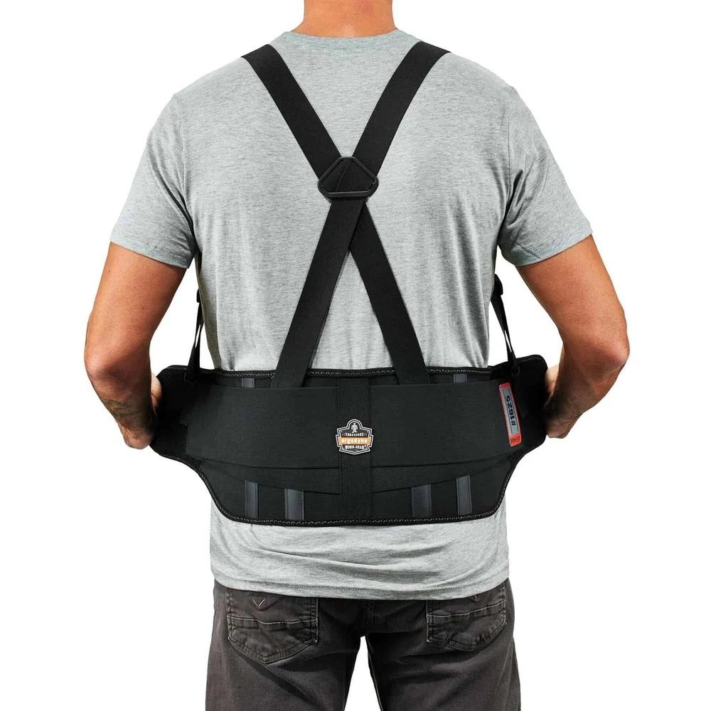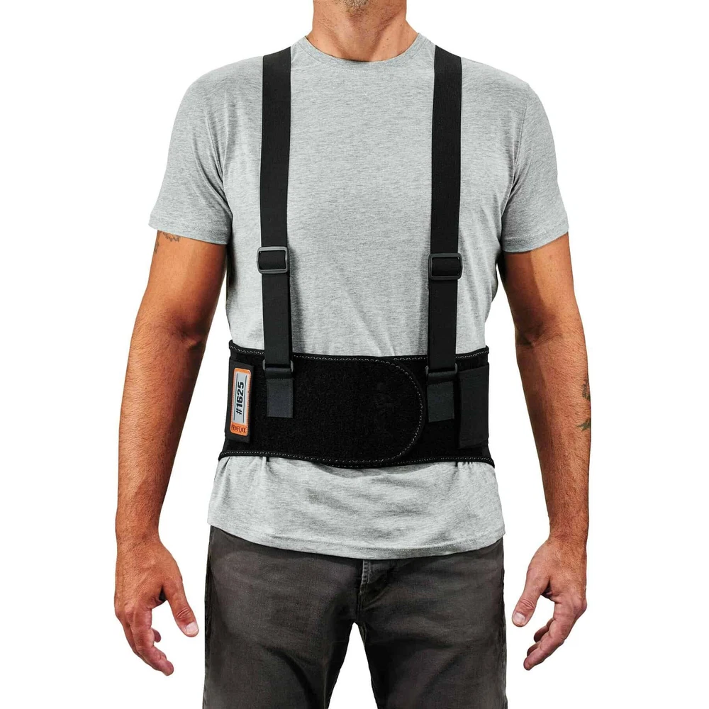 Product Description The ProFlex 1625 Elastic Back Support Brace is designed to remind workers of proper lifting techniques while also enhancing the body's intra-abdominal pressure, moving the away from the spine. Featuring elastic body material, this back support brace features a contoured high-cut front panel for a comfortable fit and provides moderate level of support. Rubber track webbing stays are sewn onto the interior to help keep support in position and prevent it from riding up. SIZING To choose your size, use flexible measuring tape and find the circumference around your body at your belly button. The support should fit snugly around your hips with the front of the support -fingers width below your navel. An easy-to-use hook & loop closure keeps the belt securely fastened while in use and can be worn over or underneath clothing. Adjust the suspenders straps to fit securely on your shoulders without causing tension. Manufacturer Information support LEVEL OF SUPPORT - Moderate, adjustable support COMFORTABLE - Contoured high-cut front panel with elastic body for a comfortable fit NON-CONDUCTIVE - Polypropylene stays for long-lasting integrity POWER PANELS - Offer instant snug activation before lifting SECURE FIT - Rubber track webbing stays keep support in place and prevents riding up SUSPENDERS - Adjustable, detachable suspenders keep belt in place and on standby before next lift VERSATILE WEAR - Low-profile hook & loop closure makes for easy use over or under clothing