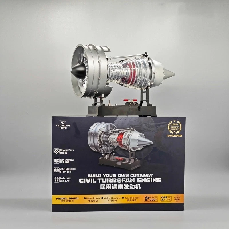 Features(Bullet Points) Faithful 1/12 replica of a modern turbofan engine 300+ CNC-machined aluminum & zinc alloy components Electric motor drive with smooth, realistic fan rotation Premium gift box packaging – ideal for display or gifting Perfect blend of engineering education and collector’s value Description(约200词) There’s something timeless about jet engines—the perfect balance of raw power and human ingenuity. With the TECHING x SKYMECHMAN DM121 Turbofan Engine Model Kit, you can bring that story to life right on your desk. This 1/12 scale engine is more than a model; it’s a tribute to aerospace engineering. Crafted from over 300 CNC-machined metal parts, it captures the inner workings of a real turbofan with striking accuracy. Once assembled, the built-in motor and rechargeable battery bring the fan blades to life, creating an authentic, mesmerizing motion that draws every eye in the room. The DM121 is as rewarding to build as it is to display. Assembly takes a few hours, offering a hands-on journey through precision mechanics. The result is a solid metal masterpiece with true collector’s appeal—an object that tells a story of innovation and craftsmanship. Presented in a premium gift box, this kit makes an unforgettable gift for aviation enthusiasts, engineers, or anyone fascinated by machines that changed the way we travel. 👉 Add it to your collection today and keep the spirit of flight turning in your hands. Specifications Model: DM121 Brand: TECHING x SKYMECHMAN Scale: 1/12 Material: CNC Aluminum Alloy + Zinc Alloy Parts: 300+ Drive Mode: Electric Motor Power: 3.7V 800mAh Li-ion Battery (USB charging) Charging Time: ~2 hours Runtime: ~30 minutes Assembly Time: 2+ hours Difficulty: ★★★☆☆ Product Weight: 2800 g Dimensions: 31.2 × 16.7 × 18.8 cm Package: Premium Gift Box Age: 16+ Package Includes: Engine parts set, Tool kit, Instruction manual