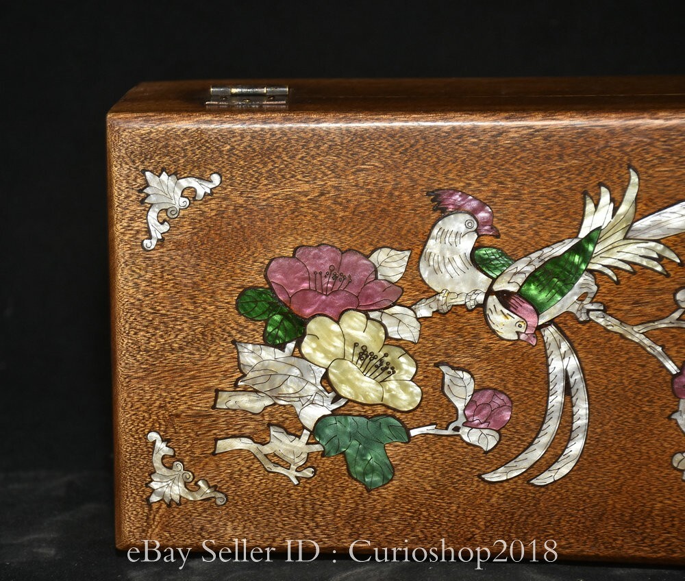 11.2" Old Chinese Huali Wood Inlaid Shell Carving Flower Bird Jewelry box . Very Rare and high Value for collection ! We are deal business on antique over 30 years now and very happy to showing our collection items on ebay for learning together. In our collection, The difference kinds of Old wood carving Sculpture or Furniture . Natural Jade Carving , Antique Hongshan Culture Statue or Pendant , Shoushan Stone carving or seals. Antique porcelain vase or vessel. Tibet Buddhism Religion Items is our specialty.We experienced, vision, provides the high-quality service for you Please add us to your Favorite seller and enjoy order. 20210522JIA Description Note: All the items in my store are genuine and original as ebay photos when you receive so Please bid with confidence and if you have any question please feel free to Email/Message me. Package will be shipped in 24 hours and 30 days return was accepted. 100% payment Guarantee ! If you have any questions, or when you want to submit a dispute case, please send an e-mail first, I will reply within 12 hours, all the problems can be solved, I accept the return money and 100% refund , so that all customers satisfaction is my request. size: Height:4 inch Width: 11.2 inch Thickness: 0.6 inch weight with packaging round 1.5 kg Shipping cost to all over the world in free cost ! Payment Only accept paypal payments. Delivery details shipping to USA : about 7-15 days to arrive. International shipping: about 10-20 days to arrive. Terms of sales A: No, no reason to accept any return. If you need to return it, you must bear the return shipping! We are trying to resolve easily. Please go ahead to contact us if you have any problem. We will resolve asap. B: Please do not leave neutral feedback or negative feedback for any reason, because we will try best to resolve well for your happy and we believe any mistake or misunderstand able to fixed. Thanks . C: honest, trustworthy, peace, to every buyer good shopping experience is our aim, wish for world peace! Combine Discount We recommend the combine shipping , If you won more items once that we will give you a 5 -20% discount off Original price ( Start from second item ) , Discount standard as follow : Buy 2-3 items once we can offer you the 10% discount on Total cost , Buy 4-6 items once we can offer you the 15% discount on Total cost , Buy 7-10 items able to get 20% discount on Total cost. Over 10 items please feel free to email us request for especially price ! Contact us Please pay within 7 days of purchase, otherwise, ebay will automatically open unpaid case. If you have any question, please contact us, we will give you the answer in a timely manner.
