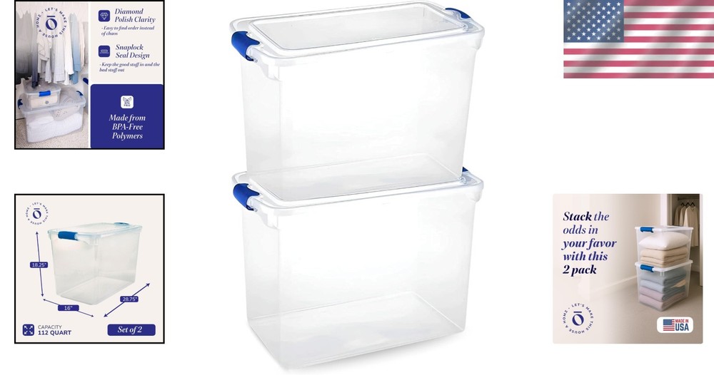 112 Quart Clear Plastic Storage Bins (2-Pack) with Latching Lid, Water-Resistant ‹ › ‹ › ‹ › ‹ › ‹ › ‹ › ‹ › ‹ › ‹ › ‹ › ‹ › 112 Quart Clear Plastic Storage Bins (2-Pack) Product Highlights: Versatile Storage Solution: Perfect for organizing your home, office, or classroom. These bins are ideal for storing files, clothing, supplies, and various large items. Secure Latch Lid Design: Featuring tight-fitting lids with comfortable latching handles, these bins provide a reliable closure that keeps dirt, insects, and moisture at bay, ensuring your belongings remain protected. Stackable and Space-Saving: Our innovative stackable design maximizes vertical space, allowing you to neatly store and effortlessly access your items in closets, garages, or under beds. Eco-Friendly Choice: Crafted from 90% recycled plastic, these heavy-duty and durable storage bins are a sustainable option for your home organization needs. Proudly Made in the USA: Trust in quality with storage solutions made locally, allowing us to help transform your space into a well-organized . Why Choose These Storage Bins? Are you seeking an optimal storage solution that balances efficiency, durability, and sustainability? Look no further than our 112 Quart Clear Plastic Storage Bins, professionally designed for versatility in any environment. Use these bins to store everything from seasonal clothing to essential office supplies, all while ensuring your items are safe from the elements. The secure latch lid design and stackable capability ensure that every inch of your space is utilized, creating a tidy and organized home or workspace. Plus, with a commitment to eco-friendliness, you can feel good about your choice. Order your 2-Pack today and elevate your storage game with style and purpose! Shipping Free & Fast Shipping - We offer free shipping to most of the USA with a normal delivery time of 3-10 businessdays. However, due to various situations, additional delivery time (up to 3 weeks) may be required for some items. Alternative Carriers - We may use alternative carriers (e.g. USPS, FedEx, UPS, etc.) to ensure your package arrives safely and on time. Due to the use of multiple carriers, we are unable to provide a tracking number automatically. Handling Time - Orders are processed and shipped within 1-5 business days of receiving cleared payment. Shipping Restrictions - Shipping to Alaska, Hawaii, Puerto Rico, Guam, and other US territories may incur shipping charges or delivery restrictions. Please contact us before ordering, or your order can be refunded/cancelled. State Restrictions - There may be restrictions based on your state of purchase. For example, certain items may not be shipped to California due to state regulations. Contact for Tracking Updates - If you require tracking updates or have any concerns about the delivery of your order, please feel free to contact us, and we will be happy to assist you. Return Please see our ebay return policy. We do not accept return on most products. This is to avoid customers mis-using ebay returns. All sales are final. Please be sure to check the return policy listed at the top of the listing. In rare cases, we may accept returns, if the buyer pays both ways shipping and 20% restocking fee. If you are un-sure of return policy of a particular item, please ask before buying. Payment We accept all major credit cards, PayPal, and Apple Pay for your convenience. Your payment information is secure and encrypted to ensure a safe and seamless transaction. Please complete your payment within 3 days of purchase to avoid any delays in shipping. Feedback Your feedback is extremely important to us. We strive to provide the best products and customer service possible. If you are satisfied with your purchase, please take a moment to leave us a positive review. If you have any concerns or issues with your order, please contact us before leaving negative feedback. We are committed to resolving any problems and ensuring your satisfaction. Contact Us If you have any questions or concerns, please feel free to reach out to our customer support team. You can contact us through the eBay messaging system. We are available Monday to Friday, 9:00 am to 5:00 pm EST, and we will do our best to respond to your inquiry within 24 hours. Buy it now and enjoy a pleasant shopping experience! UPC: Not Set Unit Quantity: 2 Material: Plastic,Resin Features: Stackable,Water Resistant Mounting: Free Standing Brand: Unbranded Item Height: Storage Bins with Lids Item Length: Storage Bins with Lids Item Width: Storage Bins with Lids Type: Storage Basket Capacity: 81 - 120 Quarts Item Weight: Less Than 2 lb Item Depth: Less Than 5 in MPN: Not Set Model: Not Set Number of Items in Set: Two-Piece Color: Blue Number in Pack: 2 Number of Compartments: 1 Shape: Rectangular Pattern: Solid Finish: Glossy Style: Modern Assembly Required: Not Set