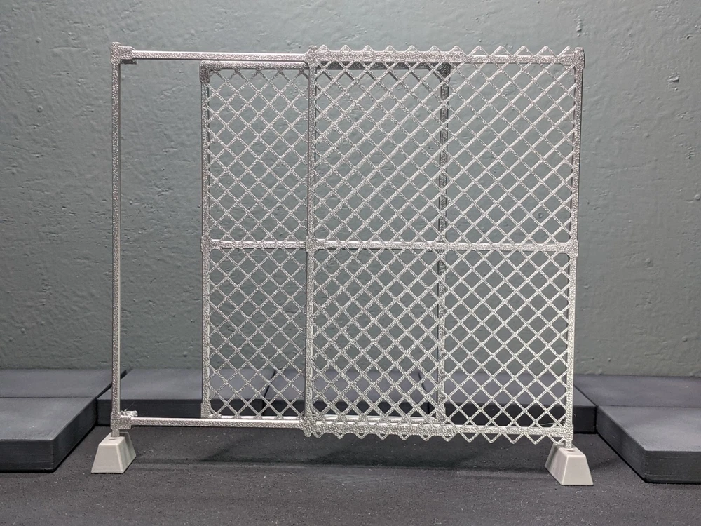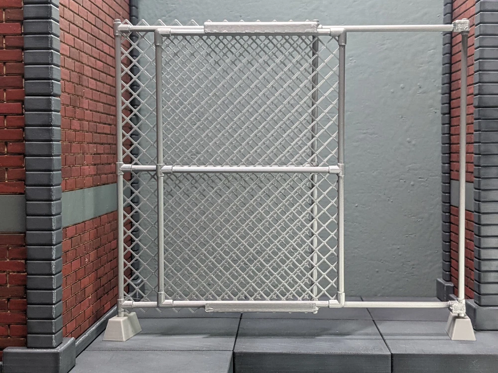 The action figure shown is not included. It is 6.3" tall and is shown only to clarify the size/scale. These diorama display accessories are compatible with 6" action figu r es. There are two type of panels available : 1) Fence Panel (no gate), which includes a panel of chain link fence and two stands. This panel has no door/gate, just solid fencing. 2) Fence Panel with Gate, which features a door/gate and also comes with two stands. The panels can be combined to form a longer fence. The stands are created in a gray plastic to represent cement/concrete blocks. The fences are created from a gray plastic with a slightly metallic look. If you plan to paint these 1/12 scale chain link fences, a thin coat of primer before paint is highly recommended. Without primer the paint may not adhere properly and chip o ff. Dimensions Chain link fence with stand : 7.17" x 0.5" x 6.5"H Not all screens show colors the same. Please understand the actual color many vary from the color you see on your screen. This item is 3D printed. Your order will be FDM 3D printed and shipped as soon as possible. Please note that due to print time and available printer time, this can take 1-3 business days. Please understand that small imperfections can be part of the 3D printing process. If you wish to clean this item, please do so with warm soapy water only. These items are not dishwasher-safe. This item is intended for indoor use only. Excessive UV light exposure can modify your item's color. All 3D printed items were designed and printed by myself, in Florida. These 1/12 scale action figure props are not toys, and are not suitable for children.