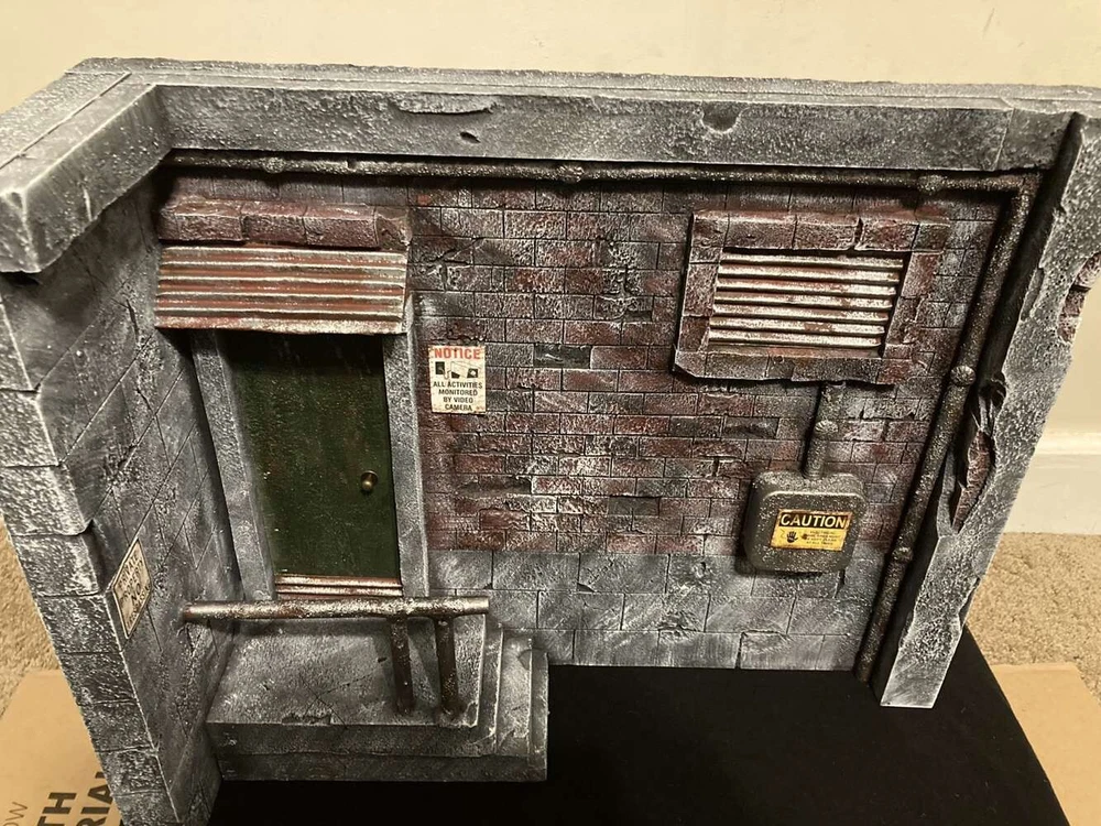 1/12 Scale Diorama. Diorama measures 16 inches across and 13 inches tall. Diorama is very detailed and comes with 2 barrels. Figure is there for size comparison. If you have any questions please ask. Thanks for looking!