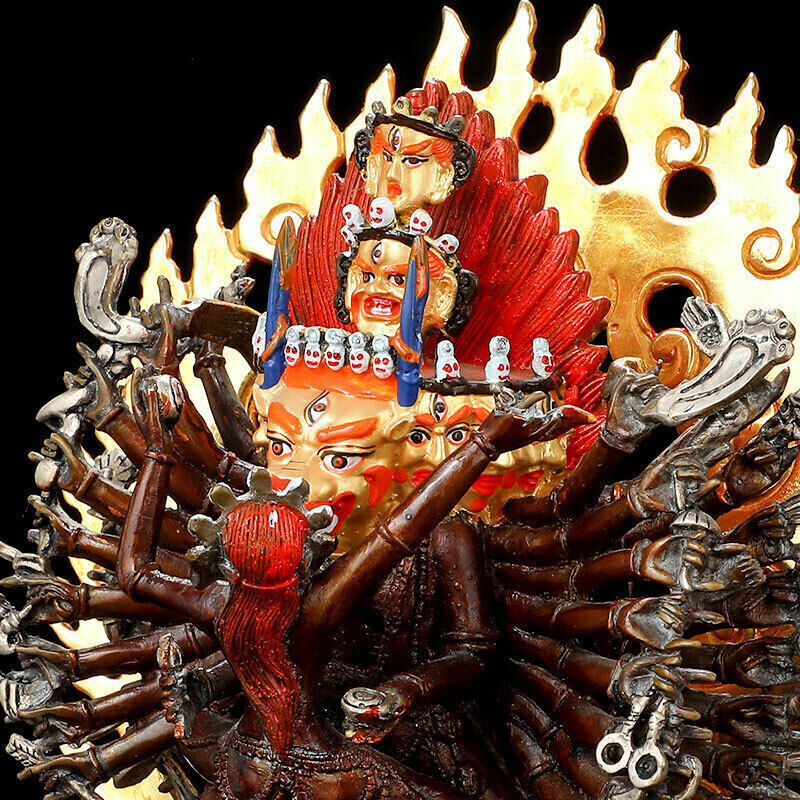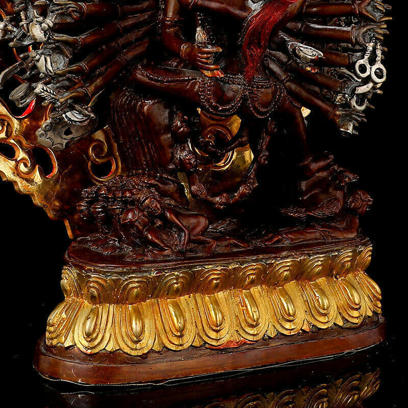 11.2" Tibetan Buddhism Nepal bronze gilt silver temple Yamantaka statue Product Description SIZE: diameter:22 High:28.5(cm) SIZE: diameter:8.6 High:11.2 (inch) Condition: Good condition Origin: China