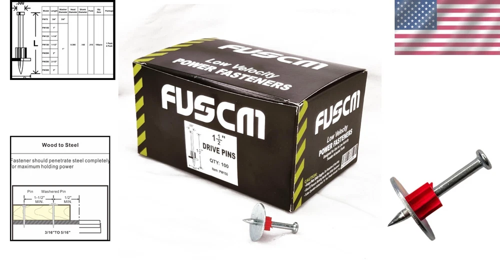 1-1/2" Zinc Chromate Drive Pins & Washers - 100PCS x 4 Pack; Versatile Fastening ‹ › ‹ › ‹ › ‹ › ‹ › ‹ › ‹ › ‹ › ‹ › 1-1/2" Zinc Chromate Drive Pins & Washers -100PCS x 4 Pack Versatile Fastening Solutions for Your Needs Features: Compatible with all popular powder fastening systems and single pin concrete nailers. Ballistic point design for easier penetration and lower defect rates. Specially treated pins are extremely tough, capable of penetrating dense concrete, masonry joints, or structural steel. Plated surface offers durability and suits treated lumber applications. Pins measure from 3/4" to 3" in length. Head diameter of .300", shank diameter of .145", and flute diameter of .315". Accompanied by robust 1" diameter washers that increase bearing surface with outstanding performance. Perfect for fastening wood to concrete, wood to steel, steel to concrete, and steel to steel. Massive package: 4 boxes with 100 pcs per box for comprehensive projects. Benefits: Maximized efficiency in fastening various materials. Enhanced ease of use with ballistic point for quick penetration. Reliable performance even in dense and tough structures. Proven durability to withstand a range of environments. Convenient and ample supply for extensive projects. Wide compatibility makes it suitable for diverse applications. Why choose our Zinc Chromate Drive Pins & Washers? Elevate your fastening game with our 1-1/2" Zinc Chromate Drive Pins & Washers. Designed for versatility and strength, these fasteners are an essential addition to your toolkit. Their ballistic point design ensures quick and efficient penetration while maintaining low defect rates. Special treatments add durability for tough jobs involving dense materials. With the added advantage of accompanying washers, you will achieve secure and reliable connections in any project—whether fastening wood to concrete or steel to steel. Don't compromise on quality; choose our drive pins and washers for guaranteed performance in every task. Order your massive package today and experience the difference in your fastening solutions! Shipping Free & Fast Shipping - We offer free shipping to most of the USA with a normal delivery time of 3-7 days. However, due to the current situation, additional delivery time (up to 3 weeks) may be required for some items. Alternative Carriers - We may use alternative carriers (e.g. USPS, FedEx, UPS, etc.) to ensure your package arrives safely and on time. Due to the use of multiple carriers, we are unable to provide a tracking number automatically. Handling Time - Orders are processed and shipped within 1-2 business days of receiving cleared payment. Shipping Restrictions - Shipping to Alaska, Hawaii, Puerto Rico, Guam, and other US territories may incur shipping charges or delivery restrictions. Please contact us before ordering, or your order can be refunded/cancelled. State Restrictions - There may be restrictions based on your state of purchase. For example, certain items may not be shipped to California due to state regulations. Contact for Tracking Updates - If you require tracking updates or have any concerns about the delivery of your order, please feel free to contact us, and we will be happy to assist you. Return 30-Day Hassle-Free Returns - We want you to be completely satisfied with your purchase. If you are not, you can return the item within 30 days of receiving it for a full refund or exchange. Easy Return Process - To start a return, simply contact us and we will provide you with a prepaid return shipping label and detailed instructions. Restocking Fee - There are no restocking fees for returns. However, the buyer is responsible for return shipping costs if the return is not due to a seller's error. Refund Processing Time - Refunds will be processed within 5 business days of receiving the returned item in its original condition. Payment We accept all major credit cards, PayPal, and Apple Pay for your convenience. Your payment information is secure and encrypted to ensure a safe and seamless transaction. Please complete your payment within 3 days of purchase to avoid any delays in shipping. Feedback Your feedback is extremely important to us. We strive to provide the best products and customer service possible. If you are satisfied with your purchase, please take a moment to leave us a positive review. If you have any concerns or issues with your order, please contact us before leaving negative feedback. We are committed to resolving any problems and ensuring your satisfaction. Contact Us If you have any questions or concerns, please feel free to reach out to our customer support team. You can contact us through the eBay messaging system. We are available Monday to Friday, 9:00 am to 5:00 pm EST, and we will do our best to respond to your inquiry within 24 hours. Buy it now and enjoy a pleasant shopping experience! UPC: Not Set Model: Not Set Unit Quantity: 8.38 Material: Carbon Steel,Zinc Chromate Brand: Unbranded Holes per Leaf: 1 Screw Size: #0 Thread Size: #0 Gauge: 16 Mandrel Material: Steel System of Measurement: Inch Shape: Round Head Style: Flat Drive Style: Slotted Rail Height: 1 1/2 in Item Length: 12 in Item Diameter: 0.15 inches End Type: Closed Type: Drive Pins Grade: Grade 5 MPN: Not Set Grip Range: 0.125 in - 0.375 in Item Diameter (Interior): 1 in Item Thickness: 1/8 in Number in Pack: 400 Finish: Zinc Chromate Country/Region of Manufacture: Not Set Unit Type: lb