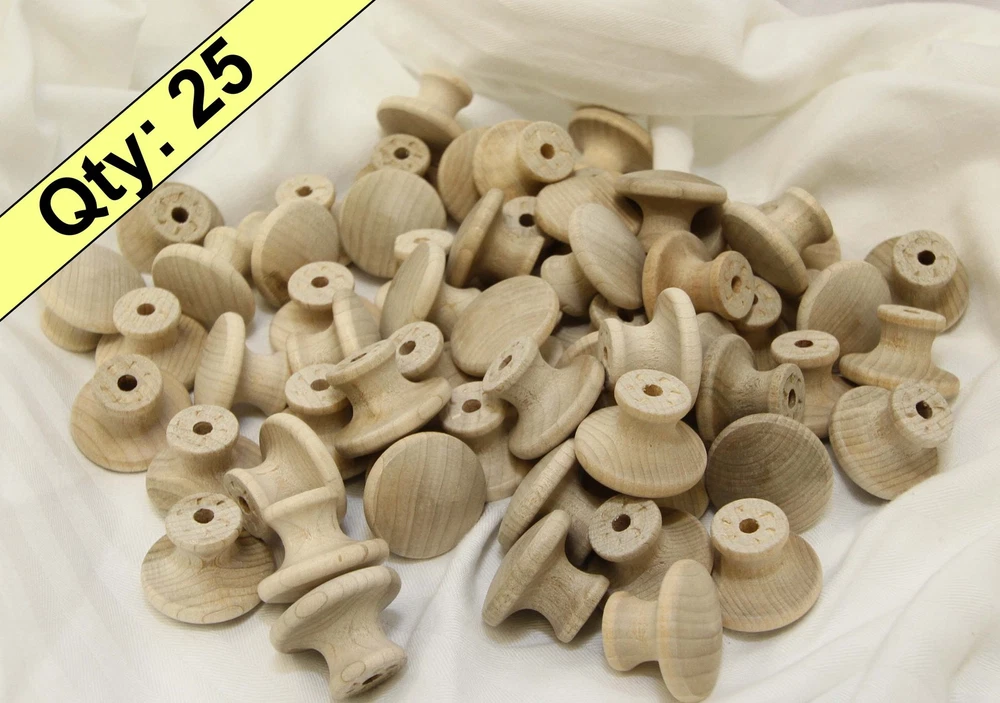 Sold in packages of 5, 10, 25, 50, 100 knobs with or without 1-1/4" screws. This is a 1-1/4" mushroom like knob. The top diameter is 1-1/4", height is 3/4", base is 3/4" diameter. They are pre-drilled with a 3/16" drill bit as seen in the photos. These are great for any type of project such as: woodworking, crafts, cabinets, hobby cars, home decor, etc. Typically shipped via USPS or UPS depending on size and cost. Shipping to US is FREE!