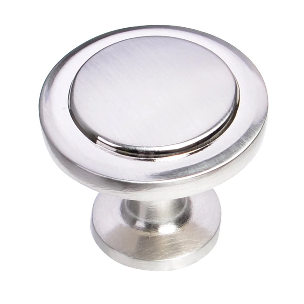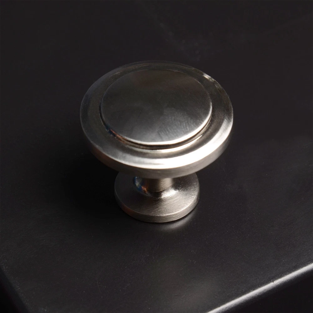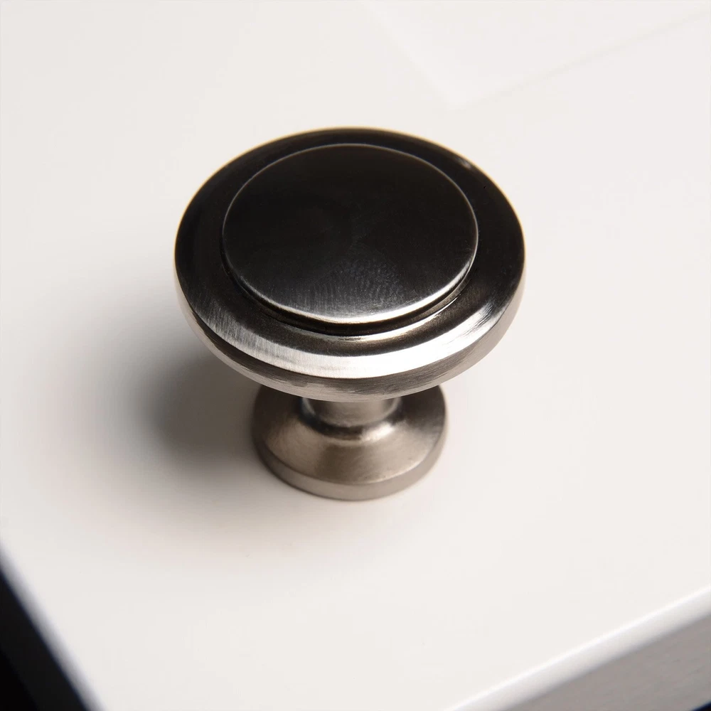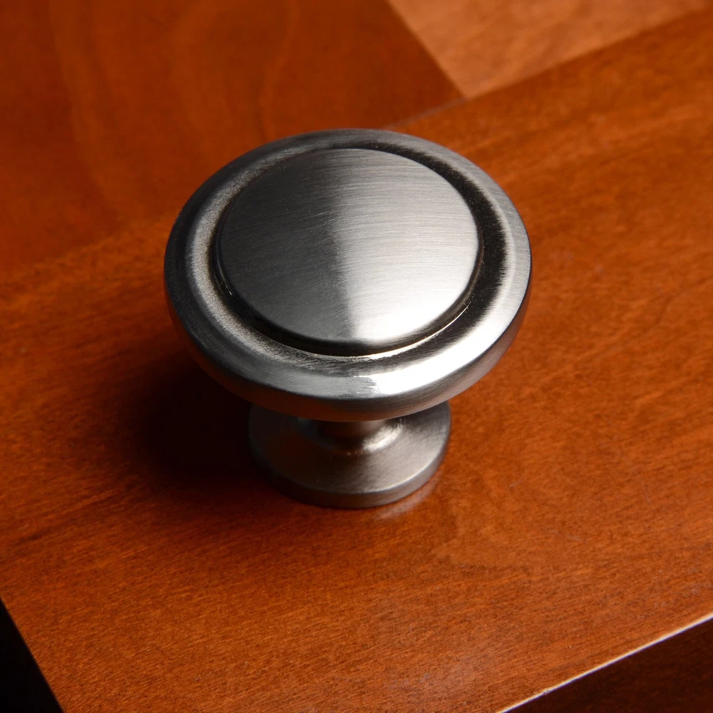 Our rounded satin nickel pull knob is an excellent cabinet accessory for any room. Each item contains 25 total units as well as individually bagged 1" mounting screws. South Main is the ideal hardware for redesigning your home, kitchen and bath. We offer high quality hardware accessories at the lowest possible price. With , you cannot go wrong. Diameter: 1-1/4 inch Satin Nickel finish Includes 1 inch mounting screws Projection: 1 inch Decorative drawer knob
