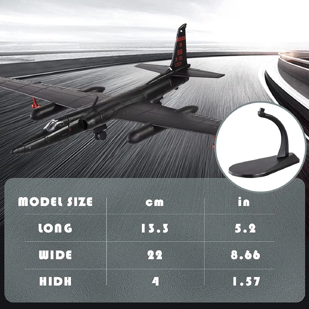 You may also like White Air France Concorde Plane Model Toy Diecast Collection Scale 1:400 10.99 USD 3.69 USD 24cm Plastic 1:1500 China Shandong Ship Aircraft Carrier Assembly Ship Model 13.49 USD 3.69 USD 1/1250 HMT OLYMPIC Ocean Boat Diecast Cruise Ship Model Craft Souvenir Scene 33.99 USD 11.9cm Diecast Alloy 1/200 Scale USA Air Force B-17G Fighter Model with Stand 33.99 USD 3.69 USD 1/72 Scale Diecast Alloy US Army Black Hawk MH-60L Helicopter Military Model 139.99 USD 3.69 USD 24.5cm Diecast 1/1000 WWII USS Enterprise CV-6 Aircraft Carrier Model Display 79.99 USD 3.69 USD Product Description 1/144 Scale U2 Reconnaissance Aircraft Model with display Stand, Plane Souvenir Static Display Specifications: Product Name: High Simulation 1:144 Alloy aircraft Model Color: Black Material: Alloy+ABS Plastic Recommend Age: 12+y,18+ Model Size: 13.5x22x4cm Features: Brand new and high quality plane model. Aircraft model meet your passion for aviation collectibles with beautiful design. An accurate scale model plane for collectors and enthusiasts. Plane model can be placed in the living room, bar, company, Coffee hall as home decoration , retro and elegant, noble fashion. Package Includes: 1* 1/144 Scale U2 Reconnaissance Aircraft Model 1* Display Stand Note: Color might be slightly different due to the color calibration of each individual monitor. Please allow slightly measuring deviation due to manual measurement. Shipping Returns Contact Us Payment 1. Items sent from US warehouse. 2. Receiving time = Processing time + Shipping time. 3. Processing Time: Around 1-2 business Days. 4. Shipping Time: 3-5 business day. It may have a little delay during some holiday (such as Christmas), any problem, please feel free to contact. Always believe we can figure things out with communication, if it comes to return, the pacakge must be intact and the same as you receive. If you have any questions, please feel free to email our service specialists 24 Hours a Day, 7 Days a Week. We will reply you ASAP. Return/refund is accepted within 30 days after the buyer receives the item. NO exchange will be accepted after 30 days from the date when the item is received. Please contact us first before returning your product!!! If you have any questions, our Customer Service staffs welcome you to email us. We strive to answer all questions and resolve any problems as quickly as possible. We care about our valued customers, and will always try to help you. So if you have any problems, You can contact us 7*24, we will reply at the first time. We accept all verified payments from ebay. Orders will be shipped after receiving cleared payment. Shipping 1. Items sent from US warehouse. 2. Receiving time = Processing time + Shipping time. 3. Processing Time: Around 1-2 business Days. 4. Shipping Time: 3-5 business day. It may have a little delay during some holiday (such as Christmas), any problem, please feel free to contact. Returns Always believe we can figure things out with communication, if it comes to return, the pacakge must be intact and the same as you receive. If you have any questions, please feel free to email our service specialists 24 Hours a Day, 7 Days a Week. We will reply you ASAP. Return/refund is accepted within 30 days after the buyer receives the item. NO exchange will be accepted after 30 days from the date when the item is received. Please contact us first before returning your product!!! Contact Us If you have any questions, our Customer Service staffs welcome you to email us. We strive to answer all questions and resolve any problems as quickly as possible. We care about our valued customers, and will always try to help you. So if you have any problems, You can contact us 7*24, we will reply at the first time. Payment We accept all verified payments from ebay. Orders will be shipped after receiving cleared payment. 1:87 Railway Signal Traffic Light 8.3cm Traffic Light Black Post With Ladder 4.99 USD 3.69 USD Diecast 1/1000 WWII USS Massachusetts BB-59 Battleship Model Static Display 57.19 USD 3.69 USD 14cm Diecast Alloy 1/72 WWII British Army A39 Tortoise Tank Model Static Display 51.99 USD 3.69 USD 1/1000 Scale WWII USS Alabama BB-60 Battleship Alloy+PC Finished Model Decor 53.39 USD 3.69 USD 1:400 16cm HONGKONG AIRLINES A350 Alloy Airplane Plane Diecast Model Collection 10.99 USD 3.69 USD 1:72 4D Unassembled Russian S-300 Missile Launcher Vehicle Model PVC Plastic f 13.99 USD 3.69 USD 1:100 3D Metal Chief Tank MK50 Military DIY Vehicle Model Unassembled Kit 8.99 USD 3.69 USD New 1/400 Italy Muzio Attendolo Light Cruiser Paper Model Unassembled Kit 6.99 USD 3.69 USD 1:72 Singapore Air Force F-16D Fighting Falcon Fighter Attack Military Model c 34.99 USD 3.69 USD 1:400 16cm B737 Bangladesh Airlines Airplane Diecast Plane Model Gifts/Decor 10.99 USD 3.69 USD 1/400 Alloy A350 Malaysia Airlines Airplane Model 16cm Civil Airliner Gifts/Deco 10.99 USD 3.69 USD 7cm 1/64 Scale For Ferrari F40 Red Model Vehicle Alloy Simulation Ornament 26.96 USD 3.69 USD 1:400 A320 CEBU PACIFIC AIR Airplane Model Diecast Plane Model Christmas Gifts 10.99 USD 3.69 USD Airplane Model Diecast Planes 16cm Korean Air A380 Model Plane 1:400 Alloy Model 10.99 USD 3.69 USD 1/400 16cm Alloy Simulation B777 Air Algerie Airplane Model Aircraft Display 9.99 USD 3.69 USD Alloy 1/72 Scale Vietnamese Air Force J-6 Fighter Finished Model Gift Collection 113.99 USD 3.69 USD 1/144 Scale WWII Armstrong Whitney Heavy Bomber Airplane Alloy Model Toy Decor 33.99 USD 3.69 USD 1/100 Alloy Russian SU57 Fighter Aircraft Diecast Plane Airplane Model Gifts 40.99 USD 3.69 USD Alloy+ABS Plastic 13cm Aircraft Tractor Alloy Truck Model Tractor Souvenir 28.99 USD 3.69 USD New 1:33 Britain Albatross D.V Fighter Paper DIY Model Military Puzzle Kit 7.99 USD 3.69 USD 1:64 Alloy Pull Back Military Truck Kids Car Model Rocket Missile Vehicle Gift 20.99 USD 3.69 USD 1/100 A-10 Attack Aircraft Thunderbolt II Fighter Plane Model Scene Display Gift 35.99 USD 3.69 USD 1