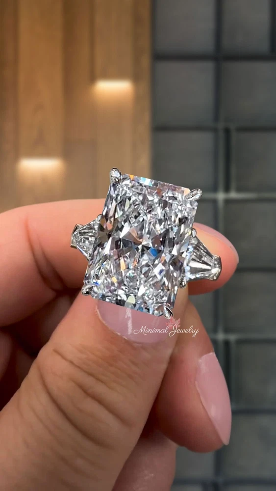Elevate your love story with the 11.5 CT Radiant Cut Moissanite Engagement Ring in 14k White Gold, featuring a dazzling three-stone design for timeless brilliance. Certified for exceptional quality, this size 5.5 ring is a perfect symbol of elegance and commitment. DESCRIPTION -------------------- STYLE : Three Stone Moissanite Details Stone Type : Moissanite - High Quality Main Stone : Radiant Size (mm) : 15*11 Carat Weight : 11.5 Band & Halo & Side Stone : Shield Size (mm) : 8*5 Carat Weight : 3.0 Stone Total CTW : 14.5 Color : Colorless Clarity : VVS Metal (Solid) : 14k White Gold Band Width : 2 ๐๐๐ซ๐ซ๐๐ง๐ญ๐ฒ ๐๐ง๐ ๐๐๐ซ๐ฏ๐ข๐๐: ------------------------------ โข We offer a 1 Year warranty on all our Jewelry. โข We also provide paid service after completion of the warranty. ๐๐ก๐๐ง๐ค ๐ฒ๐จ๐ฎ ๐๐จ๐ซ ๐ฏ๐ข๐ฌ๐ข๐ญ๐ข๐ง๐ ๐จ๐ฎ๐ซ ๐ฌ๐ญ๐จ๐ซ๐, ๐ฌ๐๐ ๐ฒ๐จ๐ฎ ๐ฌ๐จ๐จ๐ง. --------------------------------------------------------------