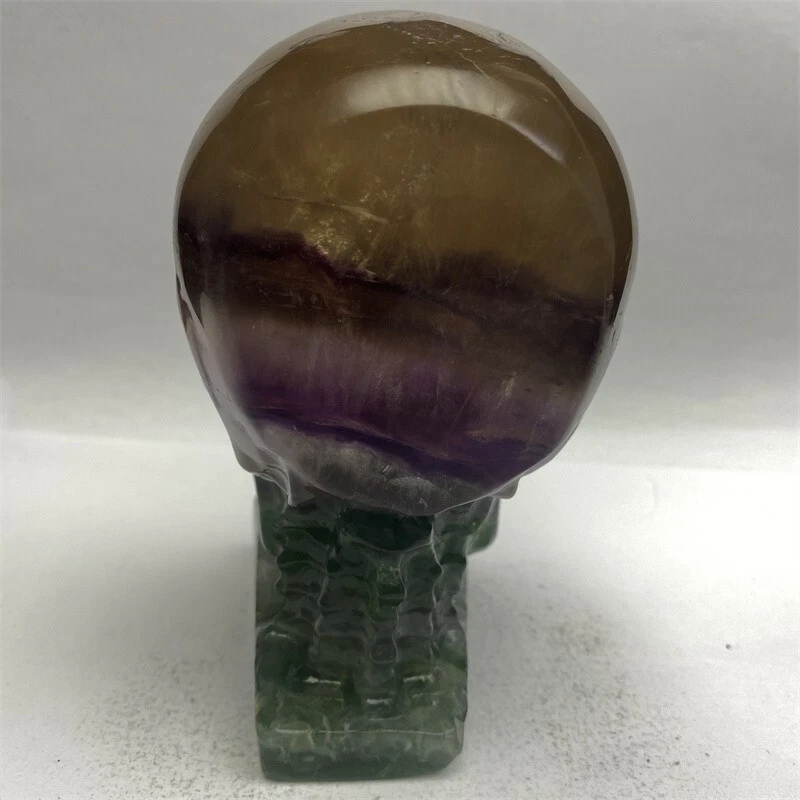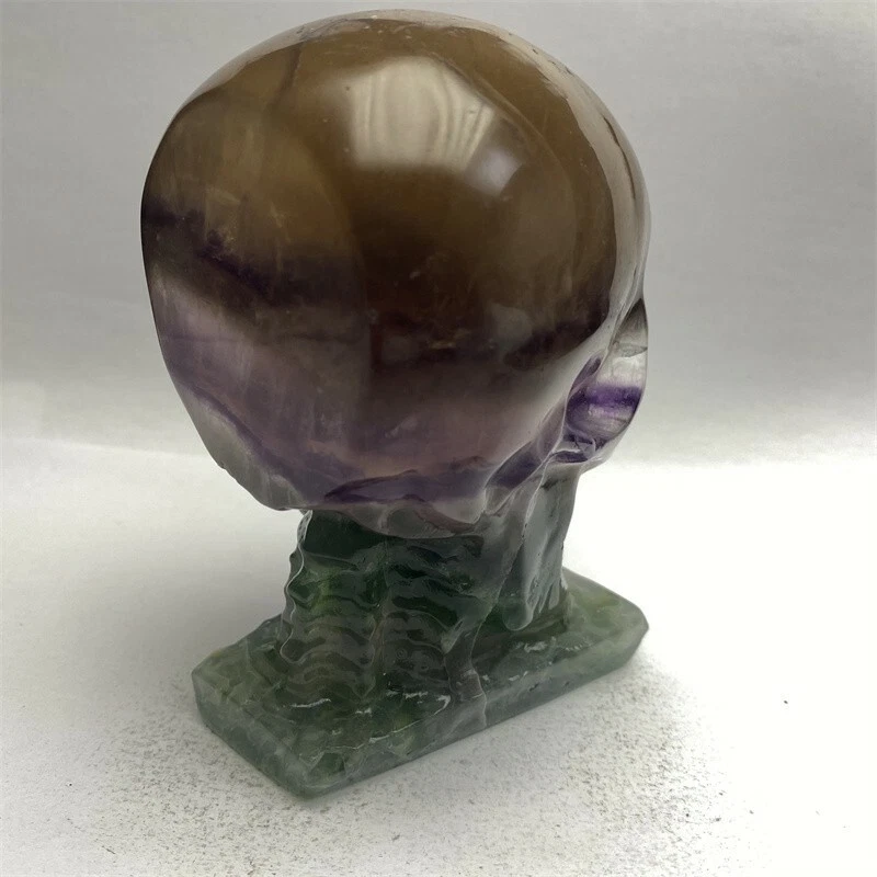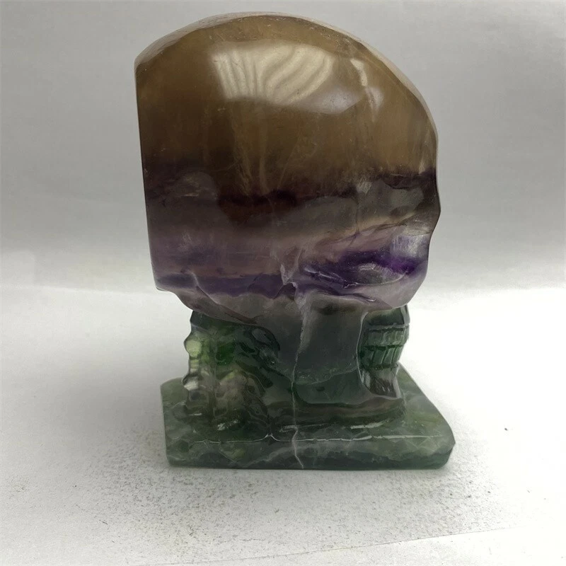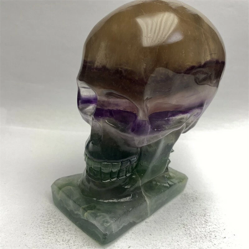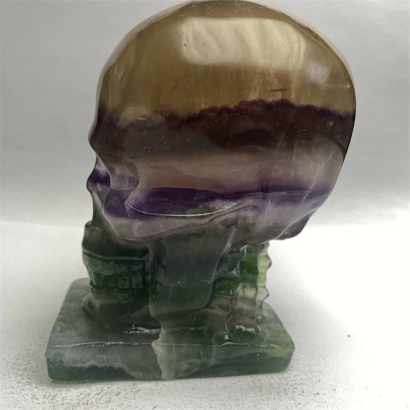 1150g Natural Beantiful Fluorite Quartz Skull Hand Carved Crystal Healing Skull
