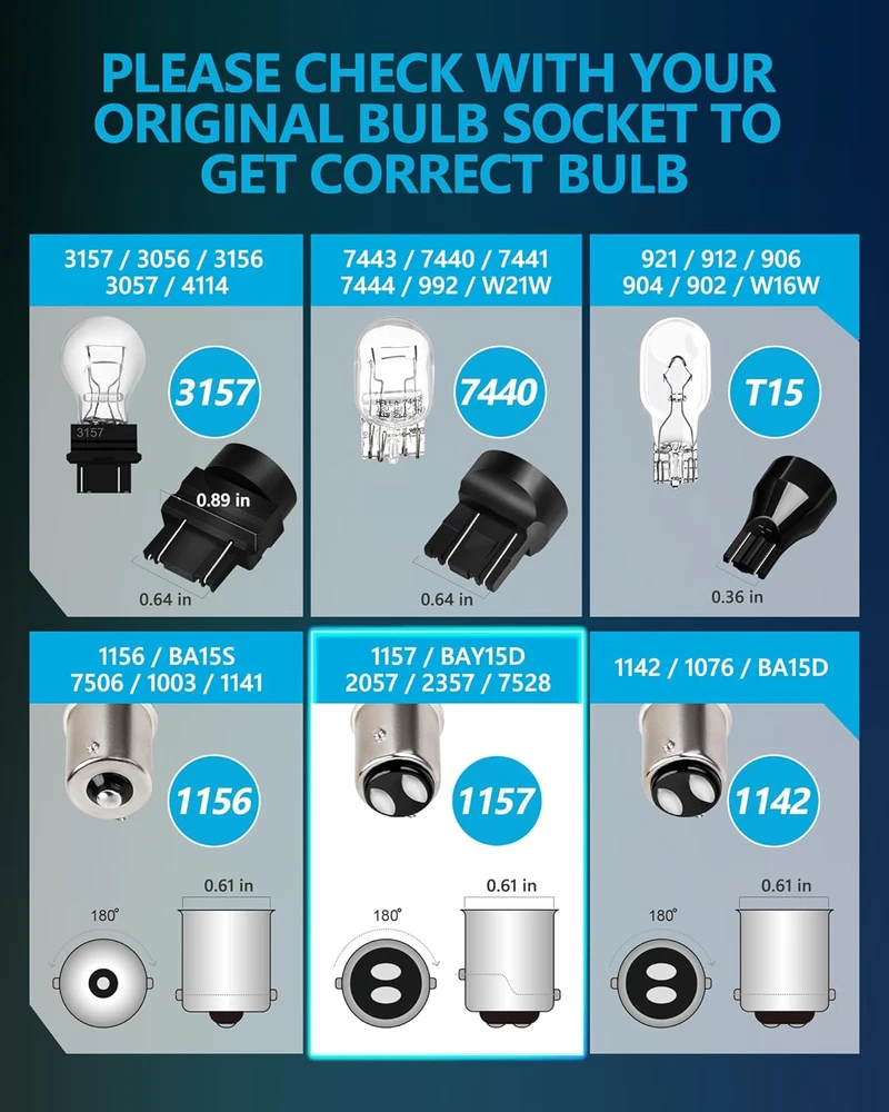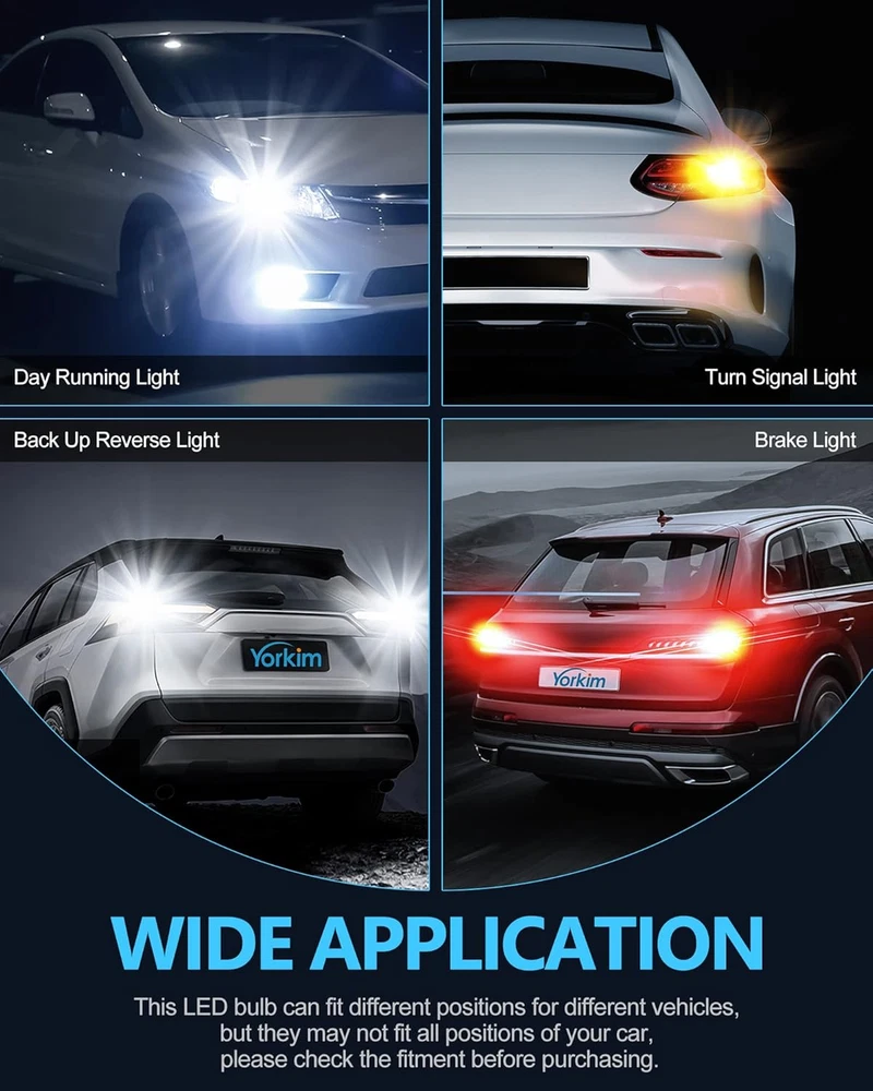 Store New Arrivals Add to Favorite View Feedback Contact 1157 LED Bulb Amber 2357 Led Bulb 300% Super Brighter 1157 LED Turn Signal Lights 2057 7528 BAY15D Led for Car Blinker Lights Side Marker Lights, Pack of 2 Description Item model number 1157-3215 Item Package Quantity 1 Operating Life 50000 Hours Light Source Type LED Wattage 3.6 watts Color Amber pack of 2 Manufacturer Part Number 1157-3215 Item Weight 1.76 ounces Voltage 12 Volts Auto Part Position Right Size 1157 Package Dimensions 3.19 x 2.2 x 1.06 inches Fit Type Vehicle Specific Fit 【GREAT OUTPUT】- Yorkim 1157 LED bulb is built with 21 PCS powerful 2835 SMD LED chips on multiple sides paired with an integrated special PC lampshade, 360 degree lighting angle, super bright without dark spots or shadow area, bright but no dazzling, 300% Brighter than halogen bulbs 【LONG LIFESPAN】chips: 2835 chips, voltage: 10-30V, color: Amber Yellow, lumen: 1500lm/bulb, Watt: 3.6W/bulb. Full aluminum housing and built-in upgraded smart IC driver for high heat consumption, constant current and great perfomance, lifespan can be up to 50,000 hours 【SAFE AND QUICKER】1157 led bulb is instant start, no delay, safe and reliable enough, no glare to other drivers. NOTE: When used as Turn signal lights Brake lights, a load resistor might be needed to prevent hyper flashing issue 【EASY INSTALLATION】No-polar design, fit in standard 1157 socket, just remove the original bulb and insert this 1157 LED bulb, plug and play in 10 minutes, no different than installing a normal bulb 【MULTI APPLICATION】Fit for 1157 BAY15D 1016 1034 1157 1157A 1178A 1196 2057 2057A 2357 2357A 2357NA 2397 3496 7528 ect, for Turn Signal Lights, Tail Lights, Parking Lights, Side Marker Lights, Daytime Running Lights etc Product Description Yorkim 1157 2357 2057 7528 BAY15D led bulbs amber, obvious lighting for led turn signal light bulb Yorkim 1157 LED bulb amber is built with 21 PCS powerful 2835 SMD LED chips on multiple sides paired with an integrated projector, high quality chips can offer you great light, and the projector makes the light more focused. 360 degree lighting angle, ensures the light more uniform and much fuller, super bright without dark spots or shadow area, bright but no dazzling. 300% Brighter than halogen bulbs, provide ultra bright, beautiful and clear light, updates your car a modern look PLEASE CHECK YOUR BULB SIZE BEFORE PURCHASING, THIS IS THE 1157 BAY15D 2057 2357 7528 BULB Dual Function This 1157 led bulb can be used as Turn Signal light or day running light NOTE: When used as Turn signal lights, a load resistor might be needed to prevent hyper flashing issue Canbus Error Free Built-in intelligent constant current IC driver, canbus error free for more than 95% vehicles, no flikering, no error code, stable input current protects the circuit, low power consumption, great performance Great Heat Dissipation Voltage: 10-30V Color: amber yellow Watt: 3.6W/bulb Full aluminum housing and built-in upgraded smart IC driver for high heat consumption, constant current and great perfomance, lifespan can be up to 50,000 hours. Yorkim 1157 led bulbs can be 300% brighter than the dim yellowish halogen bulbs Wide Application: This 1157 led bulb can be commonly used for turn signal light, day running light,blinker light and ect. This doesn't mean that the bulb can fit for all position for your vehicle, it depends on year/make/model and exact position. So please check the fitment data before making an order. Δ How to Find Correct Bulb Size for Your Vehicle? 丶Check your vehicle user manual or original halogen bulb, the part number is marked above. 丶Search "automotive bulb look-up" online, and enter your vehicle info to find out the correct size. 丶Ask a question in 'Customer questions & answers', write down your vehicle year, make and model and which position you are replaceing. ABOUT US We offer the best prices around on high quality products. Our E-store includes media such as books, movies, music and games while offering electronics, toys, sporting apparel, clothing, tools, general home, garden items and more. SHIPPING We are always working hard to ensure your package arrives as soon as possible. Please understand that some factors like weather, high postal traffic, and the performance of shipping companies are outside of our control. We offer free shipping to the lower 48 states and ship within 2 business days of payment, usually sooner. We do not accept P.O. Boxes. Please provide a physical address. For shipping outside of the continental USA, we only use eBay's Global Shipping Program.The item is shipped to KY and then sent to the rest of the world. International customers are responsible for all duties and taxes. Continue to check out in order to calculate costs for shipping the item to your country. Messages regarding eBay's Global Shipping Program MUST be directed at eBay EXCLUSIVELY. RETURNS We offer a 30-Day Return Policy on items which you are not completely satisfied with. You have the option for a full-refund or an exchange of the item. No returns are available on items shipped outside of the USA. PAYMENT We accept PayPal. CONTACT US This page content is yet to come Please ad us to your favorite seller and visit again later Thank You CUSTOMER SATISFACTION We try our very best to make sure every customer is completely satisfied. If there's a problem, message us! We're happy to help. WE ACCEPT Copyright © 2021 AutoDS. | All Rights Reserved