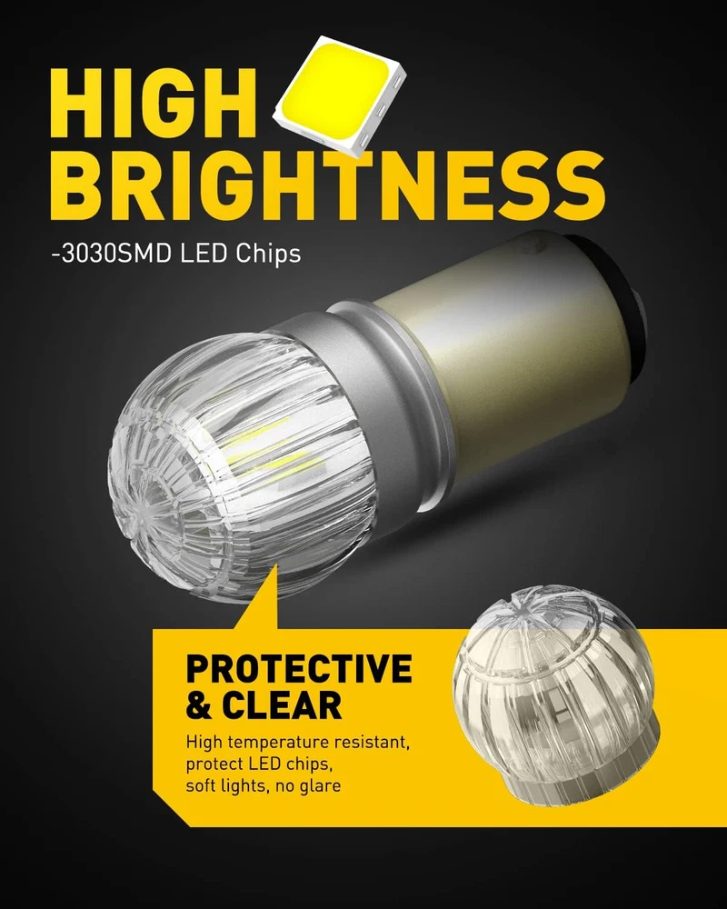 Store New Arrivals Add to Favorite View Feedback Contact 1157 LED Bulb White, 400% Brighter 1:1 Size, 7528 2057 2357 BAY15D LED Lights for Reverse Backup Light, Tail Light, Brake Signal Light, DRL, Pack of 2 Description Item Package Quantity 1 Light Source Type LED Color Temperature 6000 Kelvin Color White Mirror Lighting Type automotive-exterior-tail-light-bulbs Wattage 7 watts Manufacturer Part Number -US6T1157W2 Specific Uses For Product Backup reverse light, day time running light, brake turn signal tail light, side marker light Item Weight 1.13 ounces Voltage 12 Volts Auto Part Position Rear Operating Life 30000 Hours Package Dimensions 3.66 x 2.76 x 1.06 inches Size 1157/2357 【Awesome Pattern & Full Brightness】AUXITO design those 1157 white led bulbs with scientific theory with almost 1:1 shape and same light emitting point. Giving 6000K fuller light in your lens, more stylish and clean 【Ultra Bright & Safer Upgrade】 AUXITO 1157 led bulbs white utilize newest powerful and high quality 3030SMD led chips. Generating 400% brighter output and larger lighting area than halogen, see more clearly when reversing. Keep safe 【Directly Fit & Multi Application】 Non-polarity, auxito 1157 led BULBS are plug and play for stock backup reverse lights, brake lights, turn signal lights, etc. Compatible with socket BAY15D 1016 1034 1157 1157 1178 1196 2057 2357 2357NA 2397 3496 7528 94, etc. 【Stable Use & Longer Lifespan】 Hidden hollow-carved and aviation grade aluminum body, expediting the heat dissipation of the led white 1157. With special PC lampshade protecting led chips and components, those 1157 led can work up to 30,000 hours 【Specification & Note】Voltage: DC 12V. Power: 7W/Bulb. Lumen: 3200LM/Pair. Color: White. Pls note: The bulbs are error free when used as reverse backup light. The 50W 6ohm load resistors or flash relay may be required when use them for turn signal blinker light. Message AUXITO if you need any help Product Description Why I CHOOSE AUXITO 1157 BAY15D 2057 7528 LED BULBS? 360 ° illumination Instant bright light with no delay. Provide your dim halogen light with 6000K cool white Super Brighter AUXITO BAY15D LED bulbs adopt newest and high light SMD LED chips. 300% brighter than halogen bulb LED Chip Cover Specially designed with high quality led chip cover, protecting led chips and components, safer and more stylish Built-in intelligent IC driver Wide operating voltage protection and temperature control. Ensure stable performance and longer lifespan Product Dimension Those 7528 led bulb is with similar size as halogen bulbs. Non polarity socket, install in few minutes Exquisite Packaging These 1157 LED bulbs come with exquisite package box, protecting the LED bulbs from squeezing and collision, ensure you get the bulbs intact AUXITO 1157 BAY15D 2357 LED BULBS Voltage: DC9-18V Power: 7W Application: Backup reverse lights, tail lights, brake lights, turn signal lights, DRL, etc Fits: 1157 BAY15D 1016 1034 1157 1157A 2057 2057A 2357 2357A 2357NA 2397 3496 7528 Notes: The 50w 6ohm load resistors or flash relay may be needed to avoid error code or hyper flash issue when use as turn signal or brake light No more darkness when reversing. Much brighter to be aware when turning signal ABOUT US We offer the best prices around on high quality products. Our E-store includes media such as books, movies, music and games while offering electronics, toys, sporting apparel, clothing, tools, general home, garden items and more. SHIPPING We are always working hard to ensure your package arrives as soon as possible. Please understand that some factors like weather, high postal traffic, and the performance of shipping companies are outside of our control. We offer free shipping to the lower 48 states and ship within 2 business days of payment, usually sooner. We do not accept P.O. Boxes. Please provide a physical address. For shipping outside of the continental USA, we only use eBay's Global Shipping Program.The item is shipped to KY and then sent to the rest of the world. International customers are responsible for all duties and taxes. Continue to check out in order to calculate costs for shipping the item to your country. Messages regarding eBay's Global Shipping Program MUST be directed at eBay EXCLUSIVELY. RETURNS We offer a 30-Day Return Policy on items which you are not completely satisfied with. You have the option for a full-refund or an exchange of the item. No returns are available on items shipped outside of the USA. PAYMENT We accept PayPal. CONTACT US This page content is yet to come Please ad us to your favorite seller and visit again later Thank You CUSTOMER SATISFACTION We try our very best to make sure every customer is completely satisfied. If there's a problem, message us! We're happy to help. WE ACCEPT Copyright © 2021 AutoDS. | All Rights Reserved