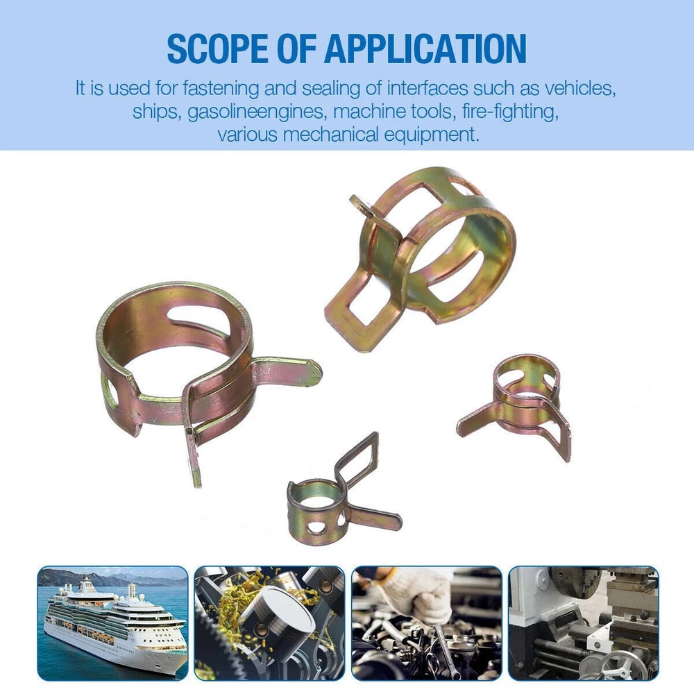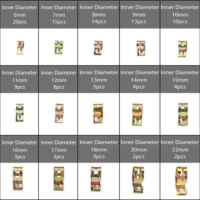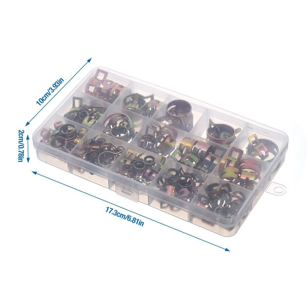 115PC 6-22mm Spring Hose Clamps Fastener Fuel Water Line Pipe Air Tube Clips Kit 🔧 115-Piece Assorted Spring Hose Clamp Kit – Universal for Air/Water/Fuel/Silicone Hoses 🔧 📦 Kit Overview This all-in-one spring hose clamp kit delivers 115 clamps across 15 common inner diameter sizes , neatly organized in a durable plastic storage case. Designed to create leak-free seals for hoses of all types, it’s an essential tool for DIYers, auto mechanics, marine enthusiasts, and homeowners tackling hose connection or repair jobs. 📏 Size Range & Quantity Breakdown The kit covers 6mm to 22mm inner diameters —the most widely used sizes for light-to-medium-duty hoses. Each size is pre-counted and separated into labeled compartments for quick identification and access: Inner Diameter Quantity Ideal Hose Applications 6mm 20pcs Miniature vacuum lines, small engine fuel lines 7mm 15pcs Motorcycle fuel lines, small air compressor hoses 8mm 14pcs Car PCV hoses, lawnmower coolant lines 9mm 13pcs ATV auxiliary hoses, aquarium water tubes 10mm 10pcs Automotive heater core hoses, RV small water lines 11mm 9pcs Boat bilge pump hoses, generator fuel lines 12mm 8pcs Car radiator bypass hoses, garden sprayer lines 13mm 5pcs Medium silicone hoses, industrial air hoses 14mm 4pcs Truck coolant hoses, pool filter small lines 15mm 4pcs Marine fuel lines, household small water hoses 16mm 3pcs Large vacuum hoses, commercial air hoses 17mm 3pcs Heavy-duty silicone hoses, RV sewage lines 18mm 3pcs Boat engine coolant hoses, industrial water lines 20mm 2pcs Large radiator hoses, heavy-duty air hoses 22mm 2pcs Truck fuel lines, large diameter water pipes Key Fit Tip : The clamp’s inner diameter refers to its minimum tight size —it stretches to fit hoses 1–2mm larger than the listed diameter (e.g., a 10mm clamp works for 10–12mm outer-diameter hoses). ✨ Key Features (Durability & Functionality) 65Mn Spring Steel Construction – Heavy-Duty & Rust-Resistant All clamps are crafted from 65Mn spring steel (a high-carbon alloy) with a protective finish, offering: Enhanced Strength : Upgraded thickness (thicker than standard clamps) prevents bending, snapping, or losing tension over time—even under vibration (e.g., car engines, motorcycles). Corrosion Resistance : Withstands water, oil, road salt, and outdoor moisture, making it suitable for underhood, marine, and outdoor use (no rusting or degradation). Long-Lasting Tension : Maintains a tight seal for years, unlike cheap plastic clamps that crack or metal clamps that loosen. No Sharp Edges – Hose & Hand Protection Precision-machined and deburred edges eliminate sharp points that: Damage soft hose materials (silicone, rubber, or vinyl) by cutting into the surface. Cause hand injuries during installation/removal. Safe to handle and gentle on hoses, even with repeated adjustments. Self-Tightening Design – Leak-Free Seals Unlike worm-gear clamps (which require tools to adjust), these spring clamps use a self-tightening mechanism : Stretch open with pliers, slide over the hose and fitting, then contract to apply constant, even pressure. Adapts to hose expansion/contraction from temperature changes (e.g., engine heat, cold weather) – prevents leaks that occur with fixed-tension clamps. Easy Installation & Removal – No Special Tools Install in seconds: Grip the clamp’s tabs with pliers, stretch, and slide over the hose/fitting. Remove quickly: Repeat the process to release tension and slide off – no unscrewing or hardware adjustments needed. Perfect for tight spaces (e.g., under car dashboards, boat engine bays) where traditional clamps are hard to reach. 📋 Specifications Parameter Details Condition 100% Brand New Total Quantity 115pcs Material 65Mn Spring Steel (corrosion-resistant finish) Size Range 6mm – 22mm Inner Diameter (15 sizes) Storage Solution Durable Plastic Case (size-labeled compartments) Warranty 90-day warranty + 30-day free return Application Universal (air, water, fuel, silicone, vacuum hoses) 💡 Core Benefits Versatility : Covers 15 sizes for nearly all light-to-medium-duty hose jobs – eliminates the need to buy single-size packs. Cost Savings : 115 clamps at a fraction of the cost of purchasing individual clamps from auto parts or hardware stores. Organization : The plastic case keeps clamps sorted by size, so you never lose or misplace them (ideal for garages, workshops, or toolboxes). Reliability : Works indoors/outdoors, in wet/dry conditions, and under vibration – perfect for automotive, marine, lawn/garden, and household use. 🛠️ Ideal Use Cases Automotive : Radiator hoses, heater core lines, fuel lines, PCV/vacuum hoses, turbocharger lines. Marine : Boat fuel lines, bilge pump hoses, coolant lines, livewell hoses. Lawn & Garden : Lawnmower fuel lines, leaf blower air hoses, sprinkler system pipes. Household : Aquarium tubes, pool pump lines, small water hoses, vacuum cleaner hoses. Industrial : Compressor air hoses, generator fuel lines, small industrial water pipes. 📝 Important Notes Size Check : Measure your hose’s outer diameter before selecting a clamp – choose a clamp with an inner diameter equal to or slightly smaller than the hose’s outer diameter. Pressure Limitations : Not recommended for ultra-high-pressure hoses (e.g., hydraulic hoses) – designed for standard pressure applications (up to 100 PSI). Shipping : Dispatched from CA or NJ based on your location for fast delivery; contact the seller first with fitment, defect, or size questions for prompt resolution. Stock up on this versatile, durable spring hose clamp kit for all your hose connection needs—order today! 🔧