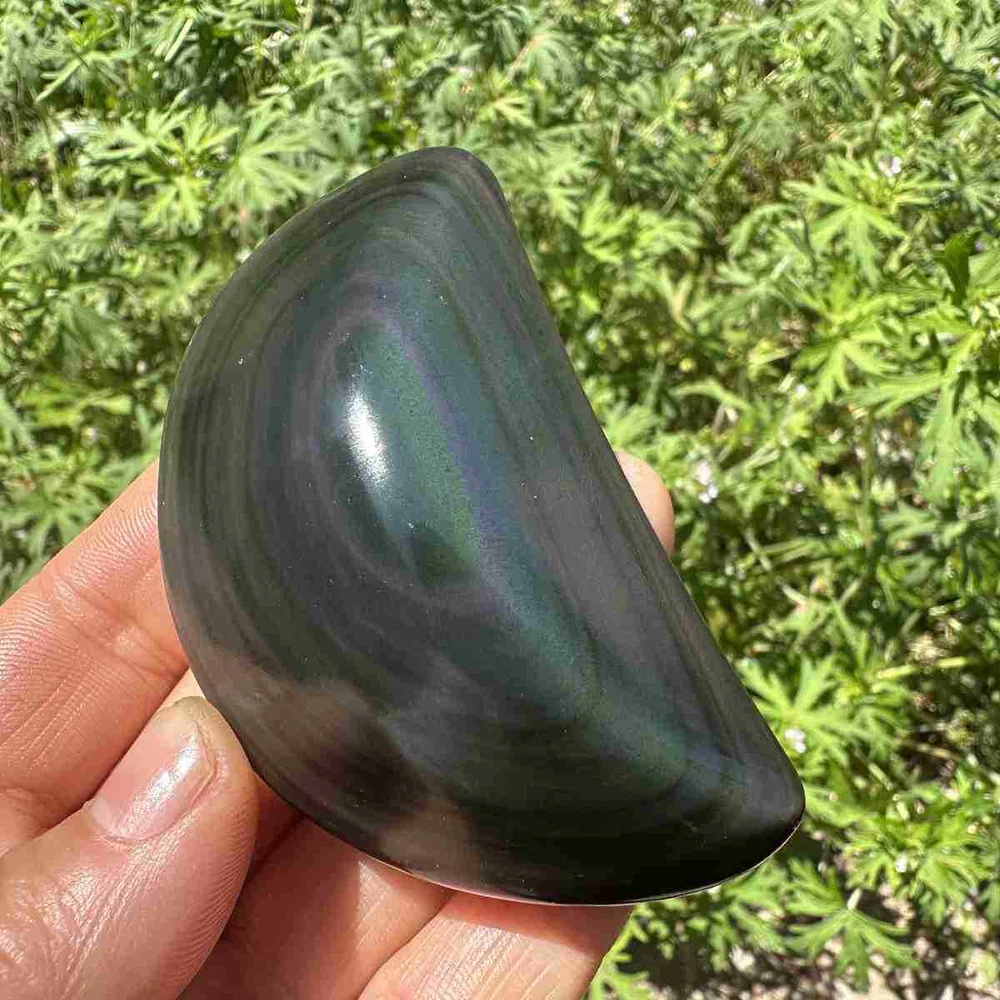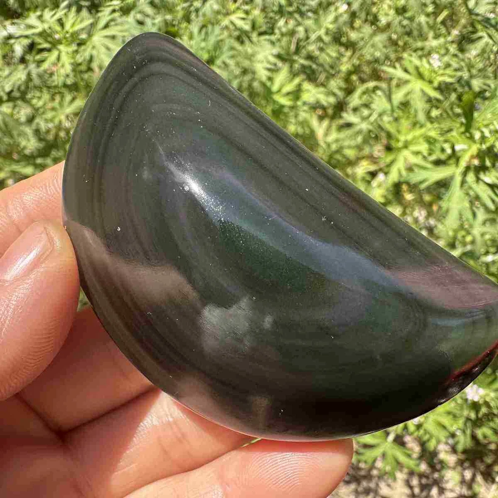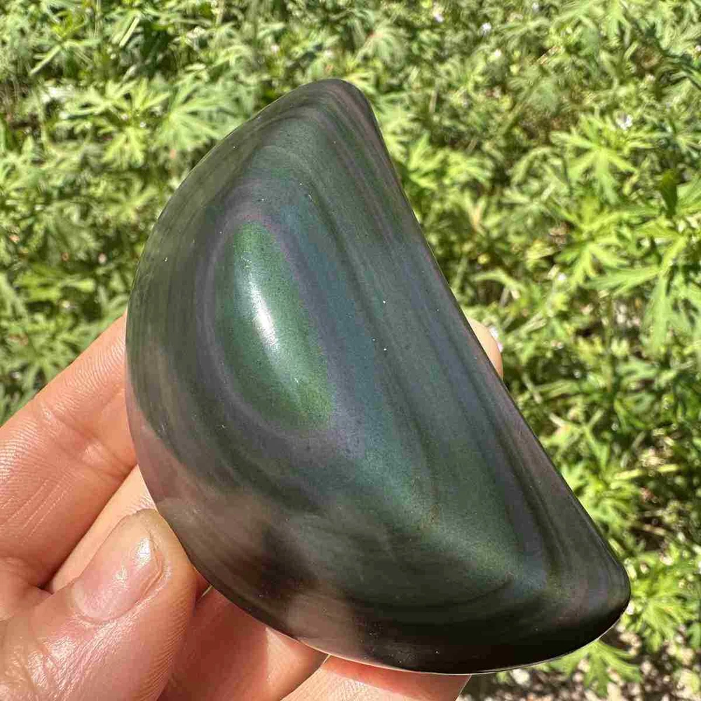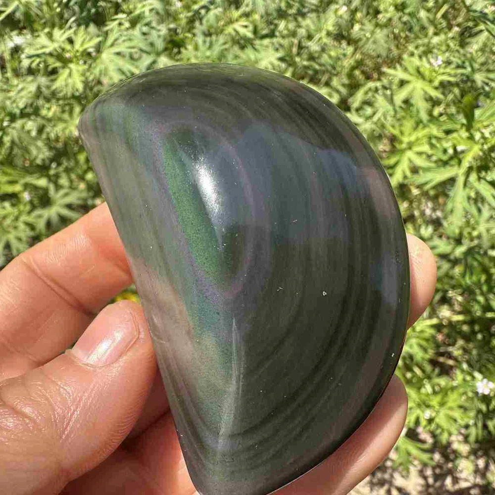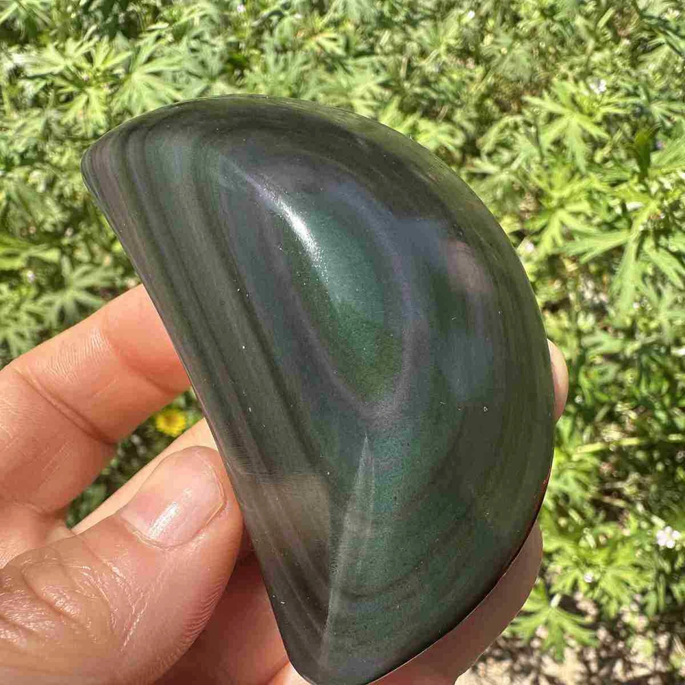 115g Natural Rainbow Cat's eye Obsidian palm Crystal Healing gift decor