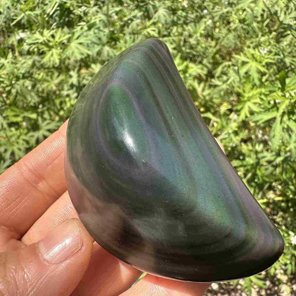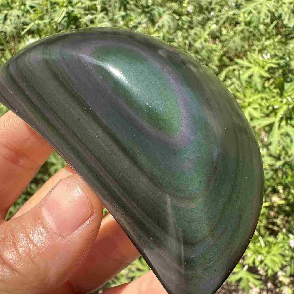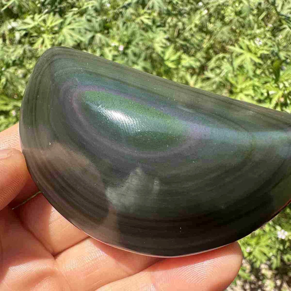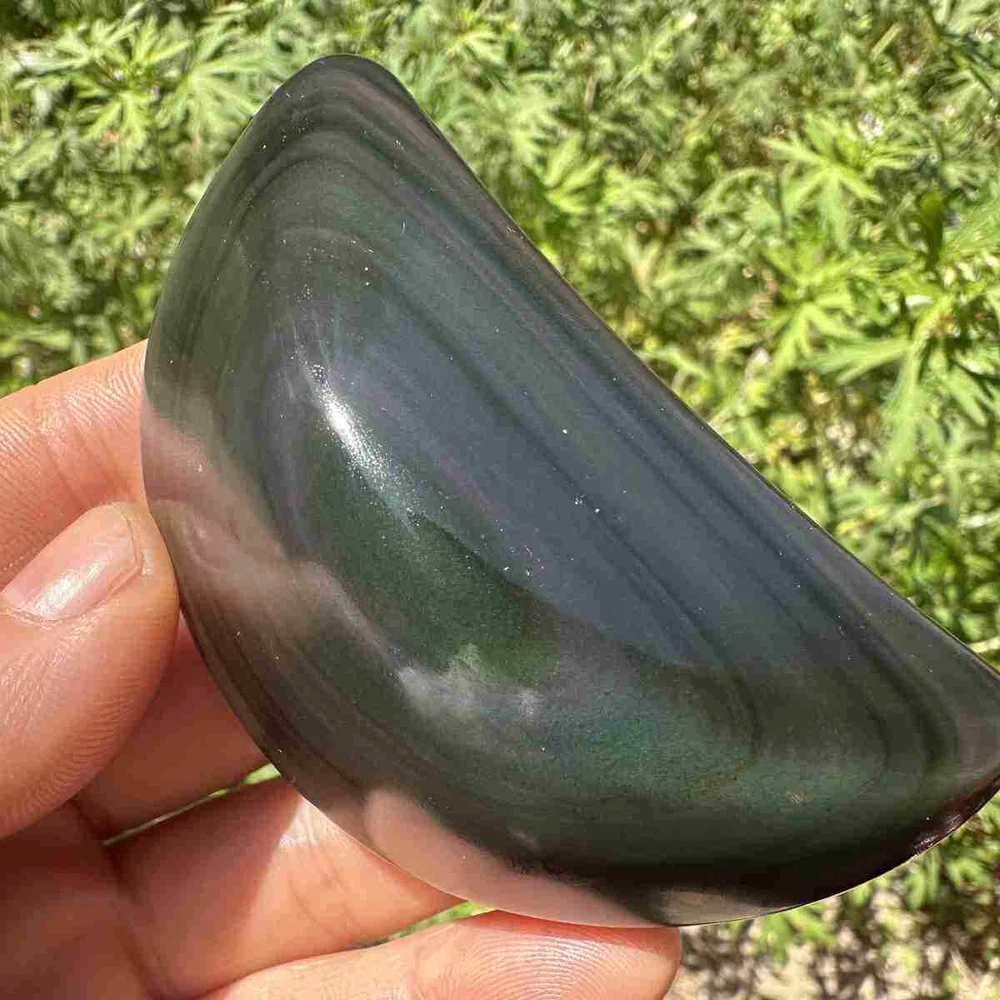 115g Natural Rainbow Cat's eye Obsidian palm Crystal Healing gift decor
