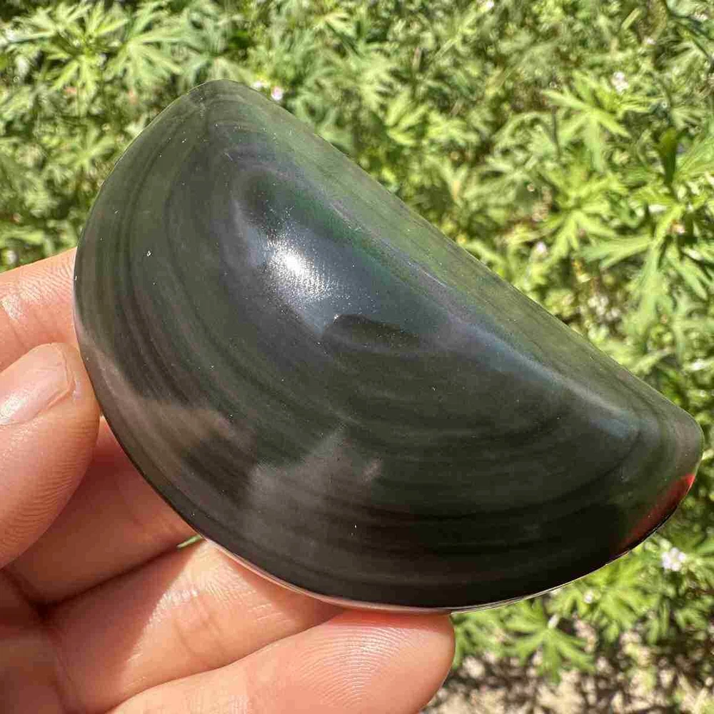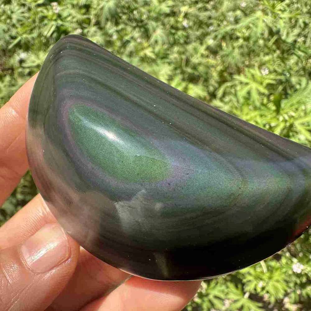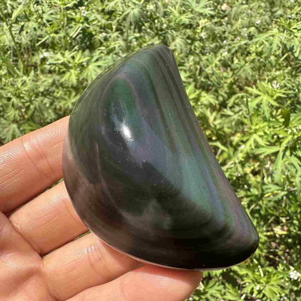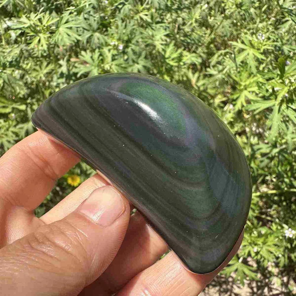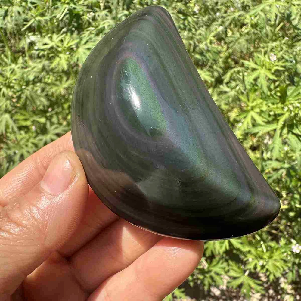 115g Natural Rainbow Cat's eye Obsidian palm Crystal Healing gift decor