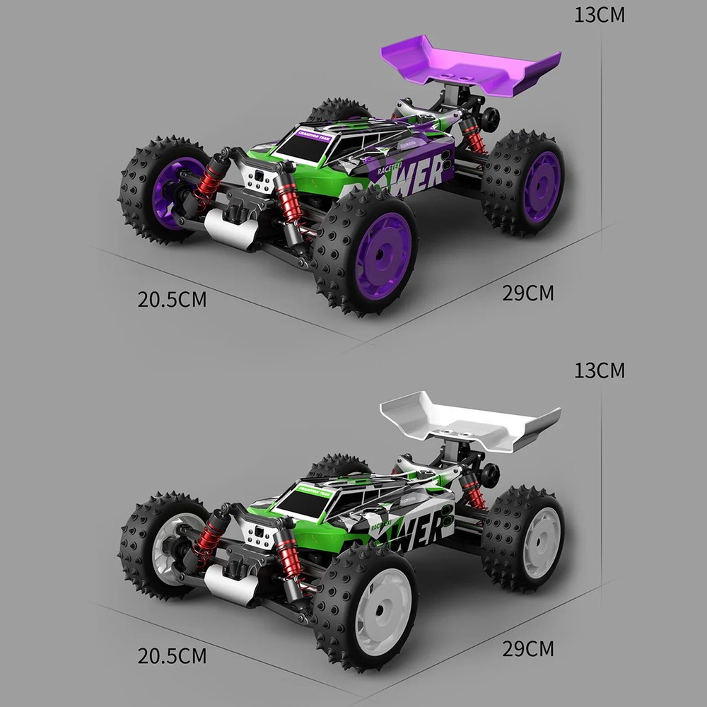 1:16 4WD RC Car Remote Control High Speed 70KM/H Brushless Monster Truck for Kid Description: Product name: Purple (with brushed) Driving speed: 40KM/h Product size: 29.5 * 20.5 * 12cm Color box size: 30 * 15 * 26.5cm Battery life: about 20 minutes Product battery: 7.4V 1100mAh Packing quantity: 6pcs Outer box size: 55 * 32 * 47cm Main functions: 1. Adopting simulation structure design, it has a real car handling feeling, achieving full proportional continuously variable transmission, high-speed driving, rapid acceleration, deceleration, braking, reverse, left turn, right turn; 2. Applicable sites: flat, sandy, muddy, grassland. 3. Four wheel drive: front and rear upright spring shock absorption, double wishbone independent suspension system; 4. 2.4G full proportion synchronous remote control system Full proportional throttle/steering; 5. Powder driving gear, powder main gear, metal front and rear code avoidance (butterfly frame), metal front bumper 6. Five line 17G digital servo; 7. 7.4V, 18650-1300mAh Li ion battery (T-plug), discharge rate 15C; Optional 7.4v 1100mAh soft pack lithium battery 8. New remote control panel function: rudder adjustment;; 9. Metal transmission shaft; 10. The car shell adopts high toughness explosion-proof PVC car shell 11. Equipped with head up wheels; Off road sharp tires with strong grip; Product Name: Green (with Brushless) Driving speed: 70KM/h Product size: 29.5 * 20.5 * 12cm Color box size: 30 * 15 * 26.5cm Battery life: about 20 minutes Product battery: 7.4V 5100mah Packing quantity: 6pcs Outer box size: 55 * 32 * 47cm Main functions: 1. Adopting simulation structure design, it has a real car handling feeling, achieving full proportional continuously variable transmission, high-speed driving, rapid acceleration, deceleration, braking, reverse, left turn, right turn; 2. Applicable sites: flat, sandy, muddy, grassland. 3. Four wheel drive: front and rear upright spring shock absorption, double wishbone independent suspension system; 4. 2.4G full proportion synchronous remote control system Full proportional throttle/steering; 5. Powder planetary gear, powder driving gear, powder main gear; Metal front and rear code avoidance (butterfly frame), metal front bumper 6. Three wire 17G digital servo, 2847 brushless motor; 7. 7.4V, 18650-1500mAh Li ion battery (T-plug), discharge rate 15C; 8. New remote control panel function: rudder adjustment;; 9. Metal front and rear differential, metal transmission dog bone, metal middle transmission shaft; 10. The car shell is made of high toughness and explosion-proof PVC. Please Note: Communication is the best way to solve the problem.Your satisfaction is our top priority. We appreciate your positive feedback! We have always been committed to providing the best service and reliable products to every customer. However, accidents may occur at times, and we understand your concerns and setbacks. Please contact us to resolve the issue before leaving negative feedback. We will reply to you as soon as possible. If there is no response within 24 hours, please check the email in your email. Our goal is to provide first-class customer service, so we usually do our best to solve any problems! (Note: Weekend Information Will Be Replied on the Next Working Day)