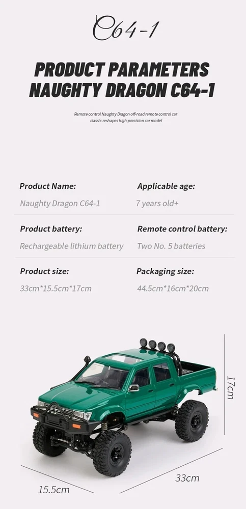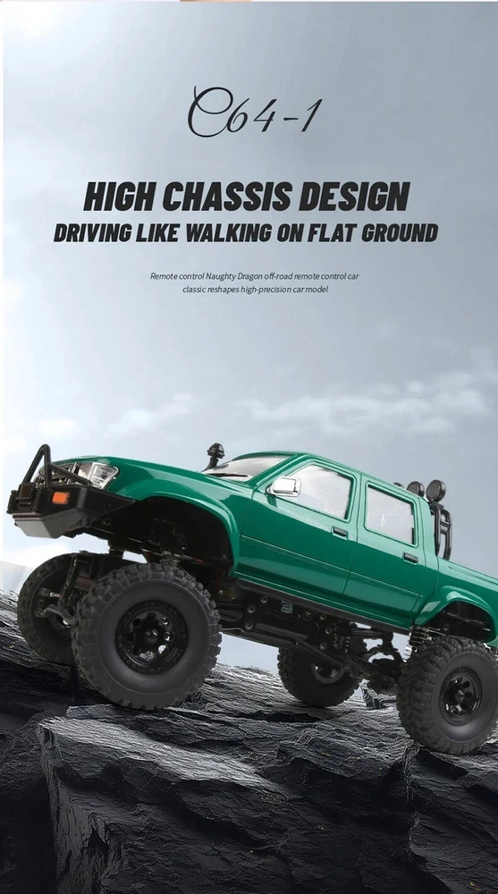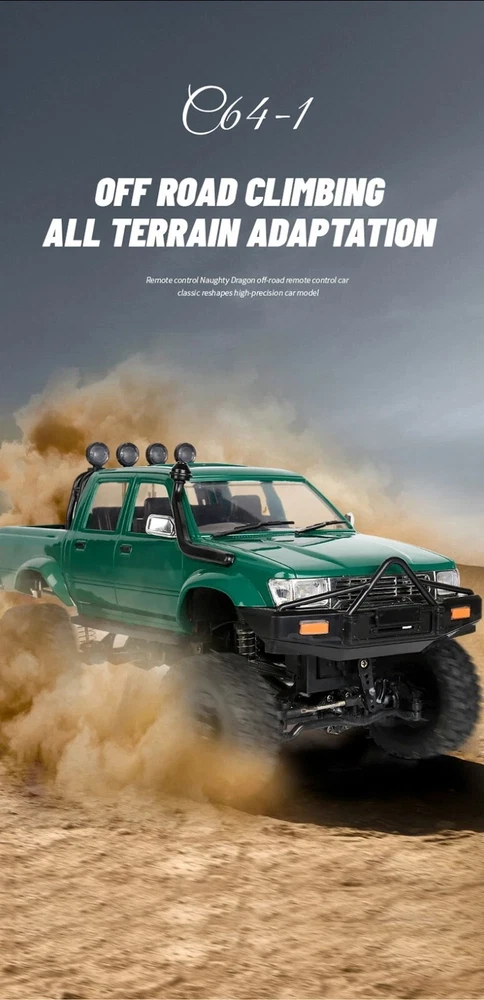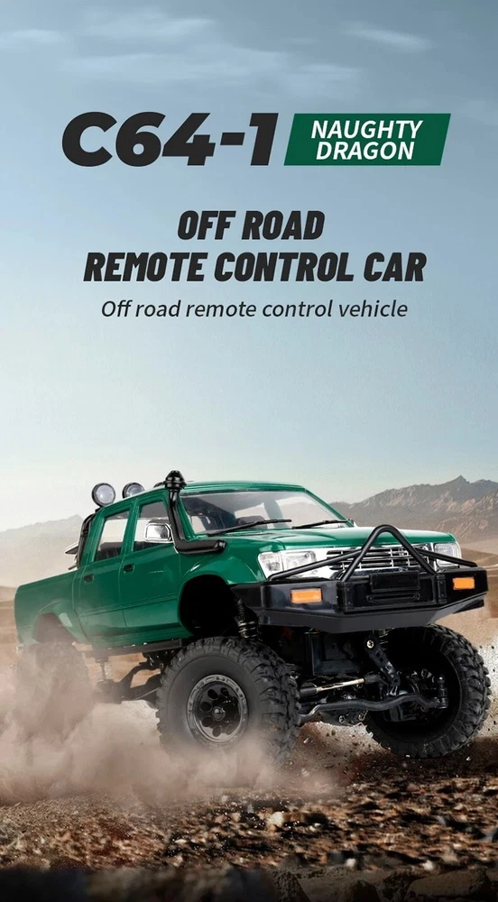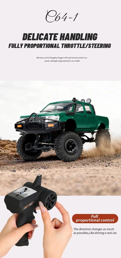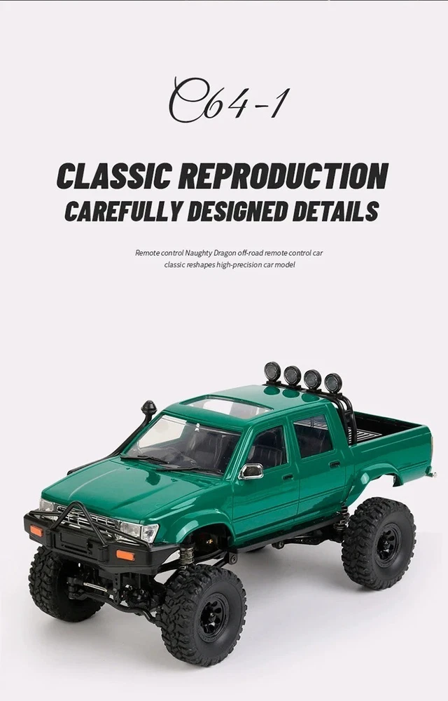1/16 HILUX Model Off-road Rc Vehicle 4WD Electric WPL C64-1 Description Product configuration: Remote control car * 1, remote control * 1, lithium battery * 1, USB charger * 1, instruction manual * 1, sticker * 1, screwdriver * 1 The product features full proportional synchronous control functions such as forward, backward, left and right turning, braking, etc.