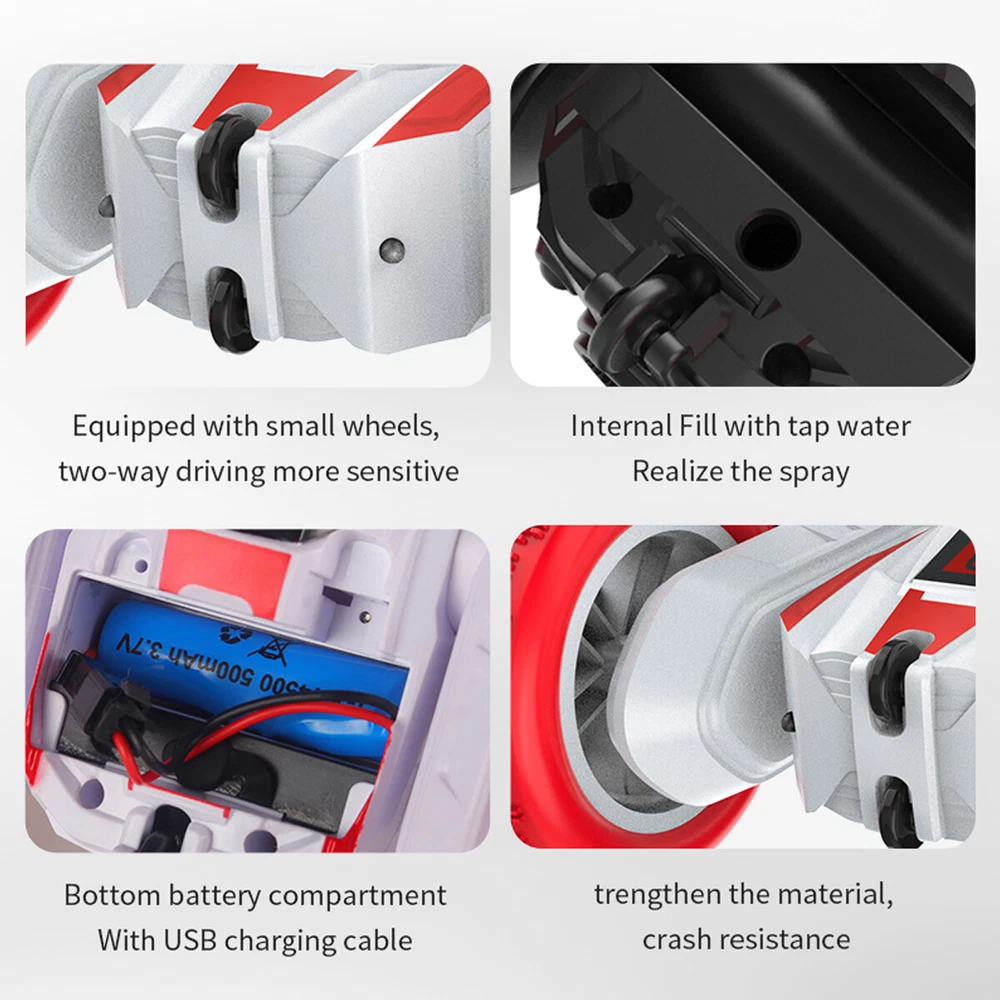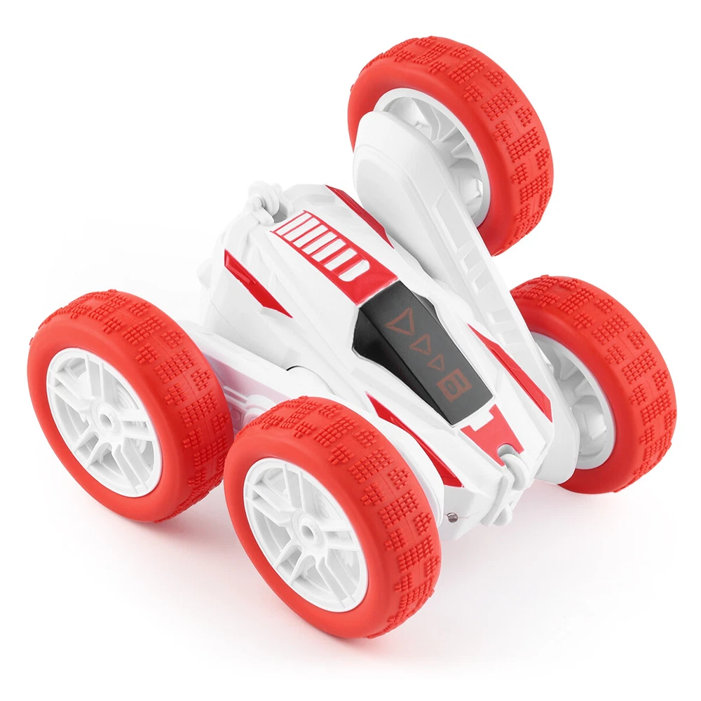 Type: Stunt RC Car Capacity: 500mAh Scale: 1:16 4WD/2WD: 4WD Brand: Unbranded gtin13: Does not apply UPC: Does not apply Color: White & Red Remote control battery: 3 "AAA" batteries (not included) Fuel Type: Electric MPN: Does Not Apply Model Grade: Toy Grade Characteristics: 2.4G remote control, 360°rotation, Double Sided Driving, Gorgeous Lights, Long battery life, Simulation Spray Material: plastic and Electronic components Model: Stunt Car