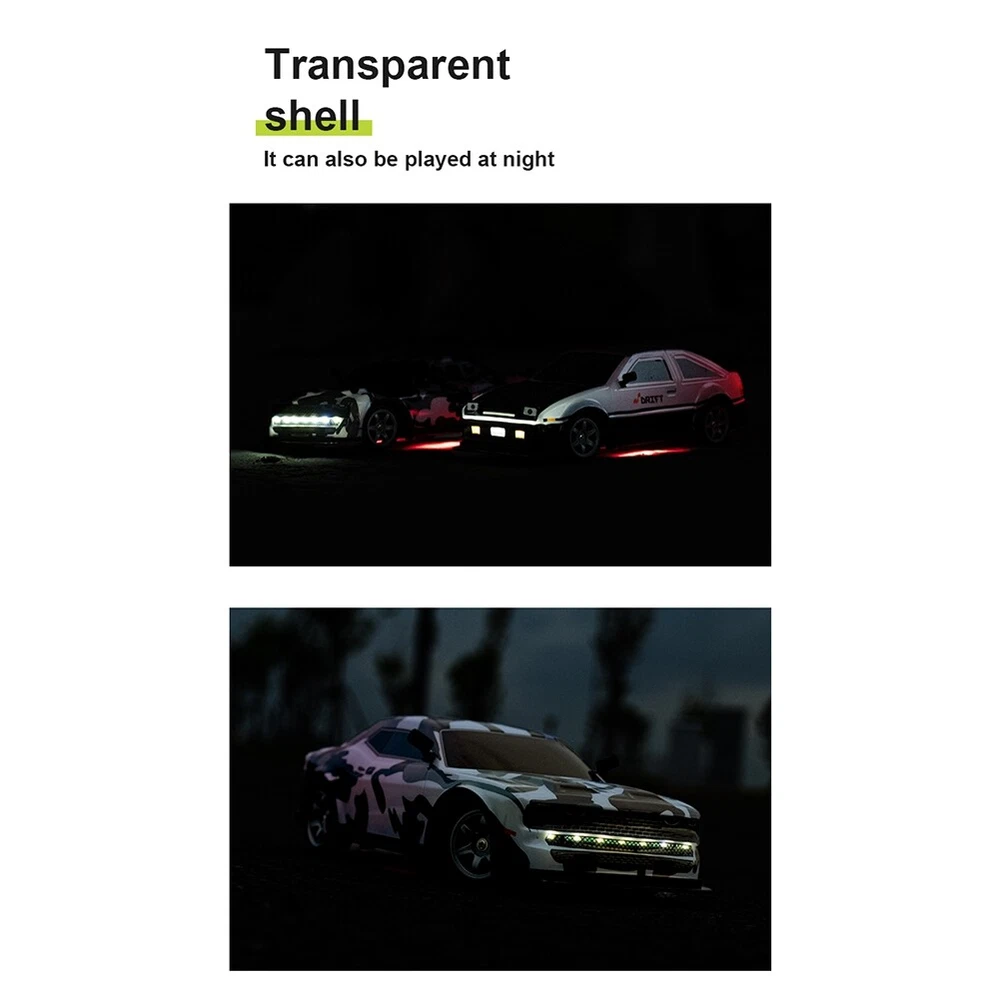 1:16 RC Drift Car, 25KM/H 2.4G 4WD High Speed RC Cars for Kids, with LED6790 [High Speed RC Drift Car] 1:16 scale, This large size gives you a better control feeling, the maximum speed reaches 25KM/H, with 2.4G remote control, you can play with multiple cars without interfering with each other. [4WD and Full-Scale Throttle] Has a four-wheel drive system that distributes power rationally during the form, with more torque for smoother drifting. At the same time, it has a stepless governor (full ratio throttle), which makes the acceleration more linear and real like driving. [Long Time Use and Safe] With 7.4V 500MAH batteries that can last a total of 40 minutes. And it is modular design, easy to install. The batteries are protected by a hard case, crash and . [LED Light and Two Kinds of Tires] Equipped with headlights, taillights and underbody lights, it looks better and can be played at night. Equipped with two kinds of car tires (one drift wheel and one normal wheel), you can choose according to different terrain. [Two Speed Adjustments] You can adjust the high speed and low speed gear by remote control. Colour:White Material:PVC+Metal Size:280x140x85mm Package Contents: 1 * Remote control car 1 * Batteries (one in the car) 1 * Remote control (2xAA batteries, Not included batteries) 1 * USB charging cable 4 * Extra tires 1 * Screwdriver 1 * Instructions in Chinese and English Only the above package content, other products are not included. Note: Light reflection and different displays may cause the color of the item in the picture a little different from the real thing. The measurement allowed error is +/- 1-3cm.