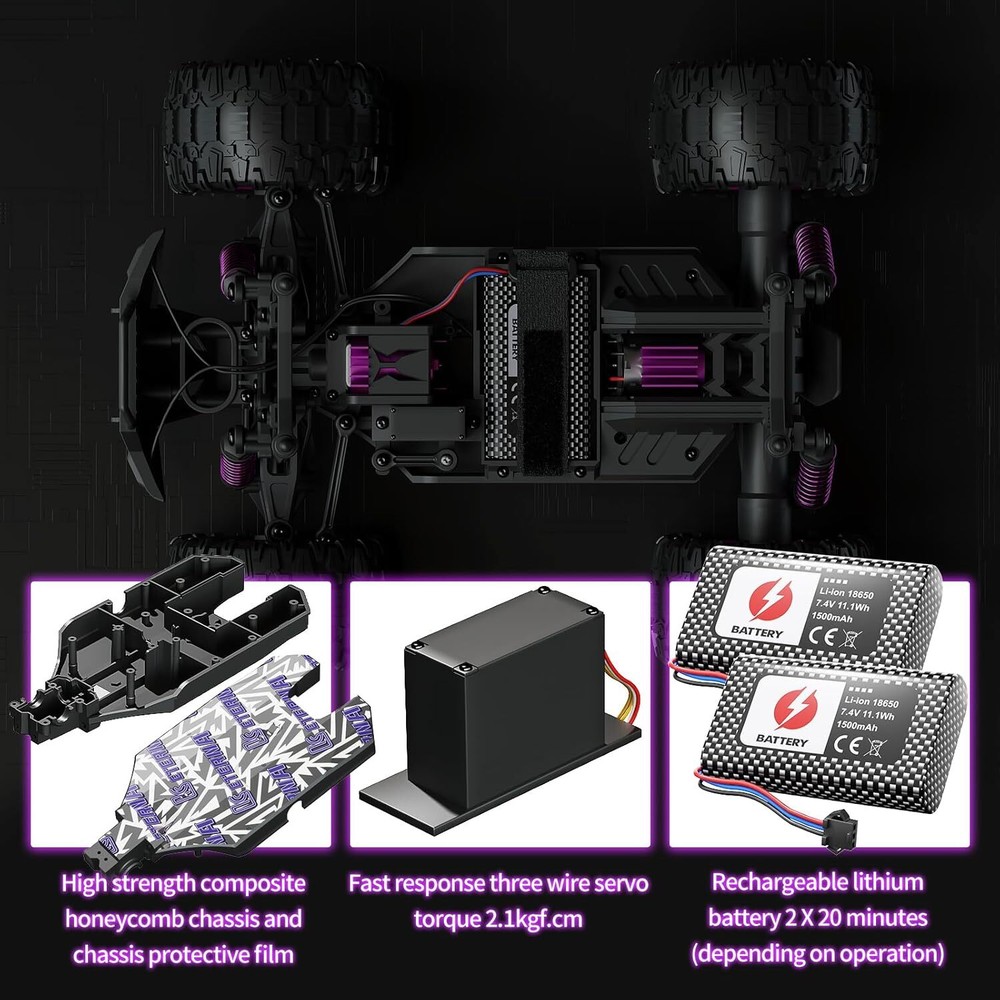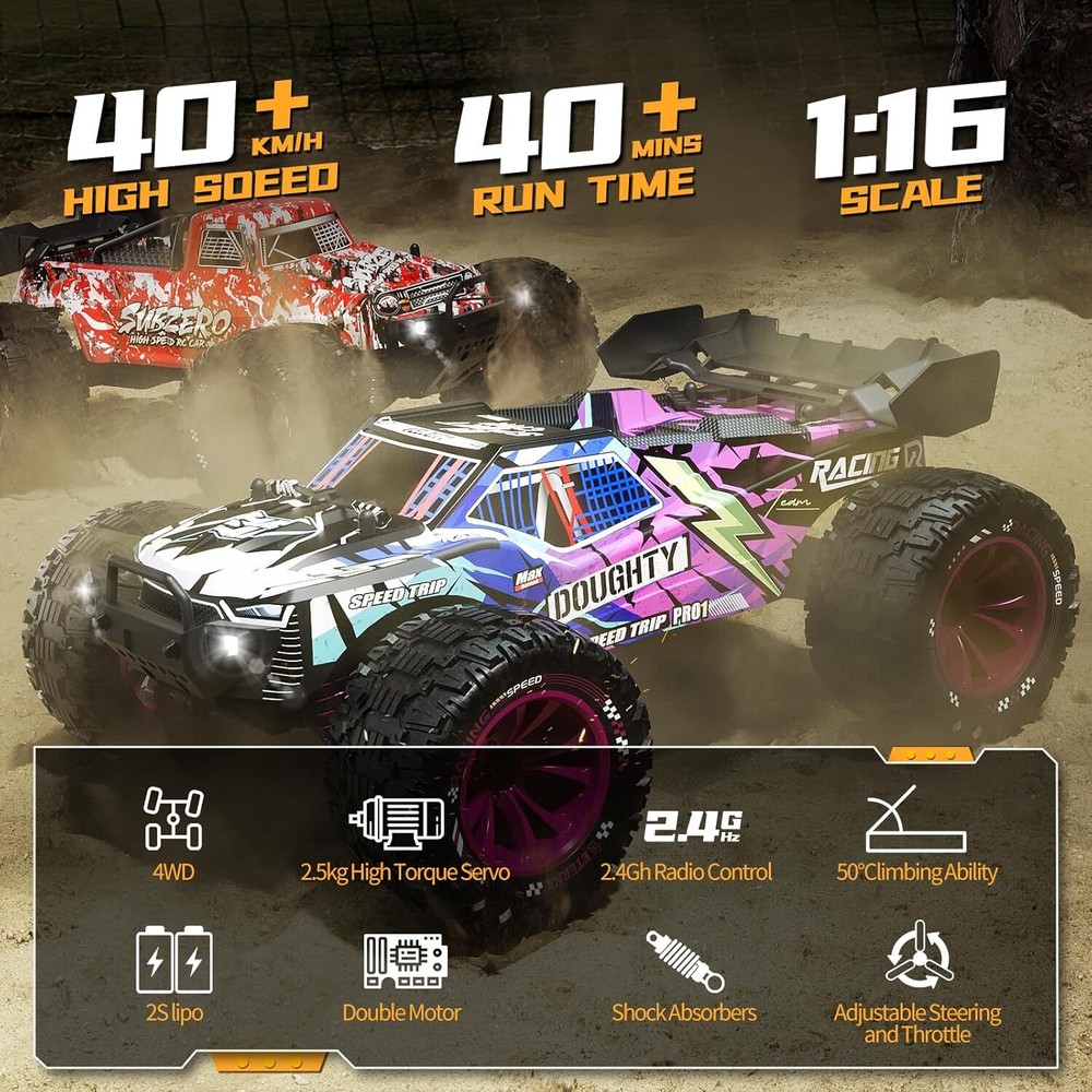 This RC car is an absolute blast! The 4WD and powerful dual motors make it fly at 40 km/h while handling dirt, grass, and rough terrain like a champ. The all-terrain tires grip well, even climbing steep slopes with ease. Two included batteries mean double the playtime, and the responsive 2.4GHz remote gives precise control. Great build quality, fast shipping—perfect for kids and adults who love high-speed off-roading!