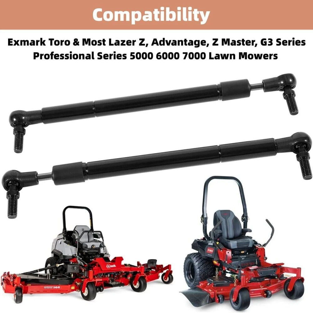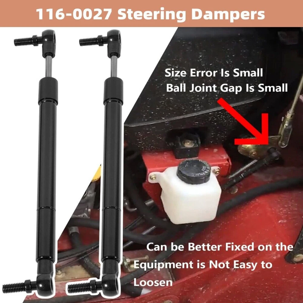 Feature 【 Fitment 】 For Exmark Toro Lawn Mowers, for Lazer Z, Advantage, Z Master, G3 Series, Professional Series 5000 6000 7000. Please check your mower model before purchasing. 【 Feature 】 This gas damper attaches to steering control levers. 9 and 1/2" Closed Length, 13" Extended Length, 2 Threaded Studs, 5/16" – 18 with resistance shock and dust shield upgrade designed specially. 【 Smooth Controls 】 The Steering Dampers eliminate hydraulic system negative feedback through the levers to reduce operator fatigue, reduce turf damage and extend hydraulic system life. 【 Material 】 Made of premium steel provides better performance and longer service life with tight ball joint. And when you're on the road, enjoy endless rides with total control for peak performance and fewer fatigue thanks to enhanced stability and steering feedback. 【 Warranty 】 Not satisfied with the product? Let us make it up to you! We promise full returns for items within 30 days of receipt of shipment, and free 365-day-warranty is guaranteed. Product Description 116-0027 steering damper is compatible with Exmark Toro & Most Lazer Z, Advantage, Z Master, G3 Series, Professional Series 5000 6000 7000 Lawn Mowers 。 Replaceable part numbers: 116-0027, 109-9820, 1160027, 1099820, 241-076, 142-8117. Kit Includes 2*116-0027 steering dampers.