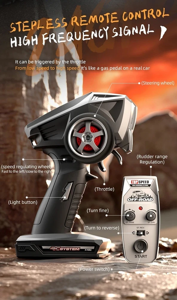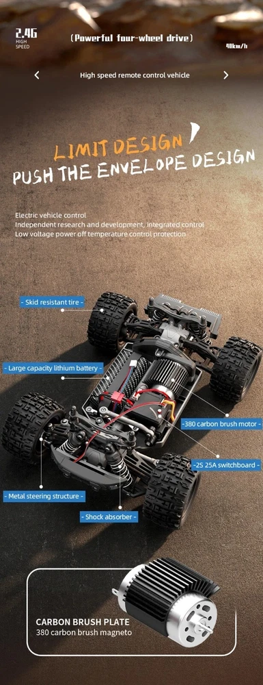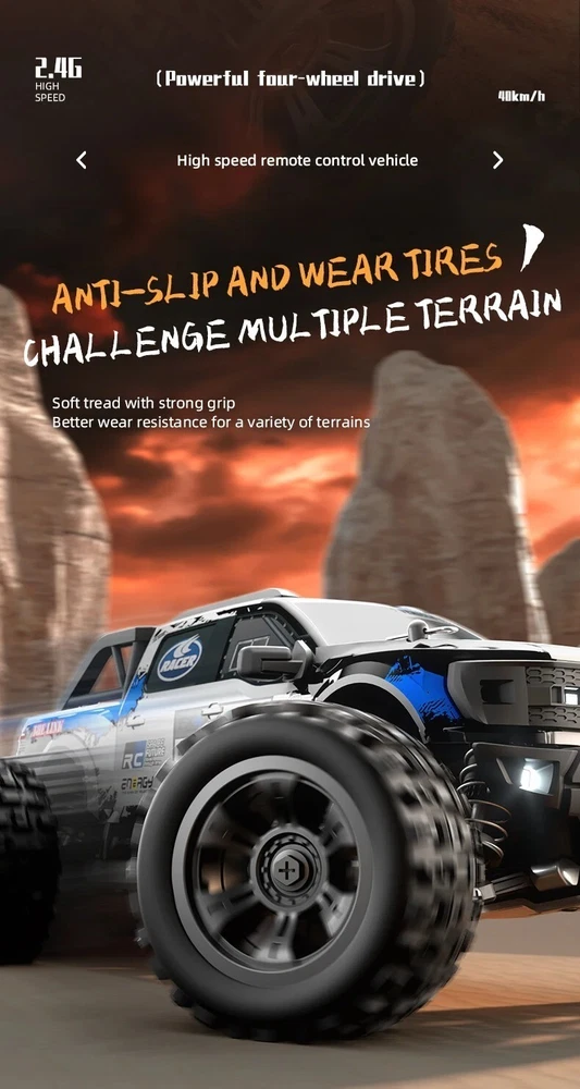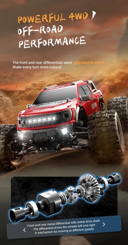 This 1:18 scale remote control vehicle is a high-speed monster truck that's ready to go right out of the box. With a brushed motor and electric fuel type, it can reach speeds up to 28km/h. It has a 4WD drivetrain and is designed for off-road use, making it perfect for hobby-grade enthusiasts. The truck features a multi-color design made of durable plastic, and is suitable for ages 8 and up. Whether you're a kid or an adult, this RC vehicle is sure to provide hours of entertainment. 1/18 2.4G Remote Control Vehicle 28km/h High Speed 4WD Off-road Electric Is Electric-lithium battery State of Assembly-Ready-to-Go Flight Time-about 35-40mins Tire Track-155mm Wheelbase-165mm Remote Distance-more than 80M Scale-1:18 Dimensions-25*19*11cm Model Number-18102 Package Includes Original Box,Batteries,Operating Instructions,Remote Controller,USB CABLE Material-Metal,Plastic Body Battery-7.4V 1500mAh lipo- Charging time-about 180-210 mins Remote Control Battery-3*AA (Not Included) Motor-RC380 high speed carbon brush strong magnet (magnetic protection ) 25A 2S integrated control (splash-proof)