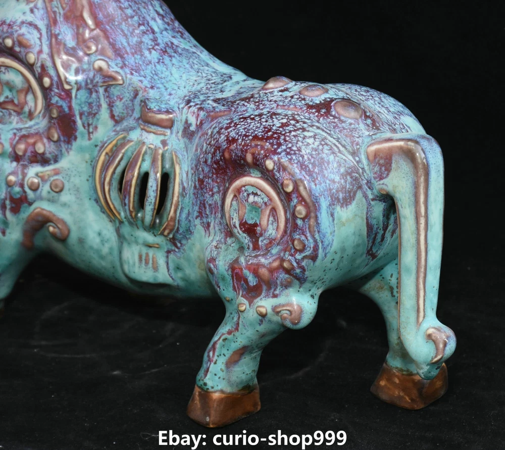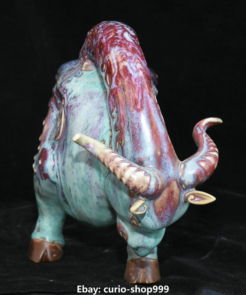 **** Welcome to our antique & Collectable Shop : Porcelain**** Description: Here is 11.8" Song Dynasty Jun Kiln Porcelain Fengshui Zodiac Cattle Bull Animal Statue.It is in good condition, and was created by skilled craftsmen in traditional style with fine handcrafts.This is a great piece of valuable collection, a valuable personal alter or a very good present. the handwork is very fine with incredible detailling. Don't miss out this chance to get it.Wish you good luck! Material : Jun Kiln Porcelain Size : Heigh t 7.1 Long 11.8 breadth 3.5 (Inch) Condition Perfect Condition. Perfect, with no scratc hes, flaws or repairs. Weight:1.7 KG----included the weight of packing materials Shipping cost to all over the world countries in Free Honored Customers: We are selling the collectibles products and crafts in Beijing ,China since 1993 and collected them all over the world all the time . In our shop the bronze sculpture, animal, vase, urn, flowerpot,Incense Burner.Table chair sets. Militaria goods. buddha statues, Bodhisattva Statues, Buddhist Ritual Items etc is our speciality .Many of the items we sell come from our own personal collection and have been in our family for a very long time .My great-grandfather was the first in this family to start collecting art & antiques when he still lived in San Xi and Tibet around 1922 ,some of the paintings he once collected can now be seen in museums around the globe.We won't make money from t he shipping cost, if you dislike the item when you receive it,we can refund all of your money to you within thirty days. Please confidence for bidding . We recommend the combine shipping and offer you an big price discount if you order more items together ! 2023.9.05 四 号