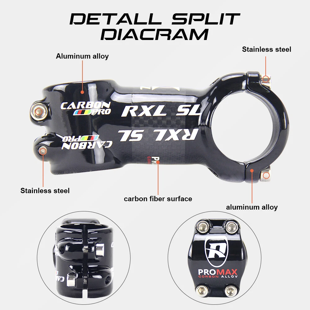 You may also like Carbon+Soft Leather Gel Racing Bike Saddle MTB Front Seat Mat 280*145mm RXL SL 34.99 USD Free shipping MTB Carbon Seat Post 25.4/27.2/30.8/31.6 Offset 25mm Road Bike Seatpost RXL SL 27.99 USD Free shipping 1-1/8" Racing Bike Carbon Integrated Handlebar Inner Drop Bar For Bicycle 63.99 USD Free shipping Carbon Mtb Stem 6/17 Degree Mountain Bike Stem 28.6-31.8mm Road Bicycle Stems 26.99 USD Free shipping Carbon Fiber Pickleball Racket 16mm Thickness Lightweight Pickleball Paddles Set 56.99 USD Free shipping 1-1/8" Integrated Carbon Road Bicycle Handlebar 3K Matte Drop Racing Handle Bar 55.99 USD Free shipping MTB Carbon Riser Handlebar 31.8*720/740/760mm Mountain Bike One-shaped Handlebar 23.99 USD Free shipping 31.8 Carbon Road Bicycle Rest TT Triathlon Handlebar 30°Racing Aero Bar 360mm 59.99 USD Free shipping RXL SL 1-1/8"Carbon MTB Integrated Handlebar Swallow Shape Design Riser Bar 35.99 USD Free shipping Carbon MTB Handlebar 31.8mm Mountain Bike Flat/Riser Bar 680/700/720/740mm 15.99 USD Free shipping 【Durable road bike stem】Material: Carbon Fiber + Aluminum Alloy; Appearance: 3K Glossy/3K Matte; Weight: Approx. 120~170g; The bicycle stem is made of aluminum alloy and carbon fiber. It has passed the long-term strength test and is durable and guaranteed for the long term; fork diameter: 28.6 mm (1-1/8"), handlebar diameter: 31.8 mm, angle: 6 degrees. 【Multiple sizes available】MTB stem length: 60/70/80/90/100/110/120mm, according to your own body shape characteristics, riding habits and matching to your own bike. Choose the right stem size, reduce pain in hands and wrists .Reduce back strain. 【Advantages of different lengths】bicycle stem of different lengths: stem length<90mm, easy to control and faster to control; stem length>90mm, better stability, more suitable for high-speed riding. 【Easy to Install】Connect the original bicycle fork, the four-screw rod clamp holds the rod firmly in position. Install the product correctly. Please follow the specified tightening torque (4Nm). Recommend using a hex wrench to tighten the screw. 【Installation Tips】When assembling, please confirm that the handlebar diameter is 31.8mm. The center width needs to be confirmed to properly lock the product and install it manually with a hex wrench; make sure the diameter of the front fork is that of the stem corresponds and that the size for; when installing, you can also apply carbon fiber mounting paste to the bike handlebar to ensure a tight fit.