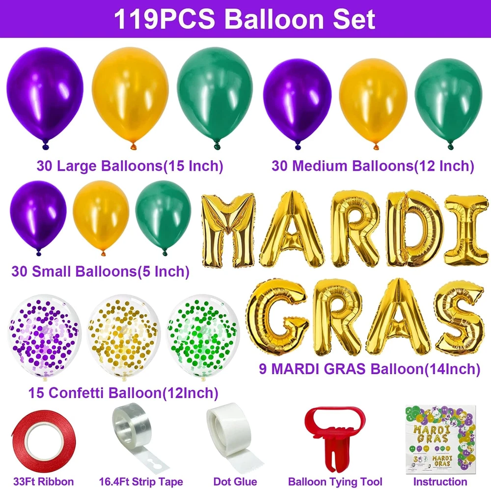 Store New Arrivals Add to Favorite View Feedback Contact 119 Pack Mardi Gras Balloons Arch Garland Kit, Mardi Gras Decorations DIY 15" 12" 5" Purple Green Golden Foil Confetti Balloons for Mardi Gras Party Decorations Supplies Home Indoor Outdoor Description CPSIA Cautionary Statement Choking Hazard - Balloon Unit Count 1 Count Color Yellow,green,purple Material Rubber Theme Mardi Gras Item Weight 11.3 ounces Shape Round Occasion Mardi Gras Included Components Balloon Arch Special Feature Confetti Package Dimensions 8.62 x 8.35 x 2.2 inches [ 119 Pack Mardi Gras Balloons Arch Garland Set ] Includes 30pcs 15" Balloons, 30pcs 12" Balloons, 30pcs 5" Balloons(yellow, purple and green; 10pcs for each color & size); 15pcs 12" confetti balloons; 9pcs 36" foil balloons("Mardi Gras" letters); a roll of 33Ft ribbon; 1pcs 16.4ft strip tape; 1pcs dot glue, 1pcs balloon tying tools and instruction. [ Mardi Gras Themed Designs ] This Mardi Gras balloon arch kit features with bright purple, yellow, green several classic colors, and "Mardi Gras" capital letter foil balloons. One pack meets all your Mardi Gras party decorations need! [ DIY Assembly ] Easy to assemble with the four tools, including ribbon, strip tape, dot glue and balloon tying tool). Easily follow the instructions included to DIY set a balloons arch kit, saving your time and energy. [ Foil And Latex Balloons ] These Mardi Gras Decorations Balloons are crafted by latex and foil material, which is durable, long lasting, and safe to use. [ Mardi Gras Party Decorations ] An addition to various occasions such as Mardi Gras party decorations, Mardi Gras Parade, celebration, Mardi Gras , vintage party, birthday, holiday party supplies, etc. Mardi Gras Balloons Arch Garland Kit for Mardi Gras Decorations and Vintage Party Supplies. Specifications: Large inflated balloon size: 15 inch. Medium inflated balloon size: 12 inch. Small inflated balloon size: 5 inch. Ribbon: 33 Ft. Strip tape: 16.4 Ft. Foil balloon: 36 inch. Material: Latex and foil. Color: green, purple and yellow. Applicable scenes: Mardi Gras decorations, carnival, Mardi Gras party, parade, celebration. Package Includes:(total 119 Pack) 30x 15" Balloons(10x yellow, 10x purple, 10x green) 30x 12" Balloons(10x yellow, 10x purple, 10x green) 30x 5" Balloons(10x yellow, 10x purple, 10x green) 15x 12" confetti balloons 9x foil balloons(letters of Mardi Gras) 1x ribbon 1x strip tape 1x dot glue 1x balloon tying tool 1x Instruction ABOUT US We offer the best prices around on high quality products. Our E-store includes media such as books, movies, music and games while offering electronics, toys, sporting apparel, clothing, tools, general home, garden items and more. SHIPPING We are always working hard to ensure your package arrives as soon as possible. Please understand that some factors like weather, high postal traffic, and the performance of shipping companies are outside of our control. We offer free shipping to the lower 48 states and ship within 2 business days of payment, usually sooner. We do not accept P.O. Boxes. Please provide a physical address. For shipping outside of the continental USA, we only use eBay's Global Shipping Program.The item is shipped to KY and then sent to the rest of the world. International customers are responsible for all duties and taxes. Continue to check out in order to calculate costs for shipping the item to your country. Messages regarding eBay's Global Shipping Program MUST be directed at eBay EXCLUSIVELY. RETURNS We offer a 30-Day Return Policy on items which you are not completely satisfied with. You have the option for a full-refund or an exchange of the item. No returns are available on items shipped outside of the USA. PAYMENT We accept PayPal. CONTACT US This page content is yet to come Please ad us to your favorite seller and visit again later Thank You CUSTOMER SATISFACTION We try our very best to make sure every customer is completely satisfied. If there's a problem, message us! We're happy to help. WE ACCEPT Copyright © 2021 AutoDS. | All Rights Reserved