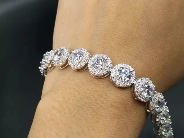 Setting Style: Prong Signed: No Collection: N/A Brand: Jewelryforyou-7 Seller Notes: “?***$$$Valentine-day Big Sale Offer *$$?” Main Stone Creation: Lab-Created Diamond Clarity Grade: Very, Very Slightly Included (VVS1) Handmade: Yes Theme: Beauty Colored Diamond Intensity: Fancy Metal: Sterling Silver Base Metal: Silver Antique: No Certification: N/A Color: White Cut Grade: Excellent Gemstone Clarity Grade: Eye Clean Material: Stone Personalize: Yes Country/Region of Manufacture: United States Total Carat Weight: 11.00 Carat (Approx.) Main Stone Treatment: Not Enhanced Occasion: Wedding Type: Bracelet Charm Type: Traditional Main Stone Shape: Round Country of Origin: United States Diamond Color Grade: D Closure: As per image Number of Gemstones: N/A Features: Engraved, Nickel-Free Item Length: 7 Inch Shape: Round Sizable: Yes Main Stone Color: White Metal Purity: 925 Main Stone: Diamond Chain Type: As per image Vintage: No Wholesale: Yes Style: Tennis Number of Diamonds: As per Image Secondary Stone: Diamond