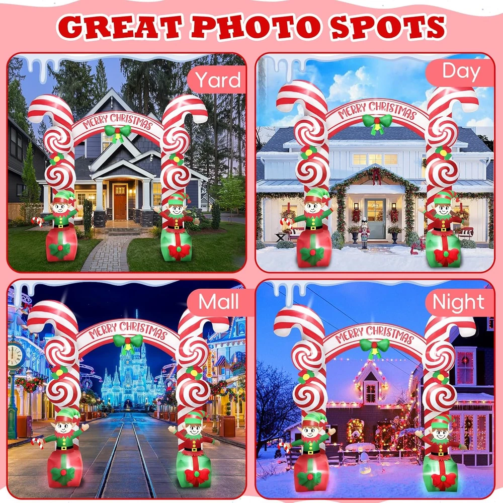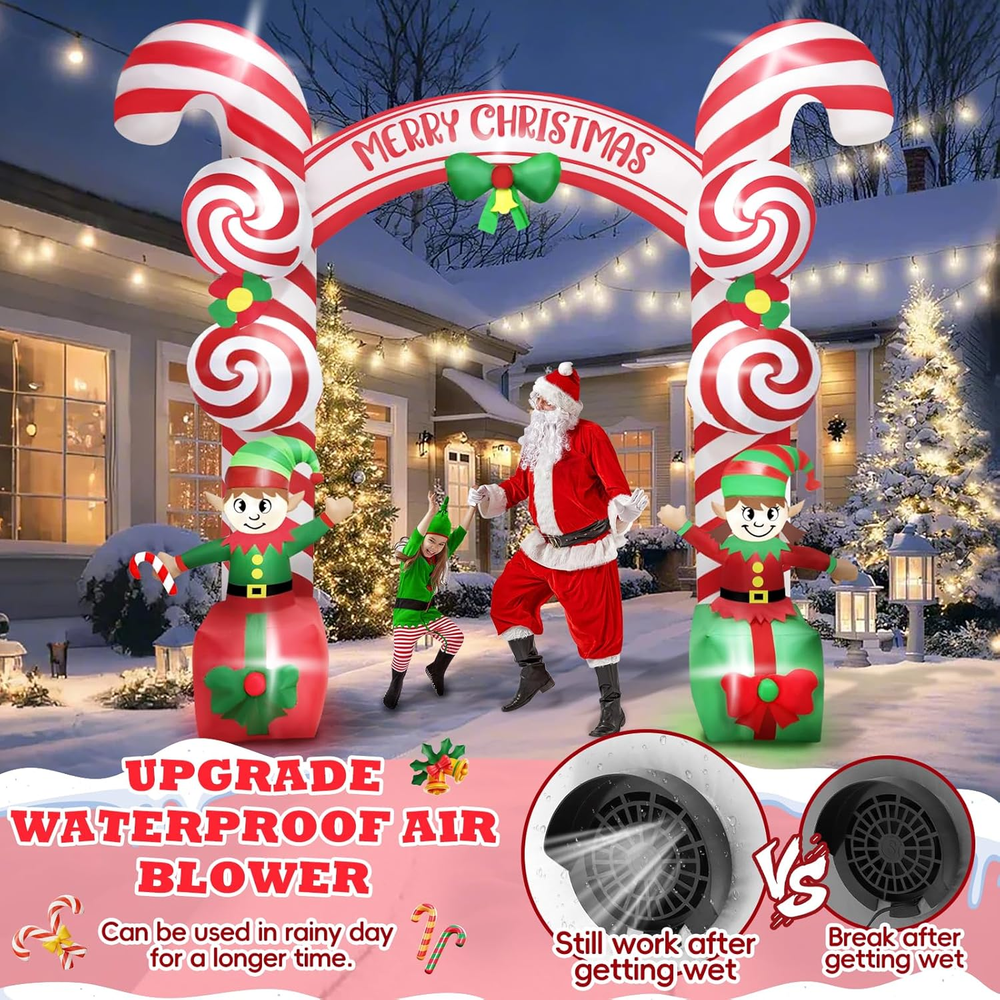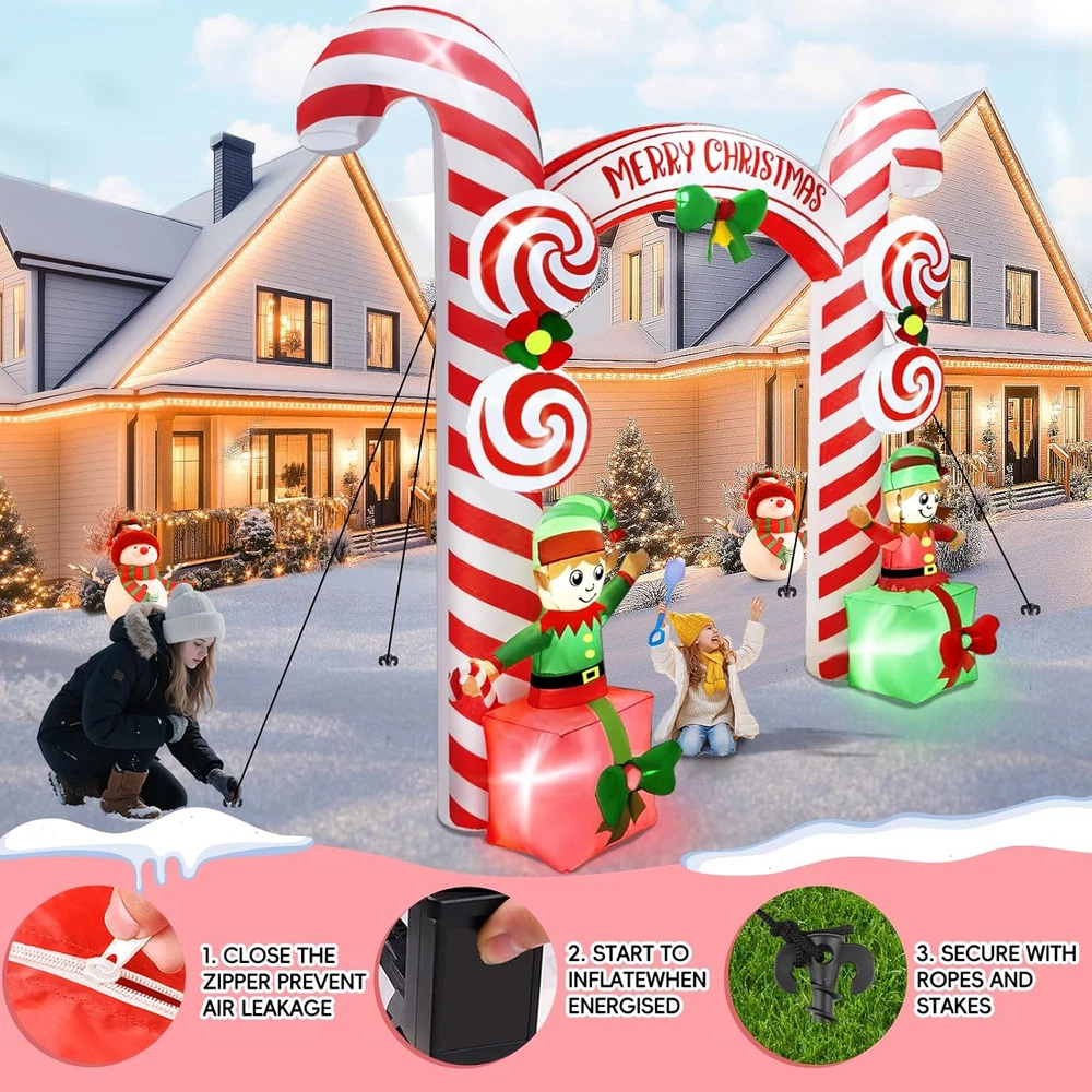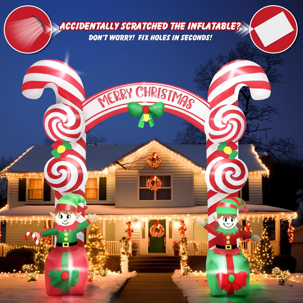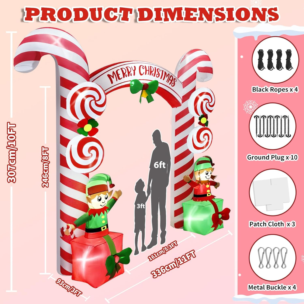🍭11FT Christmas Archway Inflatable: You will receive the Christmas Peppermint Santa Elf Archway inflatables with impressive design, much bigger than normal holiday inflatables, so it can add more Christmas atmosphere. Everything needed for installation such as ground stakes, metal buckles, patch cloth and blower are included. Installation instructions are included, please read carefully before installation. ⛄Eye-Catching LED Light: The Christmas inflatable has built-in super bright LED lights. The colorful and innovative design create a very festive and lively atmosphere, making your home and this huge Christmas archway decoration become a beacon to create a joyful holiday atmosphere. It will be more attractive than all the decoration of your neighbors. 🍭 Upgrade Air Blower: The giant Christmas archway inflatable is made of 210T polyester fiber and updated air blower, ensuring that the Christmas yard inflatable decorations can be used even on rainy days. A built-in sandbag at the bottom enhances the stability of this huge decoration. But in order to better preserve it, we don't recommend using it outdoors when it's heavily windy and rainy. ⛄Quick Install:You only need to put the Christmas outdoor inflatables on a open space and zip up the bottom of the inflatable before inflating, and it will automatically inflate immediately after plugging into a standard electrical outlet. At the same time, it deflates very quickly and is easy to store. 🧝Bring The Christmas To Life: With bright red, green, and white colors, and Peppermint Candy Santa Elf design, classic Christmas elements will never go out of style. You will get countless compliments when people drive by your yard. People will stop to take pictures with the Christmas inflatable arch or take photos of your family and children in front of the Christmas Peppermint Candy Santa Elf arch. Feature: - Our inflatable Peppermint Candy Santa Elf Arch comes with 10 ground stakes and 4 ropes, which provide additional anchoring points to ensure the Inflatable Archway stays firmly in place even in adverse weather conditions. - Peppermint Candy Santa Elf Arch inflatable is suitable for a variety of occasions. It is ideal for garden, yard, walkway, patio, lawn, or indoor/outdoor use. Specification: Fabric: Polyester Size: 11FT Power: Plug in Package Includes: 1 x Christmas Inflatables Peppermint Candy Santa Elf Archway 1 x Patch Cloth 4 x Metal Buckles 4 x Black Ropes 8 x Ground Stakes Note: 1.Please allow 0-1cm error due to manual measurement. please make sure you do not mind before you bid. 2.Due to the difference between different monitors, the picture may not reflect the actual color of the item. 3.Kindly refer to the pictures and page descriptions for the number of accessories. The number of accessories in the manual is for reference only.