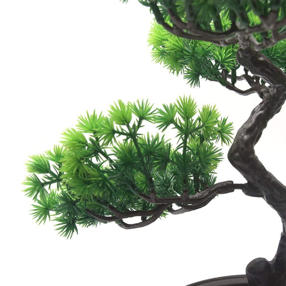Dimensions Suitable for Desk: Bonsai overall Height 11 inches, width 11 inches, Fit on the bookshelf, office desk , terrace, windowsill, living room, hall, vestibule etc. The material is plastic, the flowers are free of burrs, lively.No need to take care of it, no need to maintain, save trouble and effort. BONSAI TREE: Enjoy the visual beauty of the art of Bonsai, without any of the hard work, with this artificial Pine Bonsai tree for decorative display. Suitable for sinks, work benches, desks, coffee tables and other places for decoration.Indoor green plant decoration. Package: 1 pc x artificial bonsai, Size(approx): 29 x 30cm