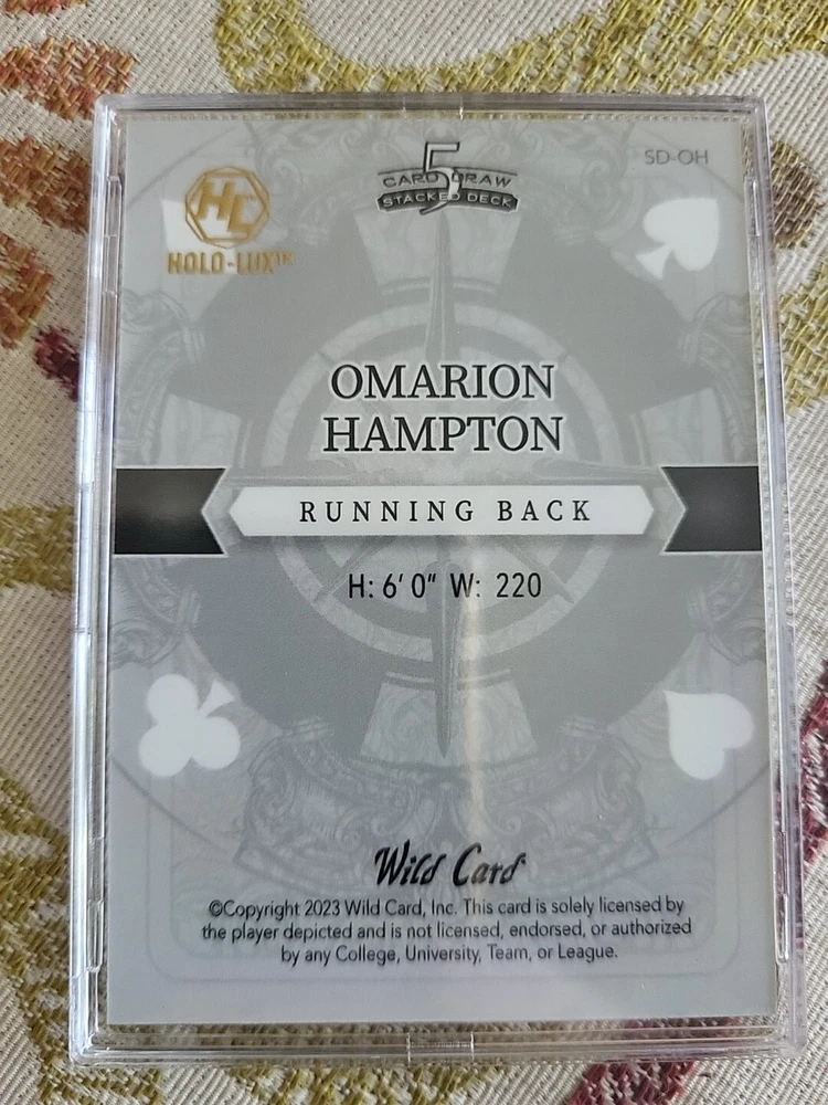 [1/1]Omarion Hampton - 2023 Wild Card, 5 Card Draw Stacked Deck Ace Of Spades πŸ”₯
