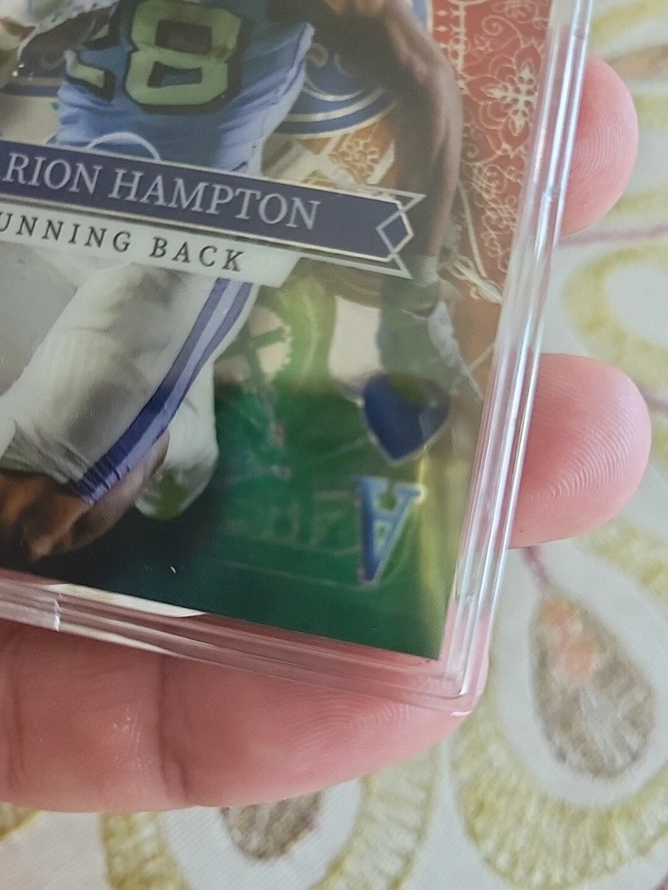 For the avid collector of sports trading cards, here is a rare opportunity to own a one-of-a-kind card featuring Omarion Hampton, a talented player from the North Carolina Tar Heels team. This card is from the 2023 Wild Card set and is a five-card draw stacked deck Ace of Spades, which adds to its uniqueness and value. The card is printed in purple lazer prizm and is serial numbered, making it a valuable addition to any collection. It is a pre-rookie card and features a hologram, making it an even more unique and desirable card. This Wild Card is manufactured by a well-known company and is perfect for fans of the National Collegiate Athletic Association (NCAA) and football in general.