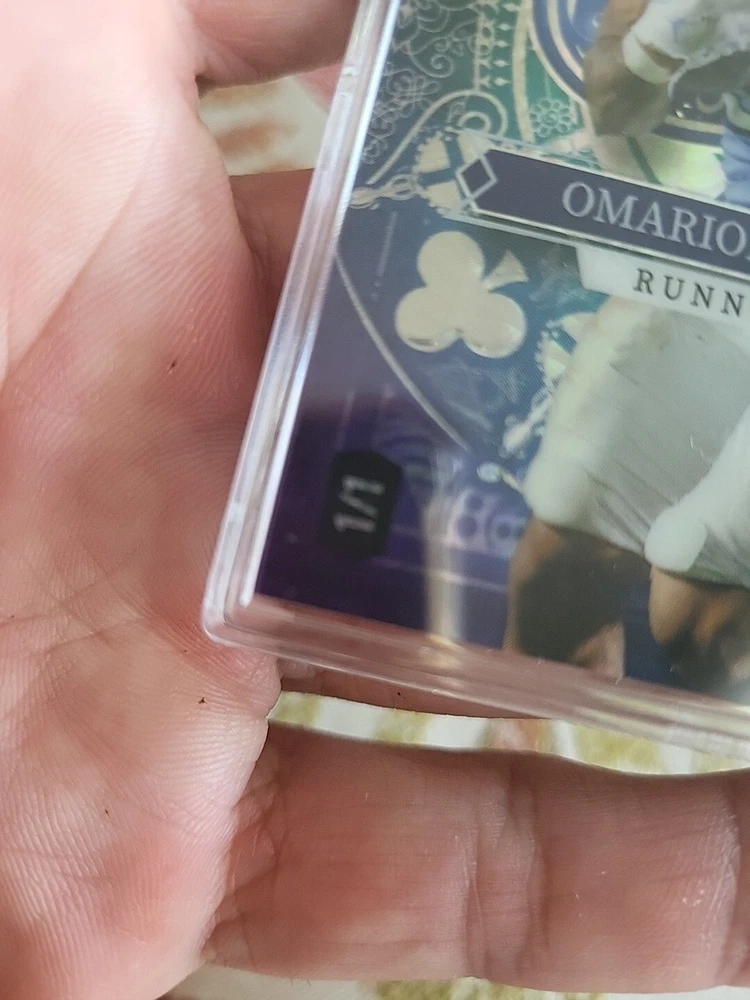 Type: Sports Trading Card League: National Collegiate Athletic Association (NCAA) Player/Athlete: Omarion Hampton Card Name: Ace Of Clubs Print Run: 1/1 Season: 2023 Card Number: 2023 Sport: Football Set: 2023 Wild Card Team: North Carolina Tar Heels Features: Hologram, One of One, Parallel/Variety, Serial Numbered, Pre Rookie Card Manufacturer: Wild Card Parallel/Variety: Purple Lazer Prizm